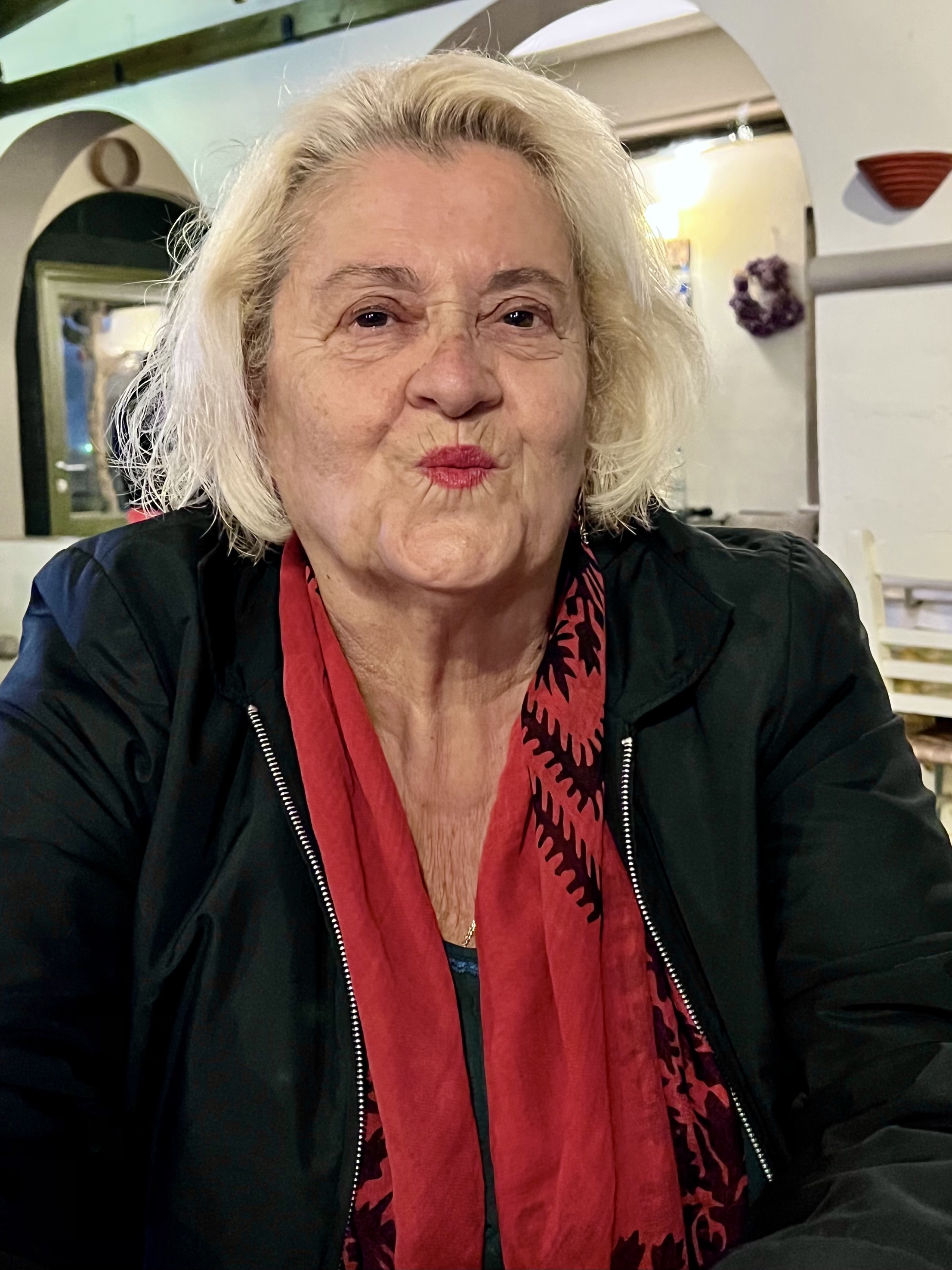 And this brings me back to Efi and her story and Wolfgang. This was our second night out together with Efi all dressed up and was the second time that I had heard her story, this time in more detail. She married her childhood sweetheart at 17, had the first of her two children, Olga, at 18, was together with her husband who, was not a hard worker, for 16 years. Then she left her husband. Against the wishes of her parents she took the children to Athens where entirely through her own effort she managed to own a kiosk where she sold magazines and candy and drinks and made a living for 21 years before coming back to Paros and inheriting her mother’s house and turning it into an Airbnb. The husband remarried, an English woman who also left him, had two children, and is around here somewhere. As I mentioned, I didn’t get the whole story and may have misunderstood, but through her flashing eyes and the intense way she told it, I could feel both her pain and her satisfaction at succeeding to send her children to the university and to running her Airbnb here on Paros. She has put the pain behind her and is pleased with herself.