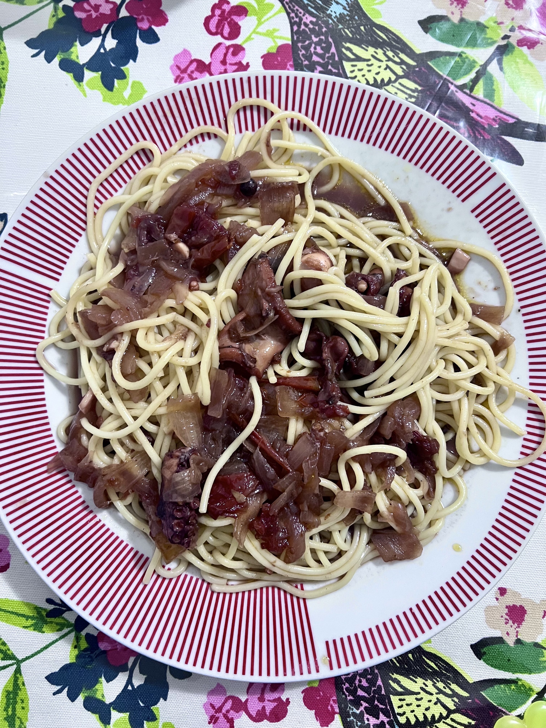 And then a third thing happened, Efi invited me to supper with Wolfgang. We had marvelous octopus spaghetti mixed with fried onions and balsamic sauce, a special treat, with Greek salad, boiled beets and lots of beer. And I went to bed at peace with myself and the world.