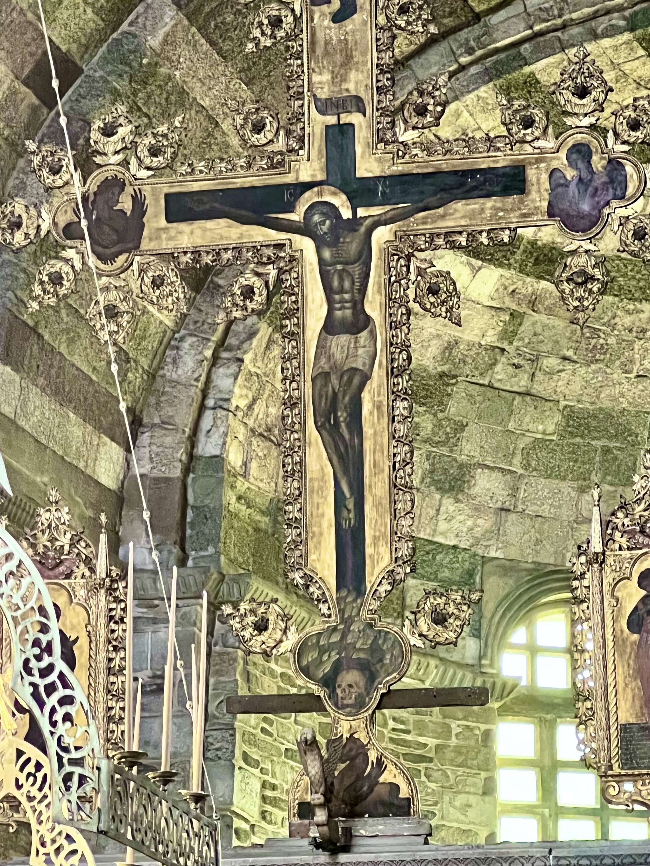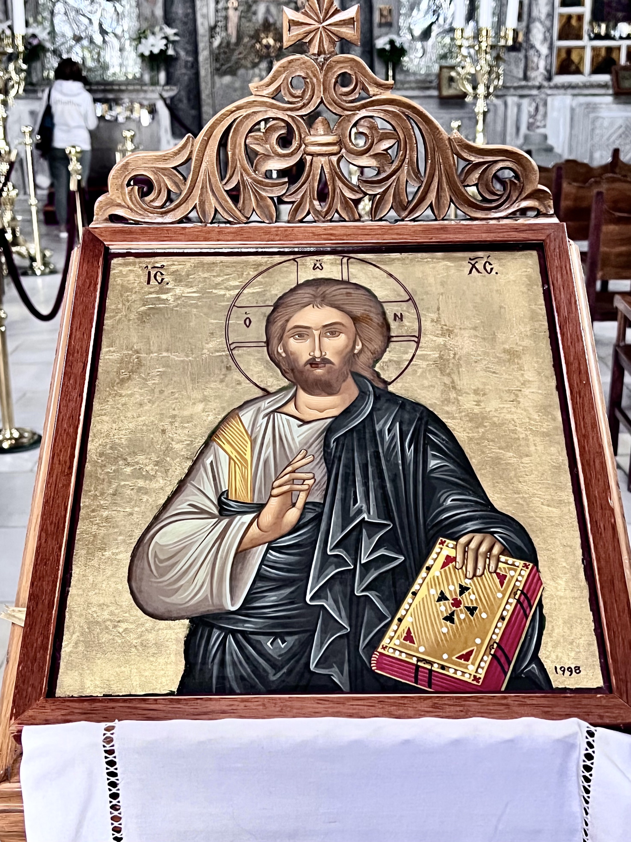 And the the church itself is beautiful with elaborate wood carving and brass work and painting after painting of saints and Bible stories.