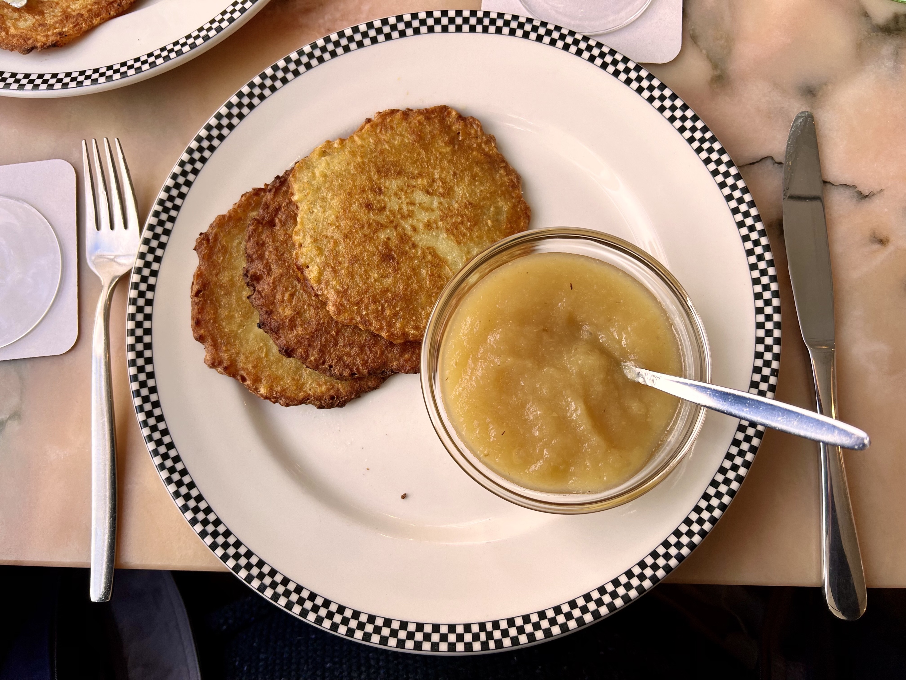 And Susie and I had potato pancakes with applesauce in Kaffee Kiess, an elegant coffee shop, where Kathe’s father would read the paper when he came to town years ago and where we brought Tom, Kathy, Caroline and Hannah on their first morning in Germany for an elegant breakfast. Not far away is the apartment built by a famous Bauhaus architect that Volker filled with beautiful objects.