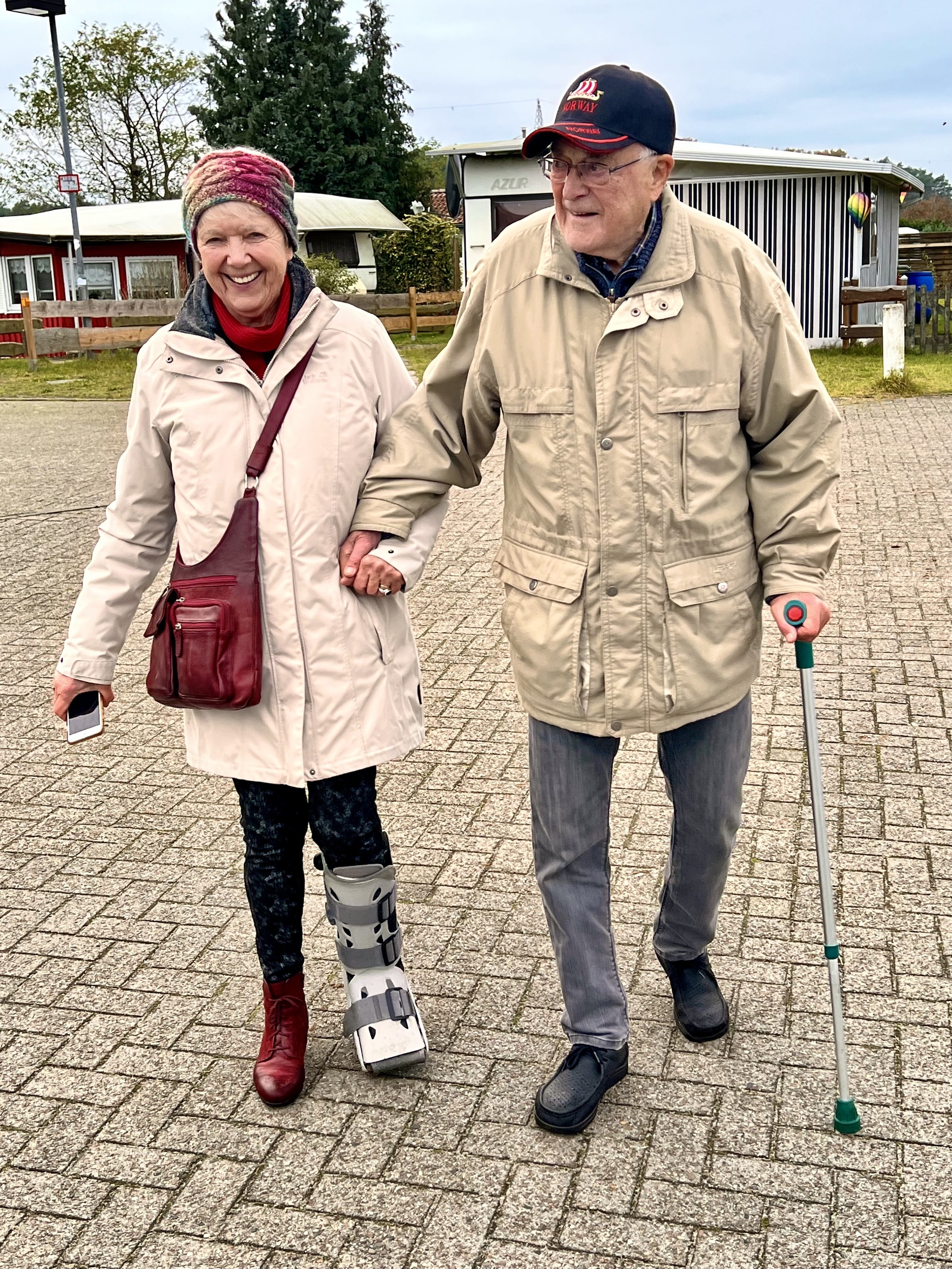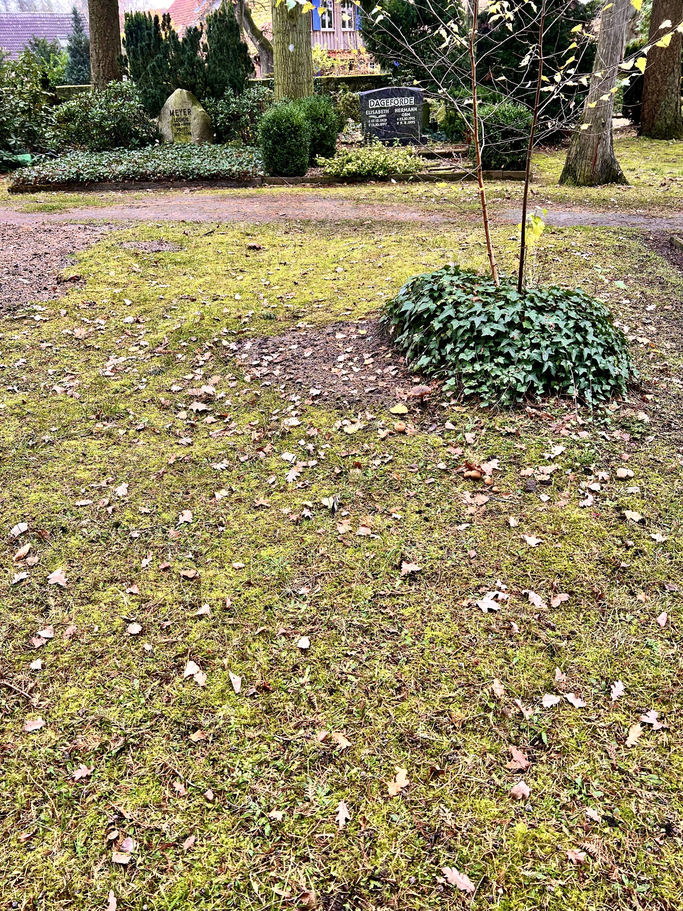 So on Thursday we went to the Winsen cemetery in a grove of trees and shrubs across from the church. Elke and Heinrich showed us the way, Elke with a boot on her foot because of a torn Achilles’ tendon, Heinrich with one crutch because of an arthritic knee.