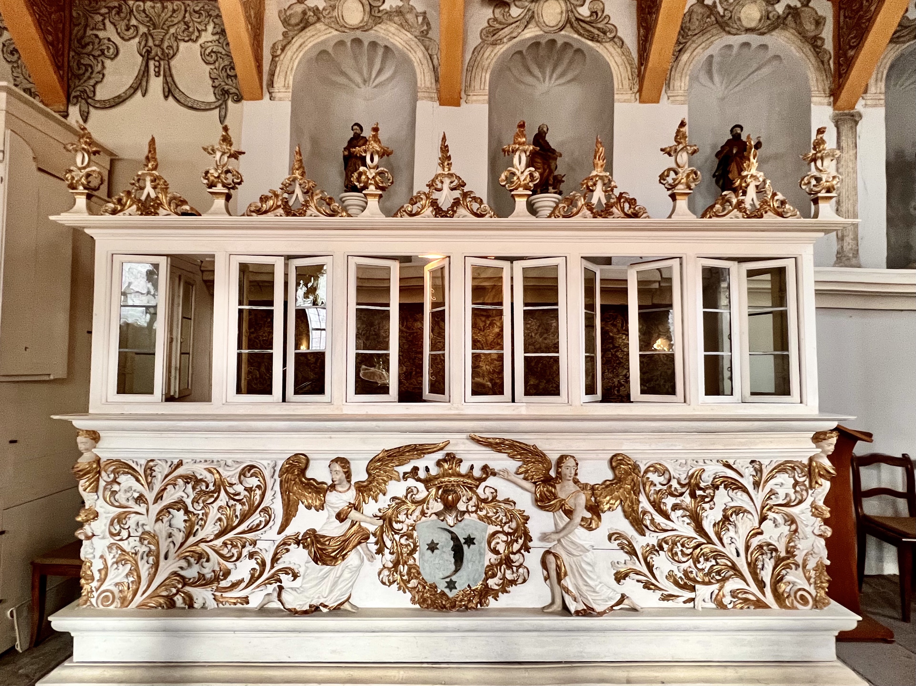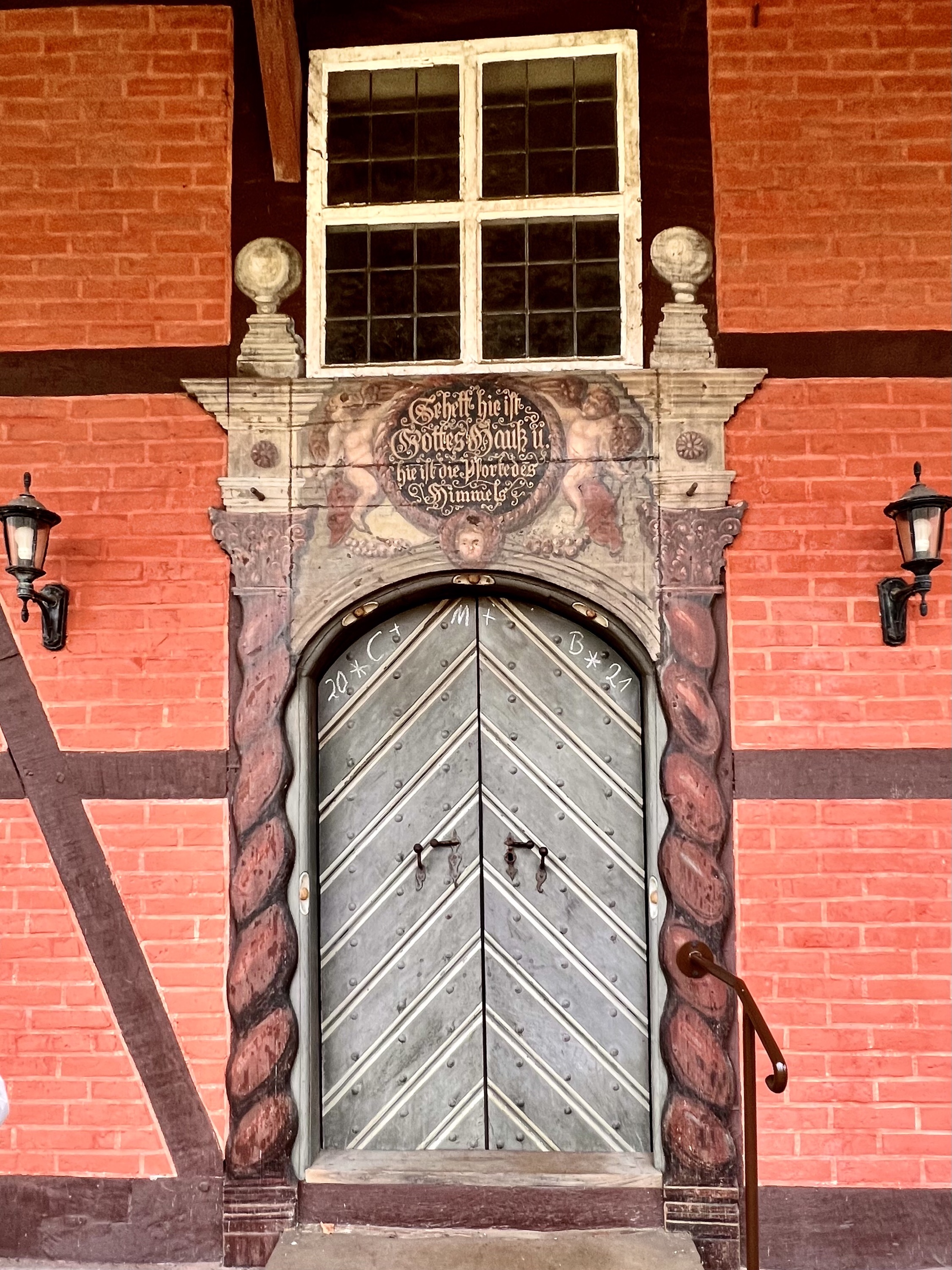 Today Heinrich and Elke wanted to take us to see the Stechinelli chapel in the little town of Wieckenberg in the district of Wietze. There is a long complicated history of how Francesco Maria Capellini, nicknamed Stechinelli, skinny legs, came to build this chapel which I heard today and is filtered through my poor German. He came from an aristocratic family in Venice, which was visited by the Welfenherzog Georg Willhelm who ruled this area on a visit to Venice. He brought back to Celle the young Stechinelli, who had run away from home to seek his fortune and get rich after the death of his father. He was a very enterprising guy and in the years after he attached himself to the court of the Herzog he became rich through trade and buying and selling houses. He married twice, his first wife dying in childbirth, and had 13 kids, seven boys who were brought up Catholic, Stechinelli‘s Italian religion, and 6 girls, who were brought up Lutheran, his wives‘ religion.