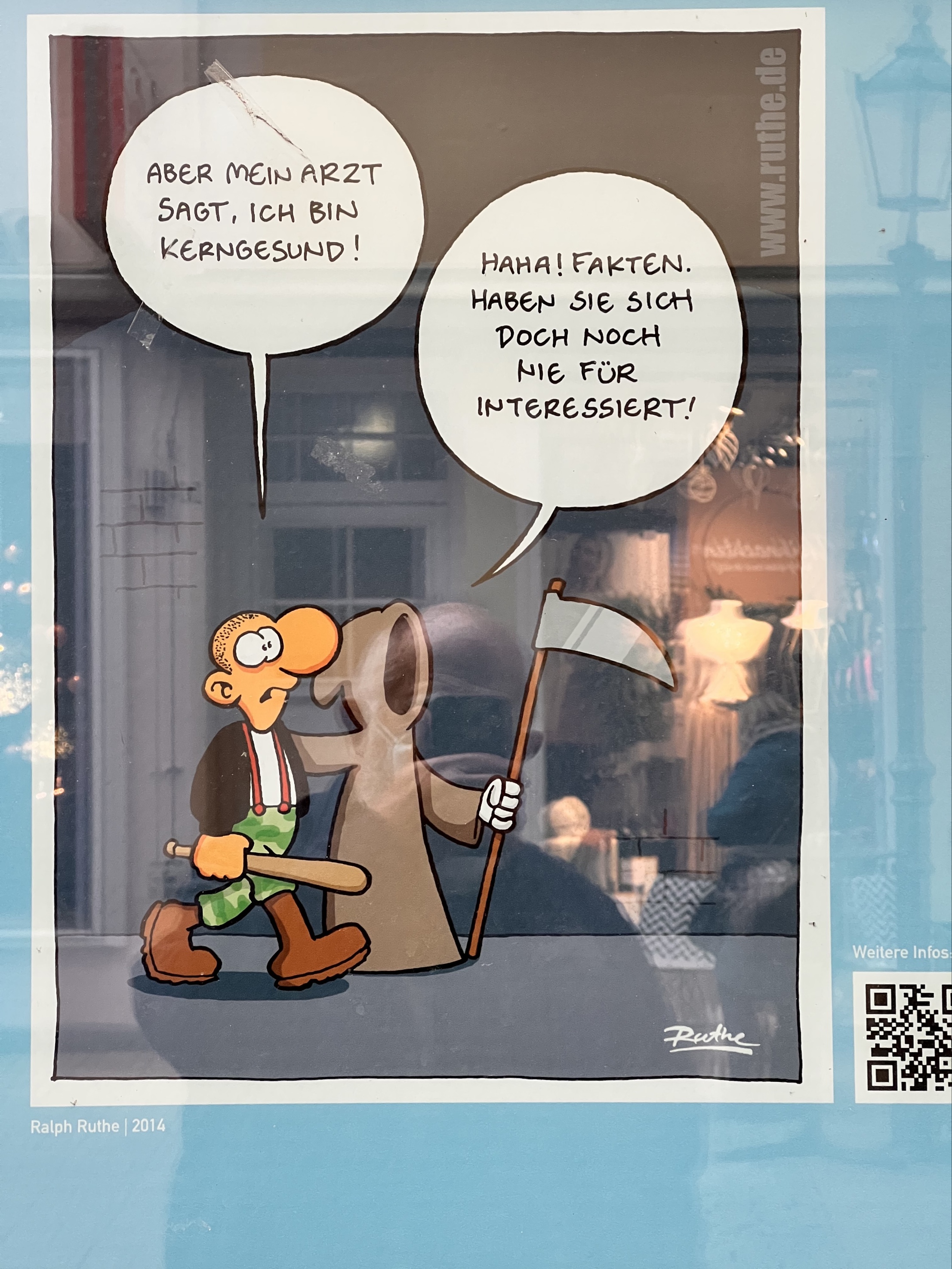 And then in the storefronts in another part of Celle was a Poster exhibit in window after window, posters that mocked racism, anti immigrant hatred, fear of Jews, blind believe in conspiracies.