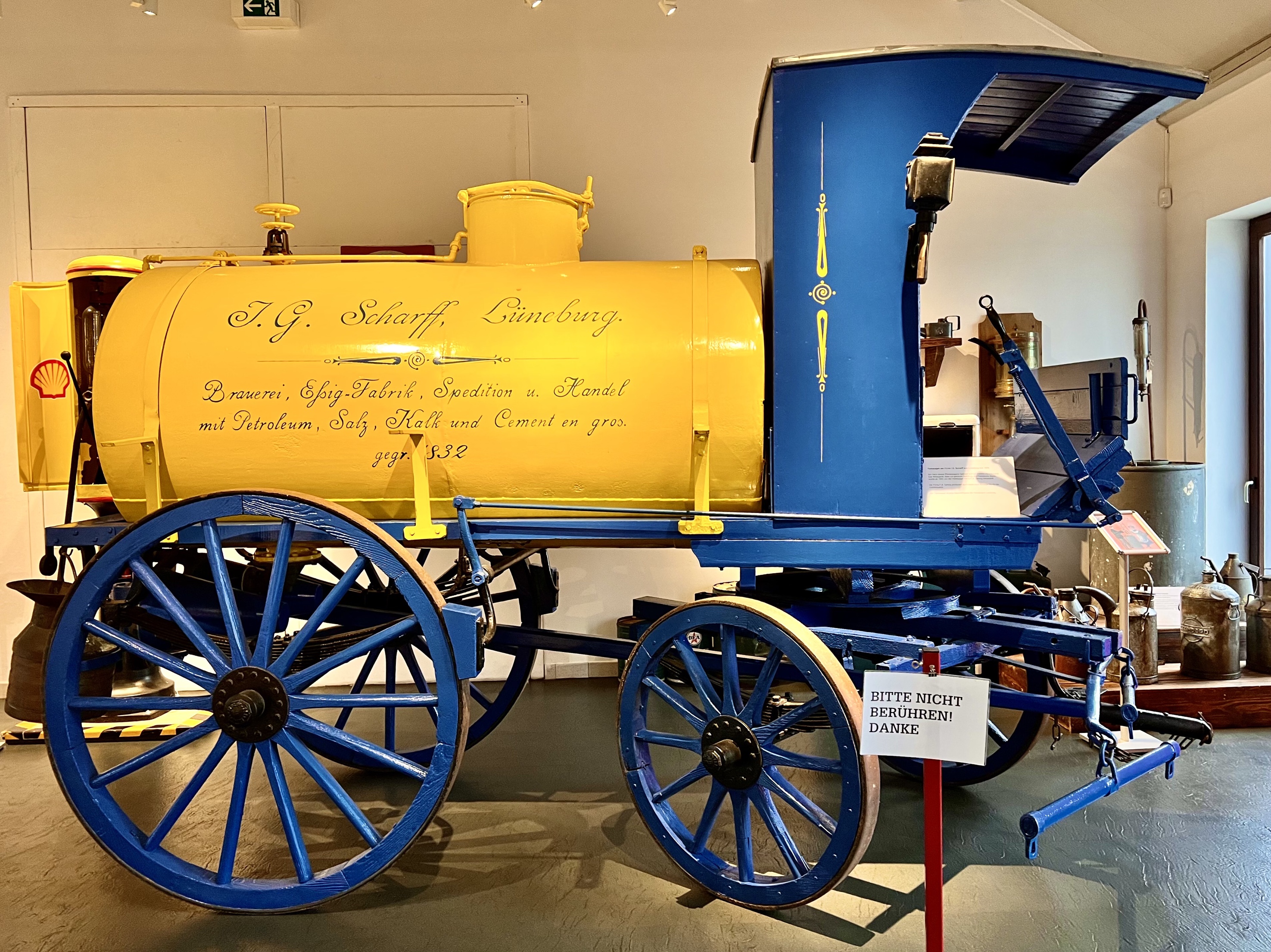Yesterday Heinrich and Elke took me to the Deutsches Erdolmuseum, the German Oil Museum, in Wietze, to the village close by where we visited the Stechinelli chapel last week. I didn’t expect much. I knew that oil had been discovered here and that a number of farmers had gotten very rich and built huge houses in the center of town.