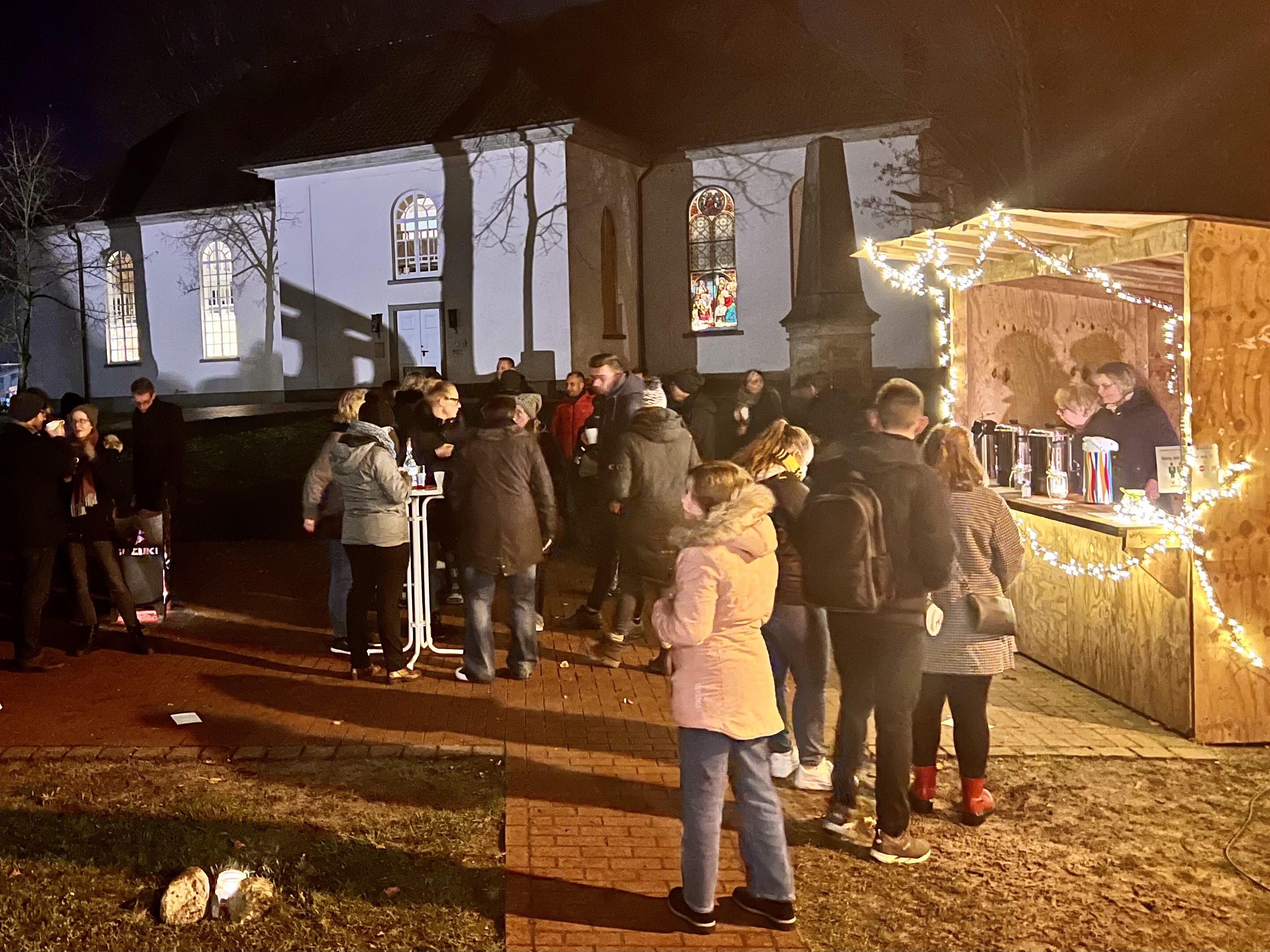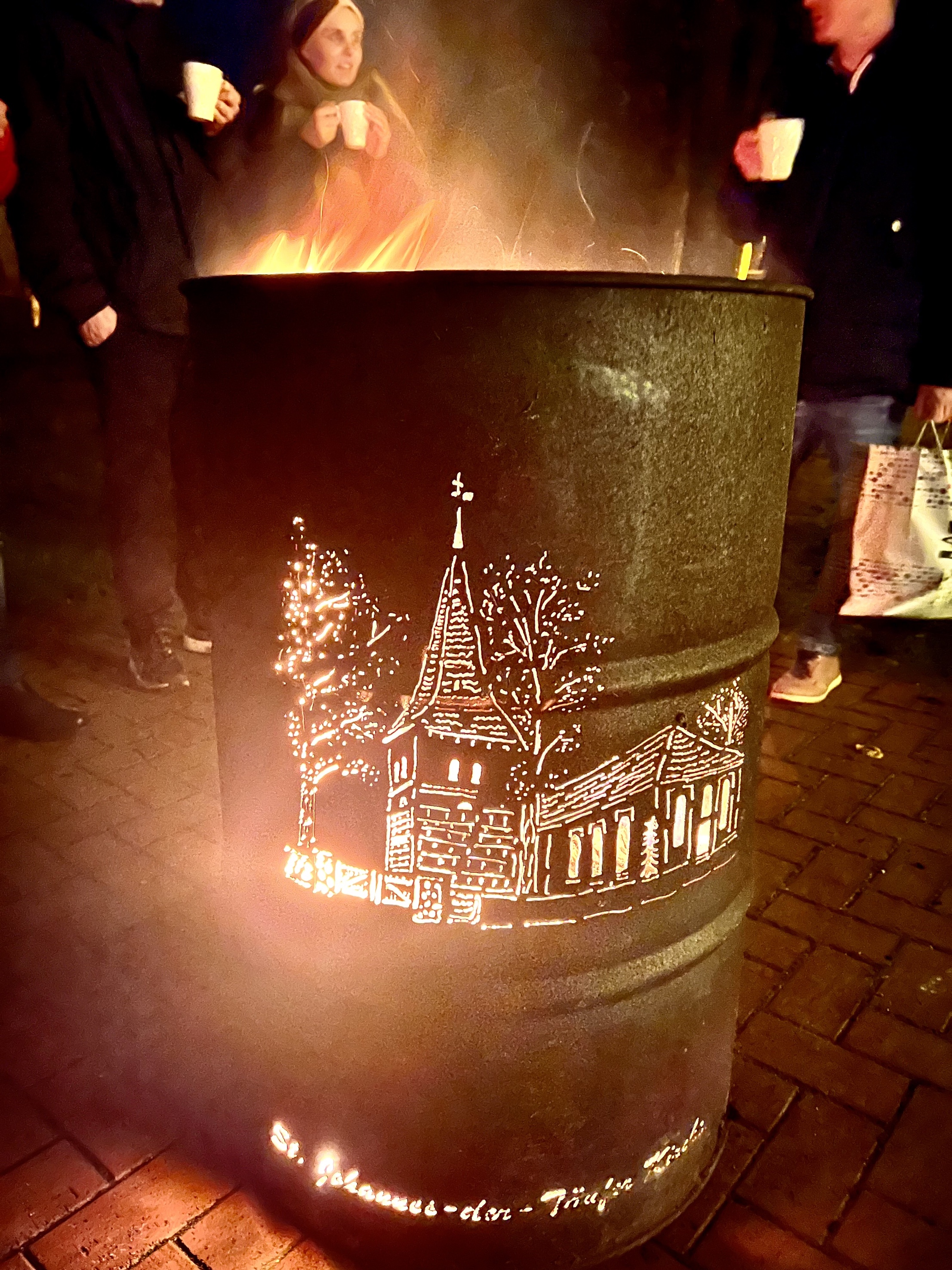 The high point of the day, for me, was joining a large group of people gathered outside Nebenan (Nearby) the cafe of the church community where we drank gluhwein, wine with spices, and ate Schmaltz, flavored lard on bread.