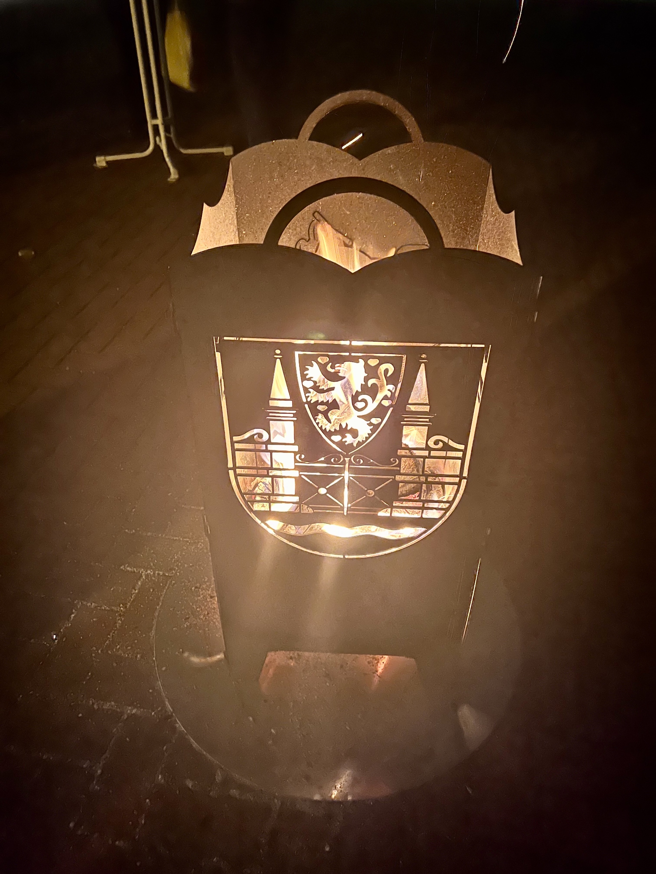 It was in the low 40’s and damp chilly. There were several wood fires in metal barrels with designs cut into them to warm us a little. It was fun.
