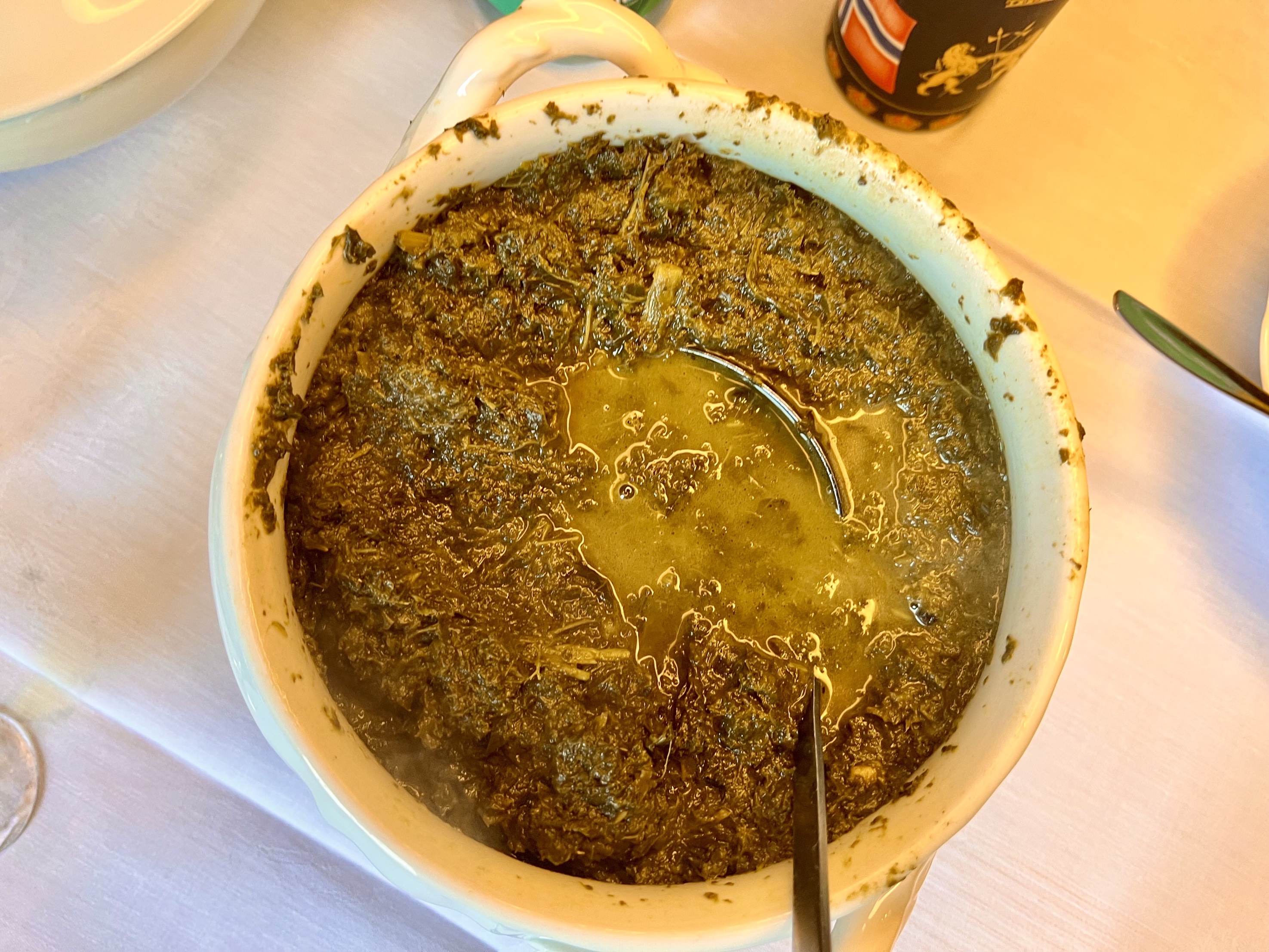 Sunday dinner centered on Opa‘s grunkohl, a mysterious green purée poured over boiled potatoes,