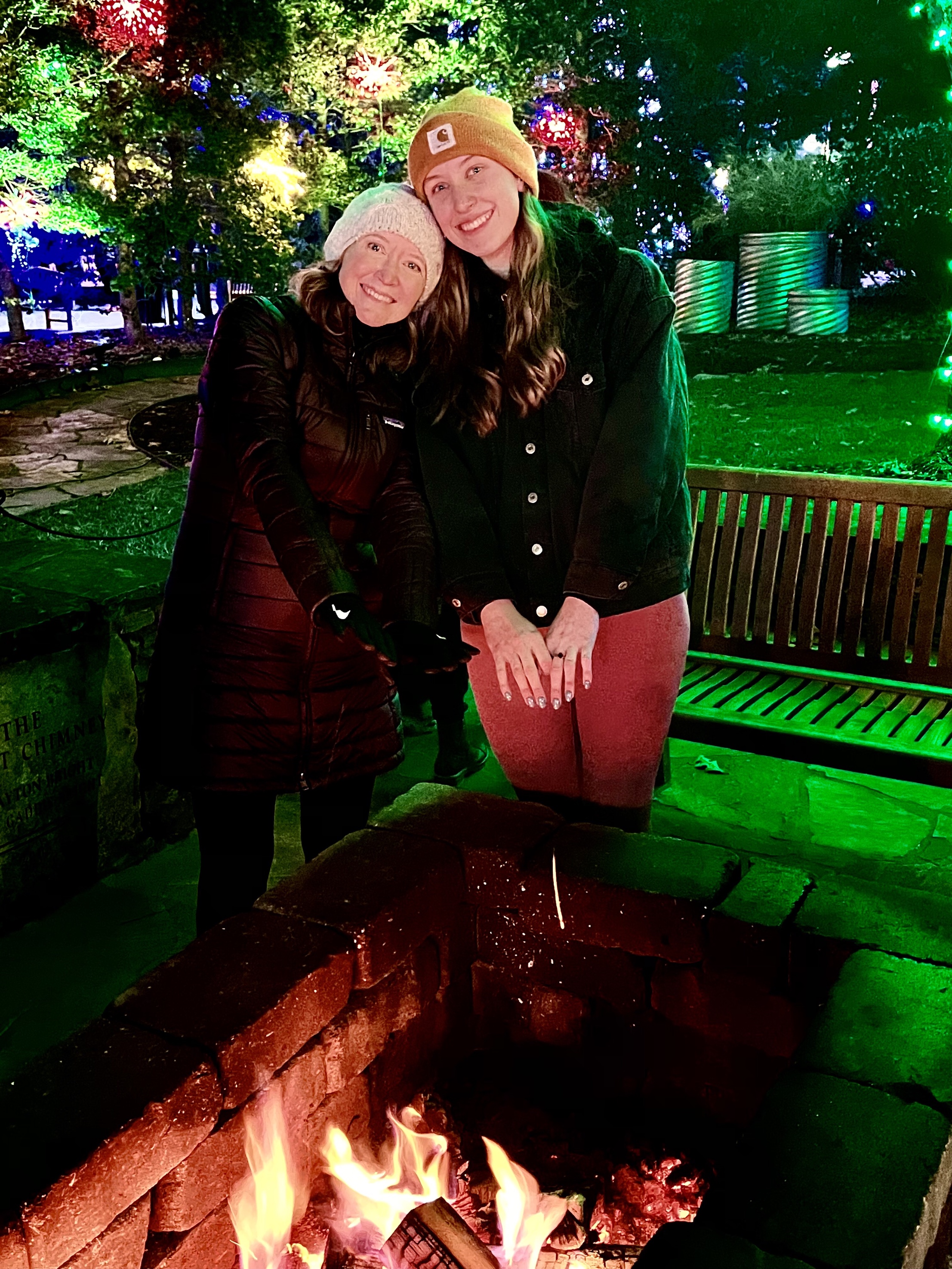 On a chilly Sunday night, my son Tom’s family—Tom , Kathy, Caroline and Hannah—followed a long line of cars into the Asheville Arboretum where we walked through an enormous display of colored lights.