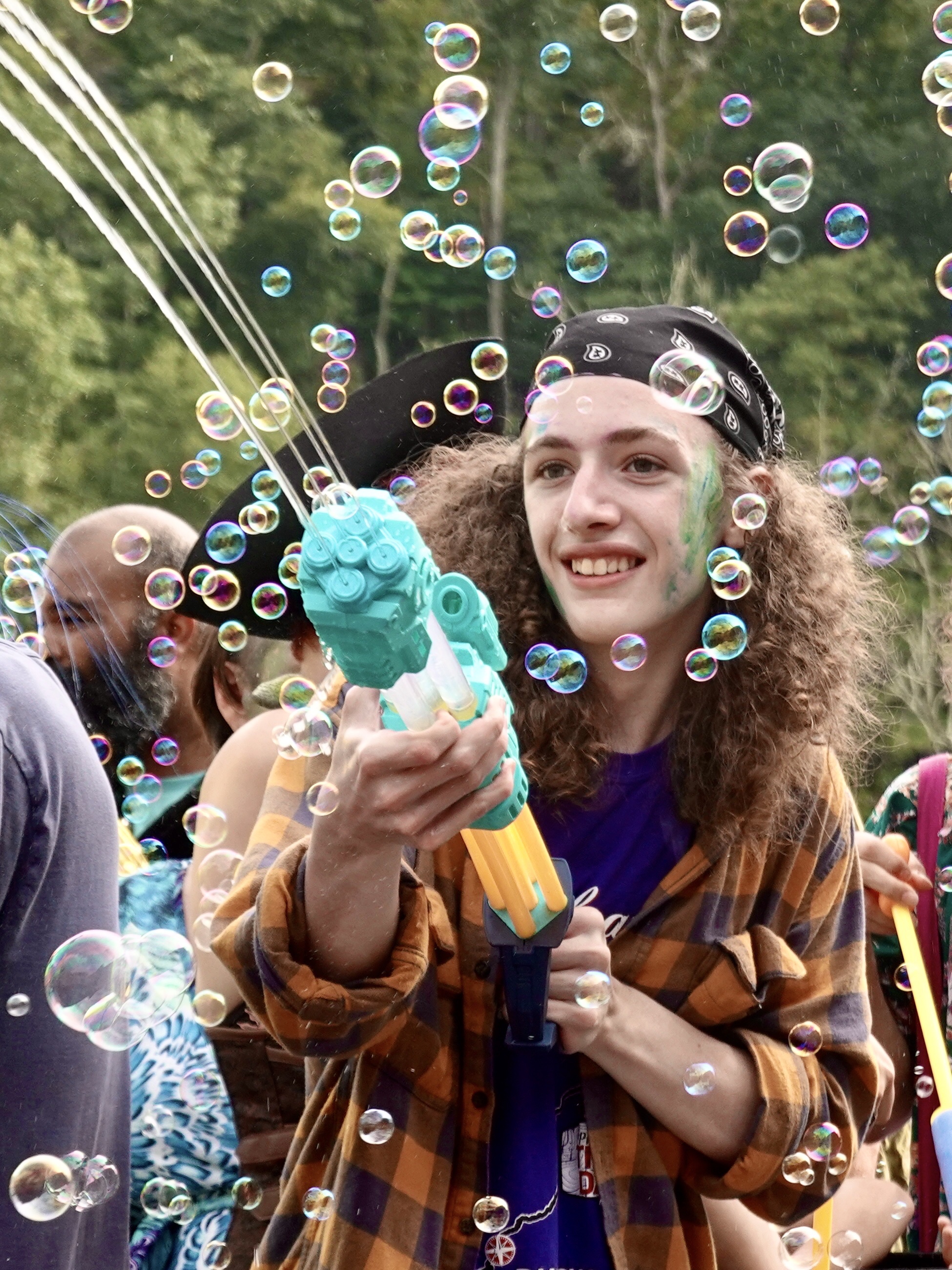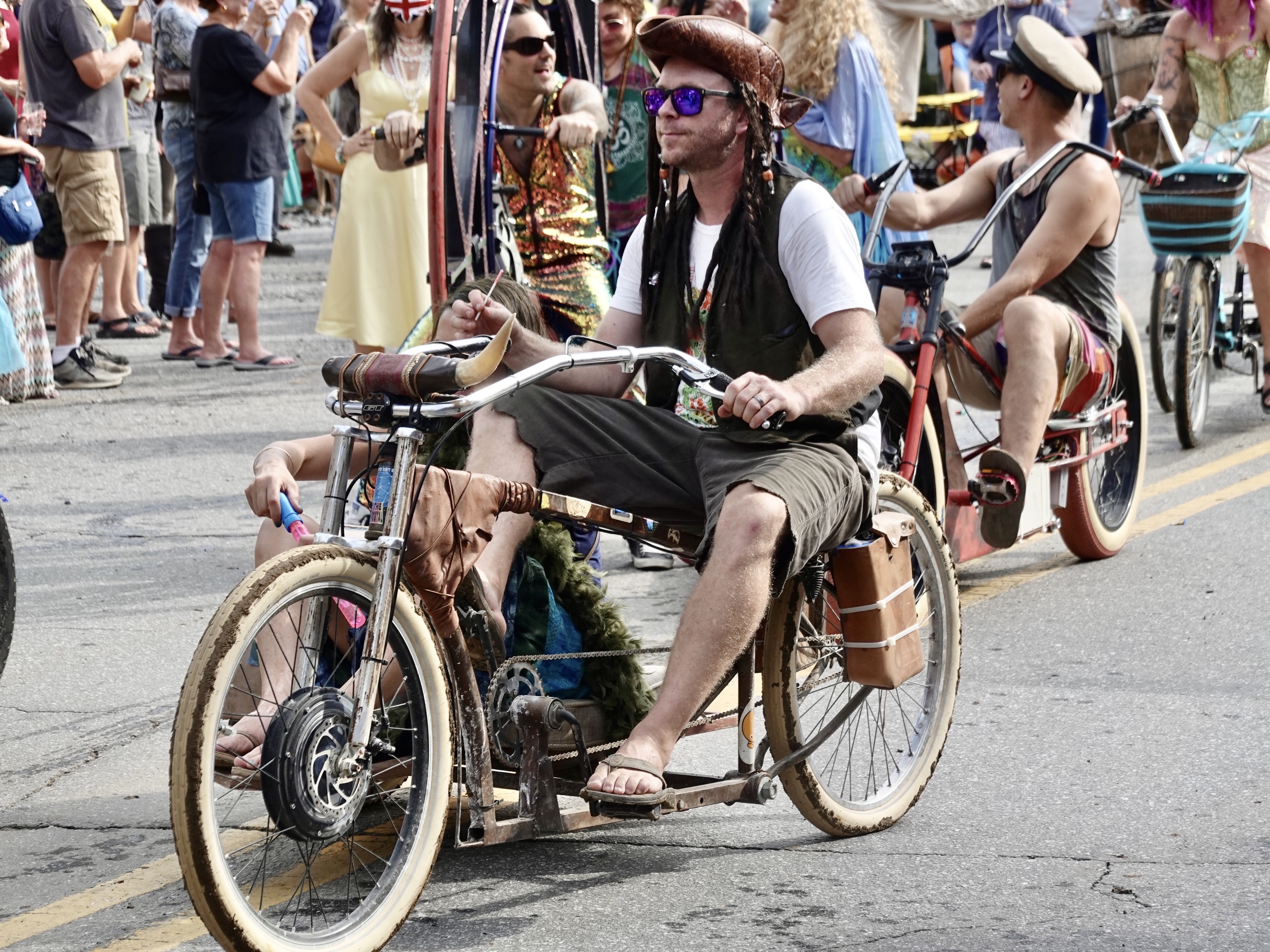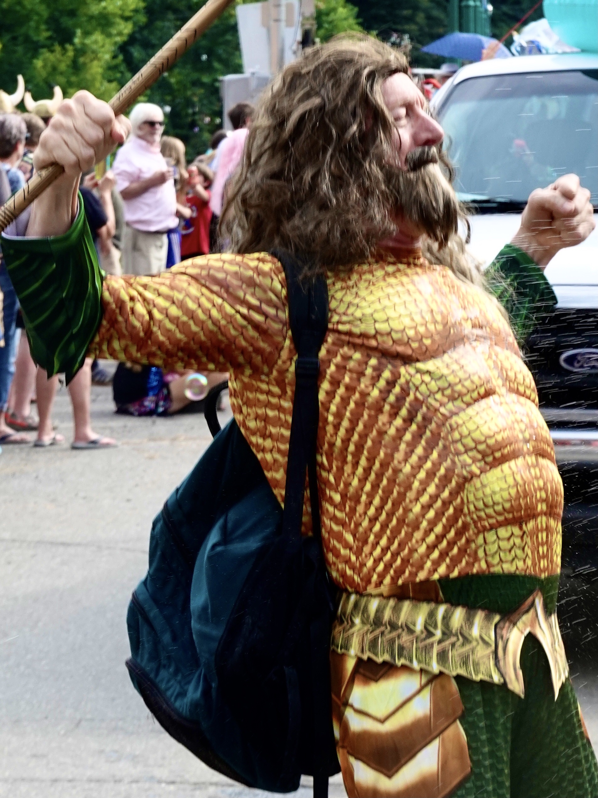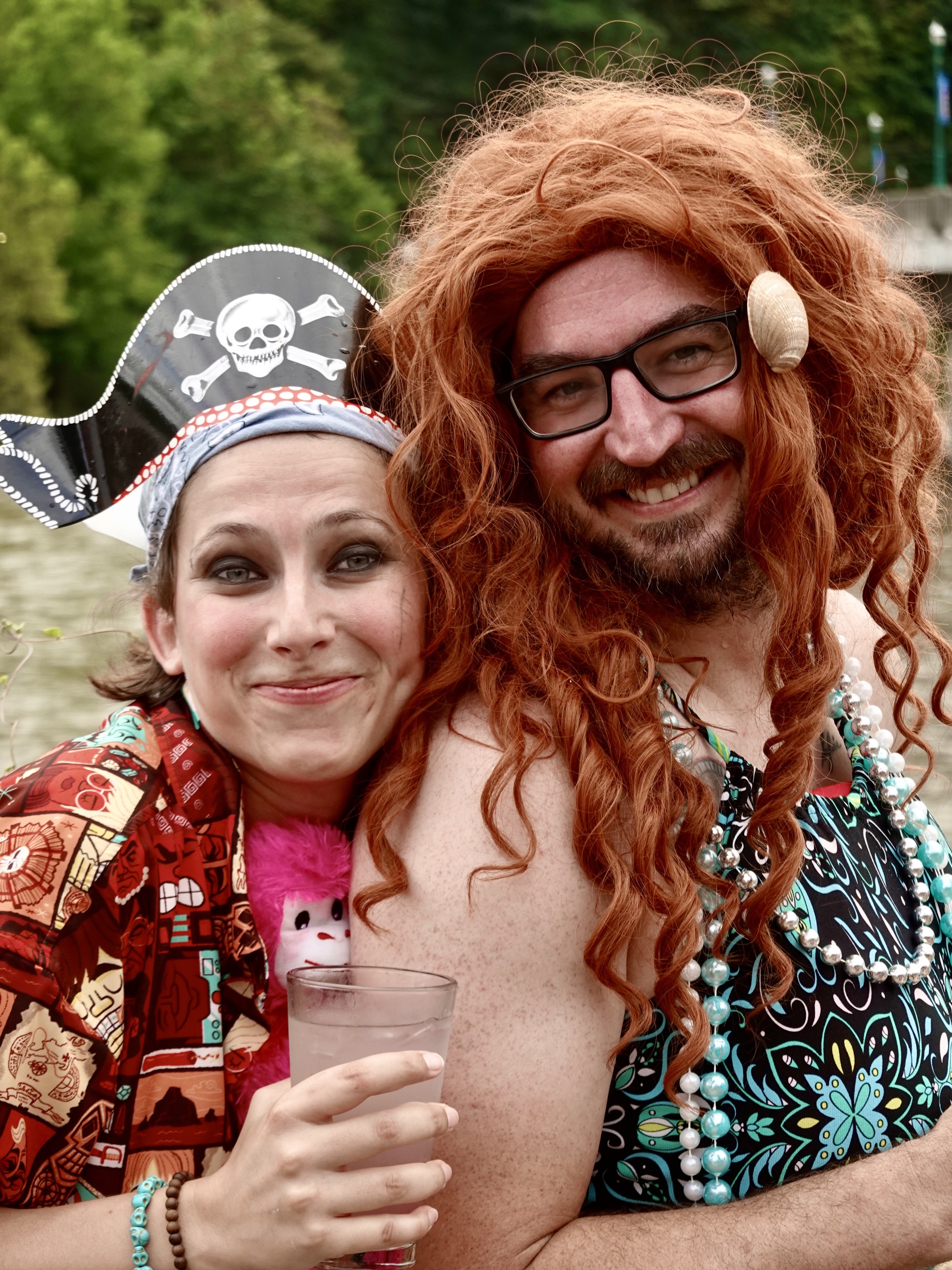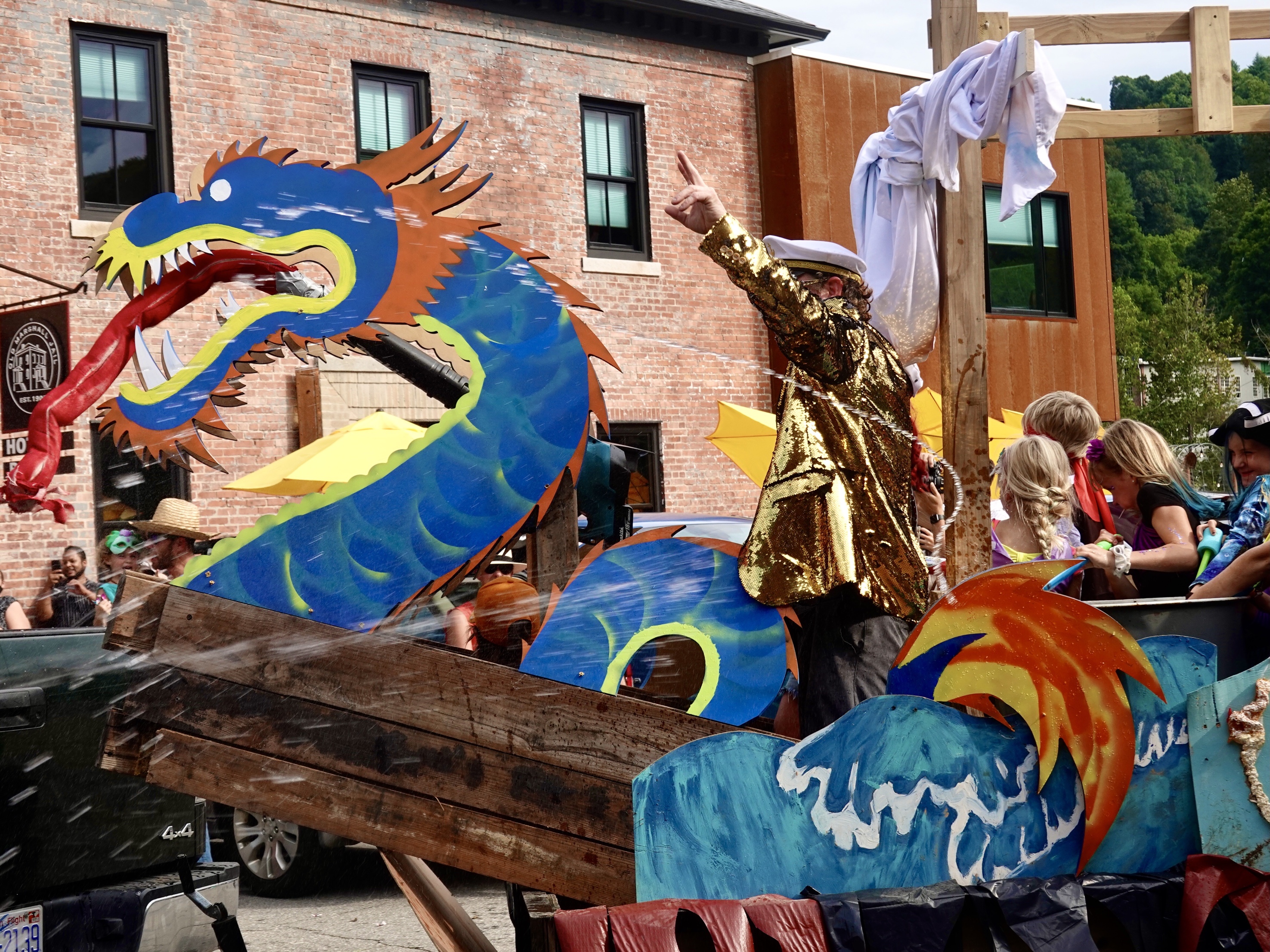 Another example of people in the Asheville area having a good time together. If the universe is an absurd place without any absolute meaning, these people sure don’t show it. Instead they are exuberantly having a great time. If America is an untidy place with big box stores and billboards everywhere, they certainly don’t seem to mind. If the country is polarized and bitterly at odds these people don’t show that either. They are having a great time celebrating the foolishness of Mermaids and Pirates simply because it is fun to do so, for the same reason Maggie wags herself in knots when I walk in the door. They can’t help it.