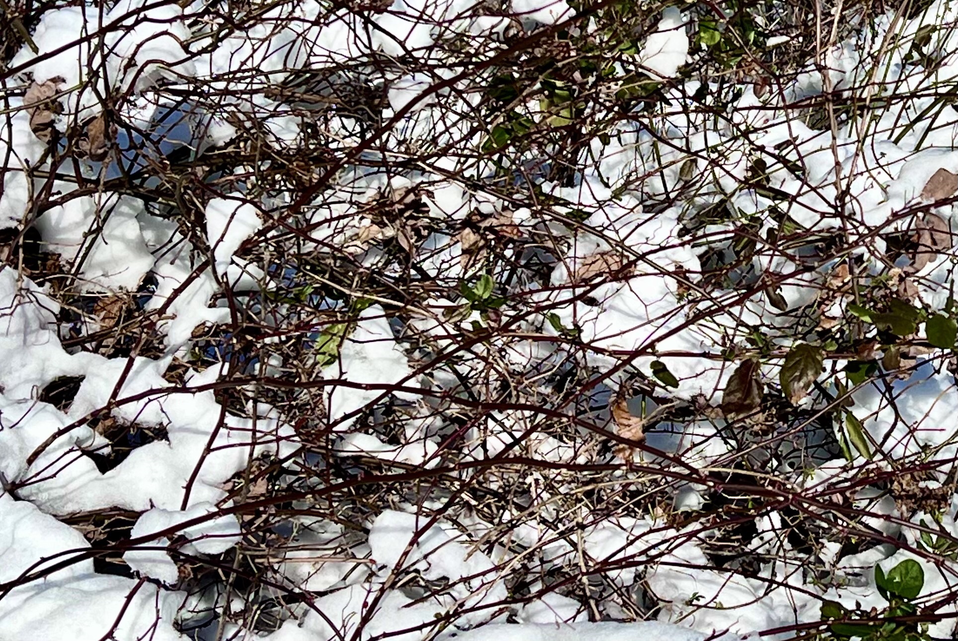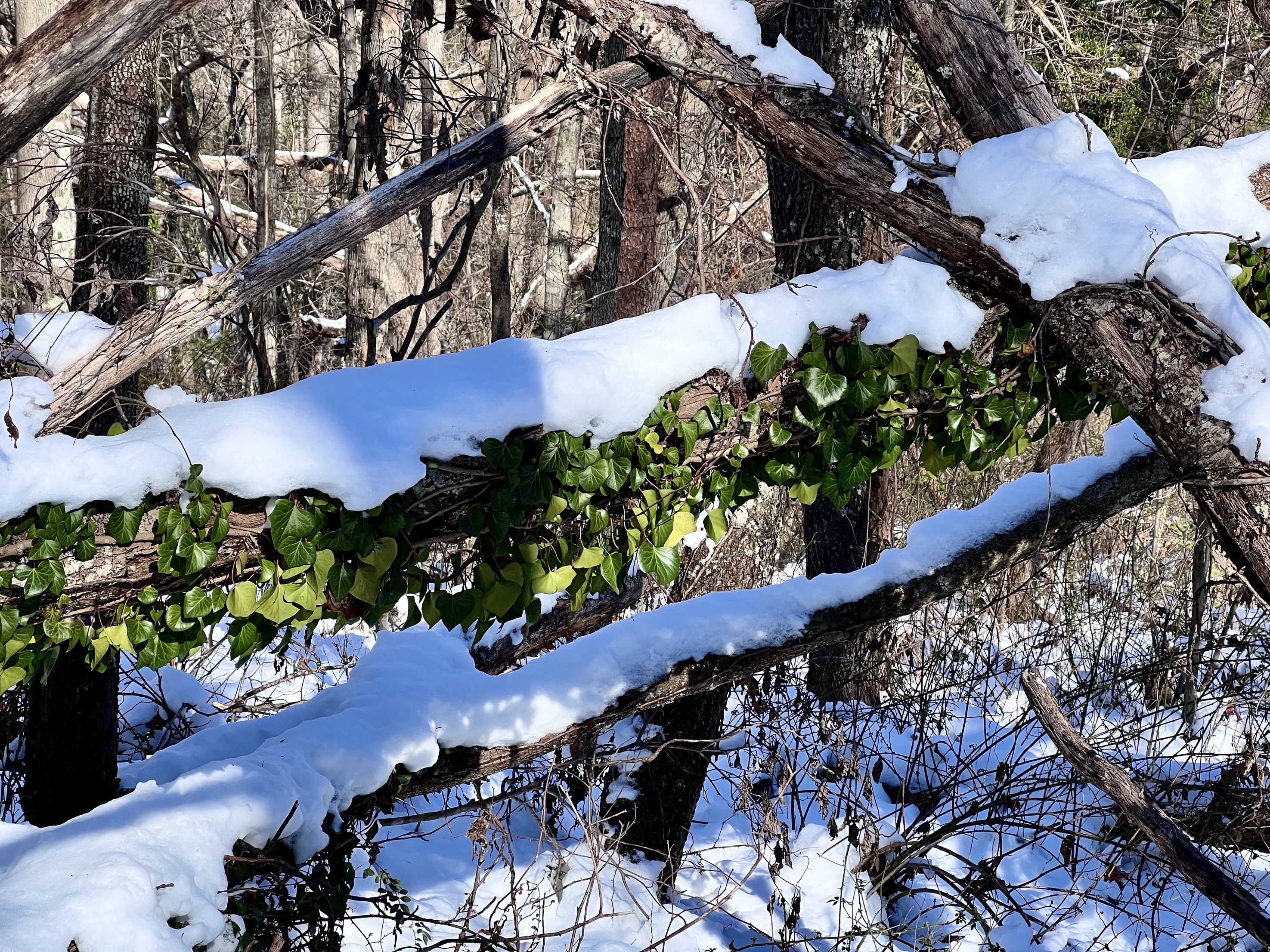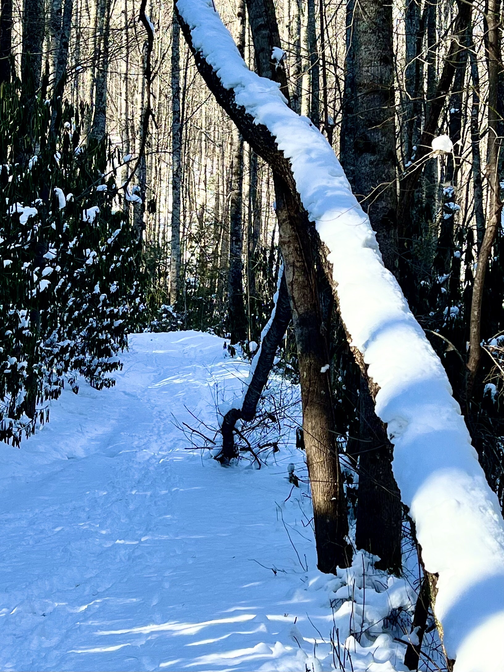 One last look at the beautiful snowfall left from yesterday. I thought global warming was taking us into the sun belt. There was almost no snow last year but this year we have had snow three weekends in a row and a reason to celebrate one more time. So I’ll show a few more photographs of snow taken on Jones Mountain above my house as I was walking Maggie, my son Tom’s dog.