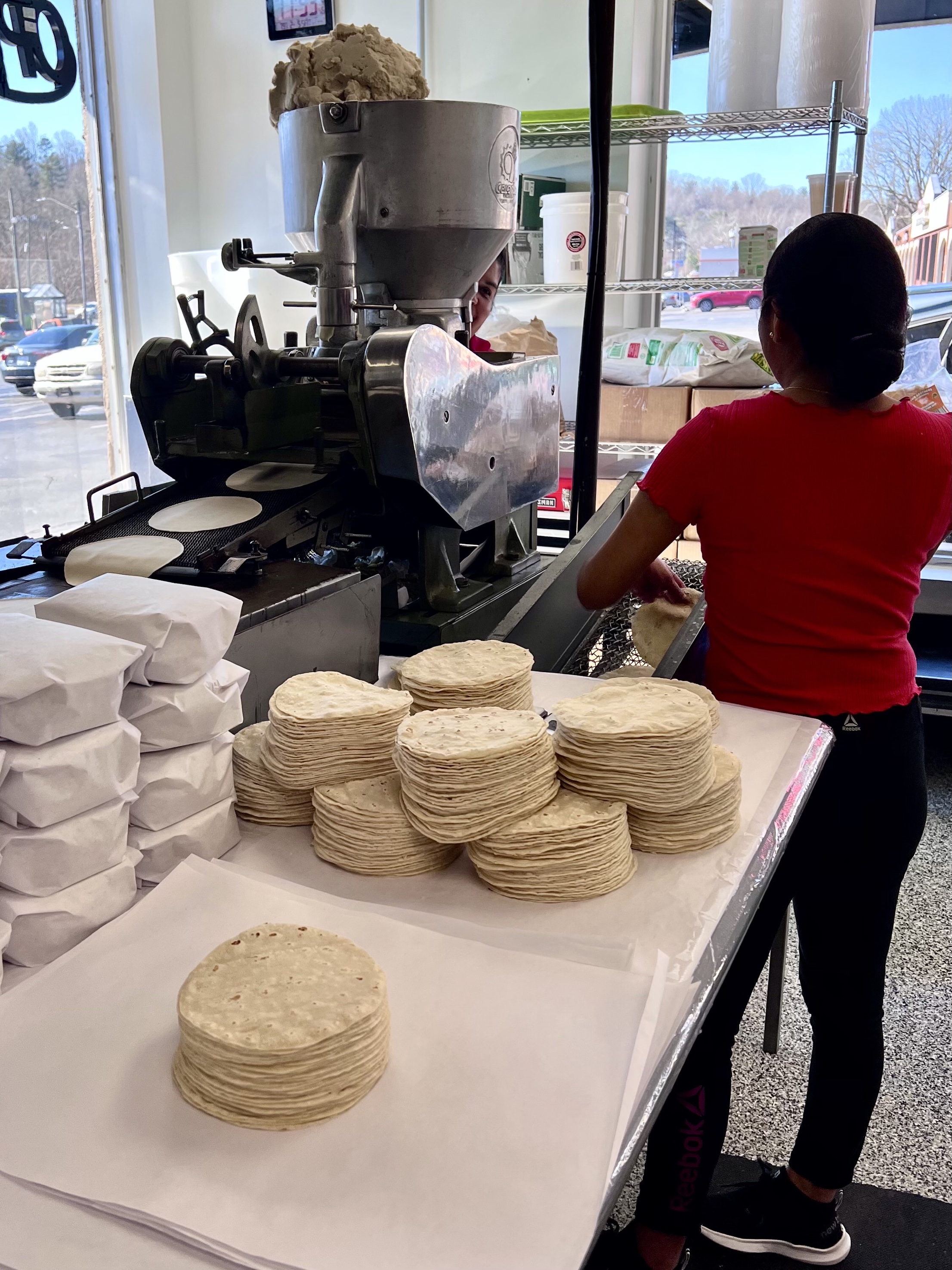 Right neck door we discovered a Mexican tortilla shop where they sold still warm and soft tortillas, 35 for $3.50 and tamales wrapped in corn leaves right out of the oven for $2.50 apiece. I bought both pork and chicken tamales for a later meal.