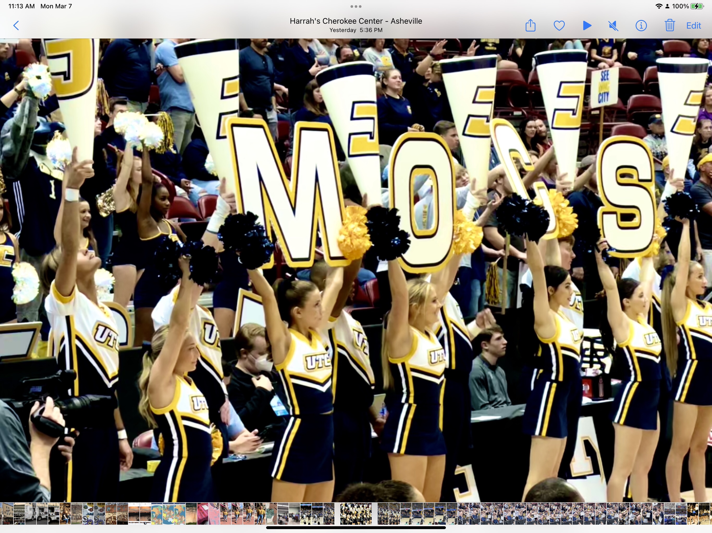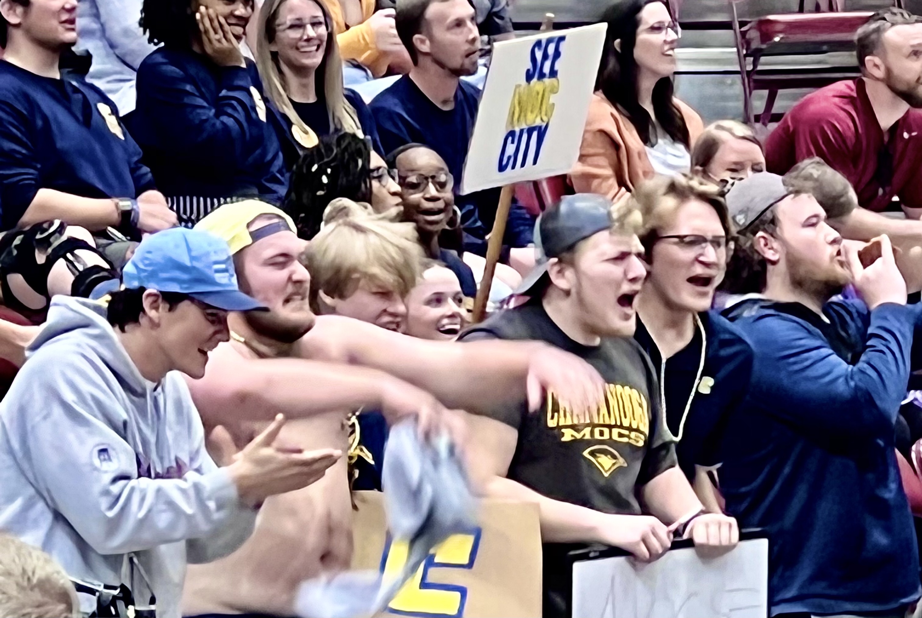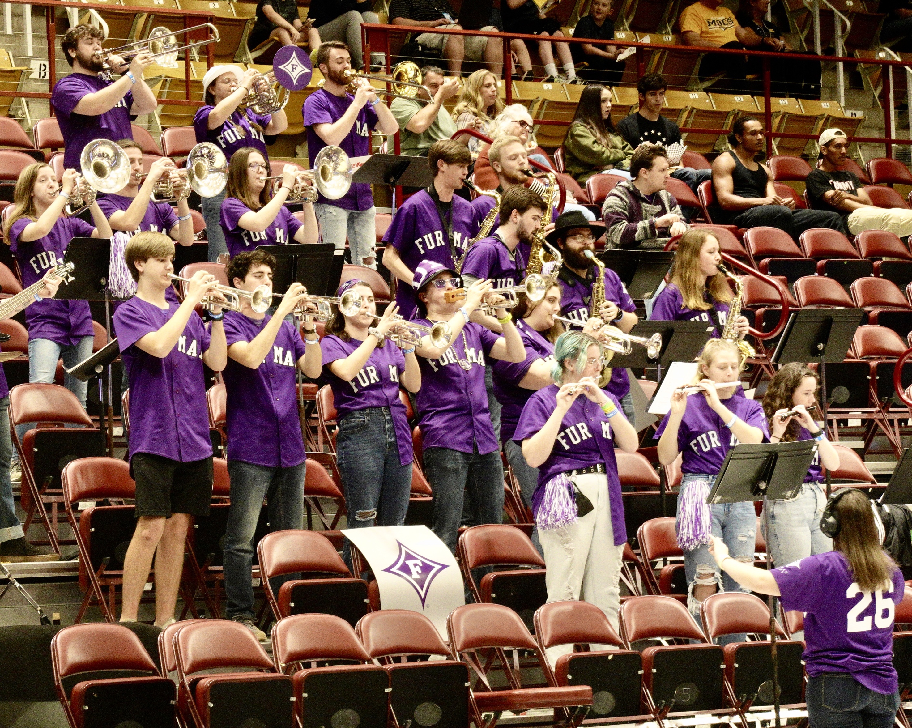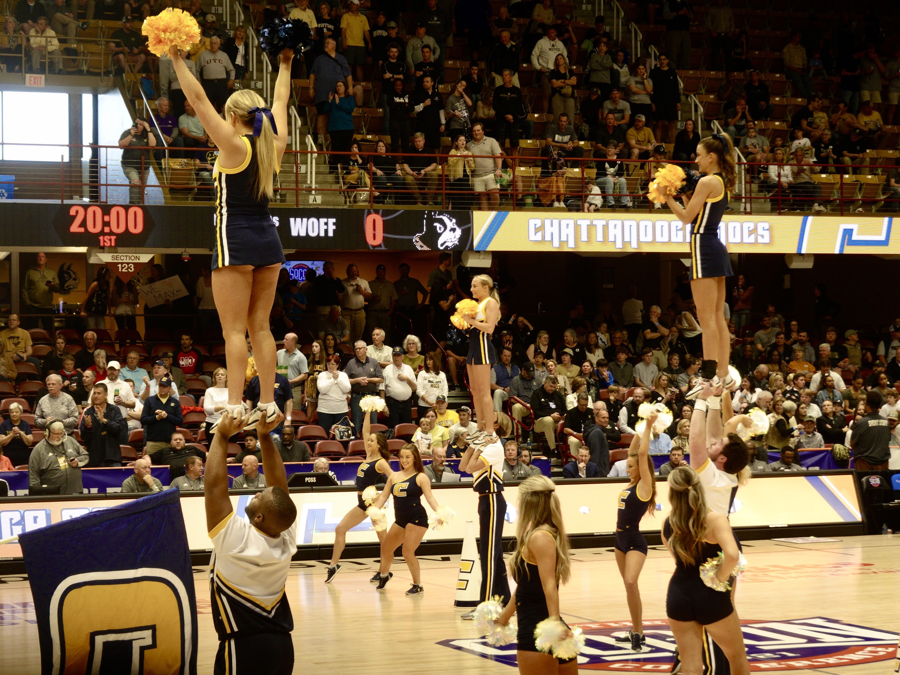 There was also a student section behind each basket where the students from these colleges got more and more rabid, or more and more despondent, as the game went on. To one side of each student section was a student band for each team, who were part band and part orchestrated cheerleading sections.