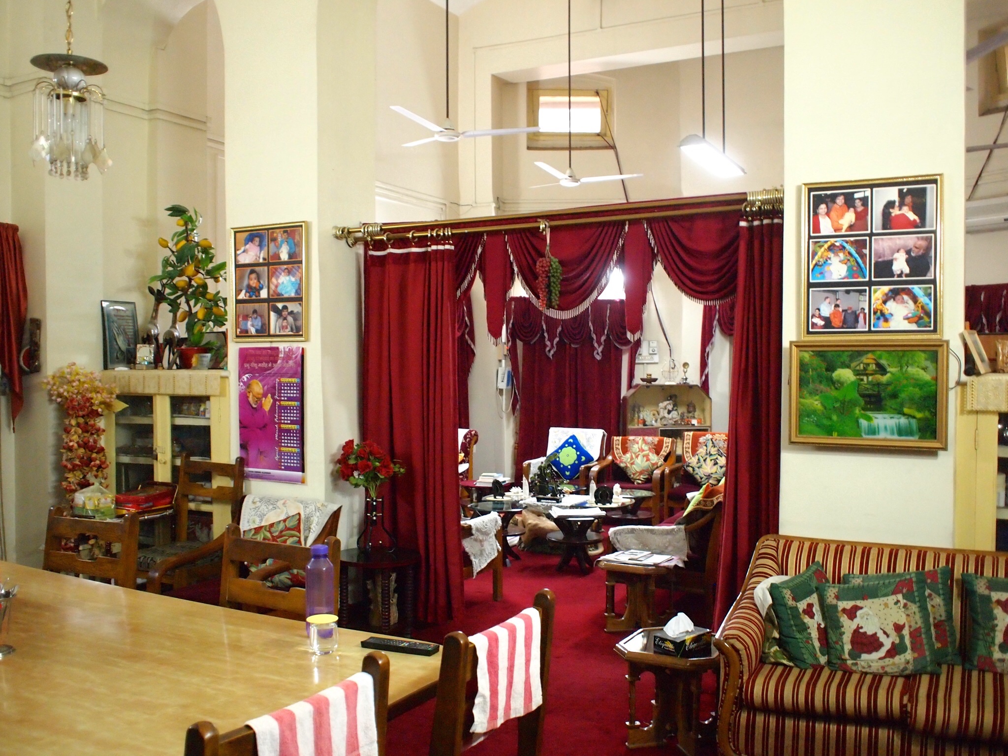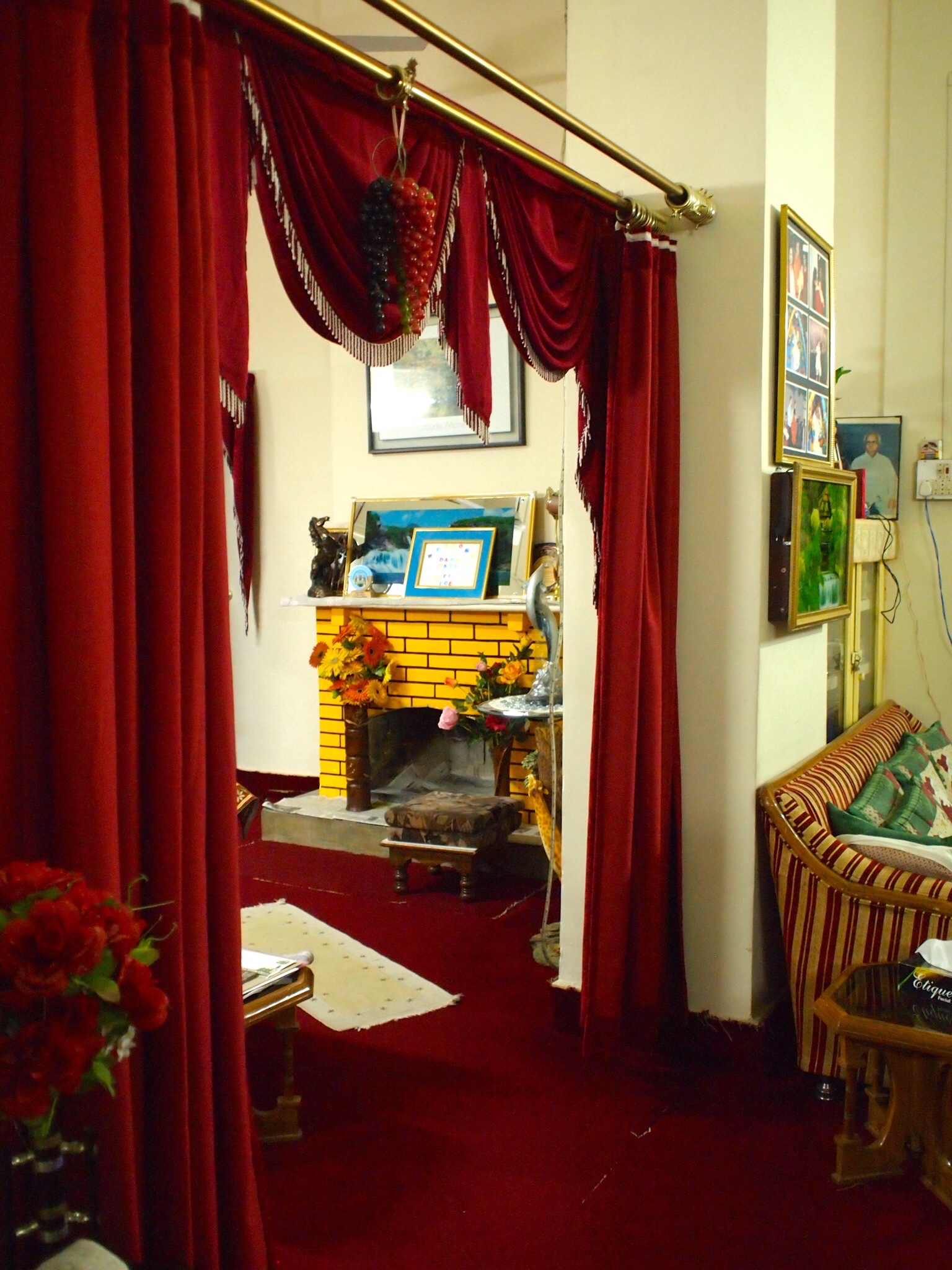 The house, as you can see, is still there. But it is different in every way. The life of Americans under the British Raj is over. Only the house is the same. Indian decorating tastes are different from American decorating tastes, at least of my family. We had some low teak furniture made in the wood shop of the Institute and a large dining room table and chairs in the dining room. (If you look very closely at the ceiling of the dining room you can see the punkah hooks.). In the archways between the white walls of the living and dining room my mother had large vases filled with four foot high sprays of dried grass, a very low key decoration.