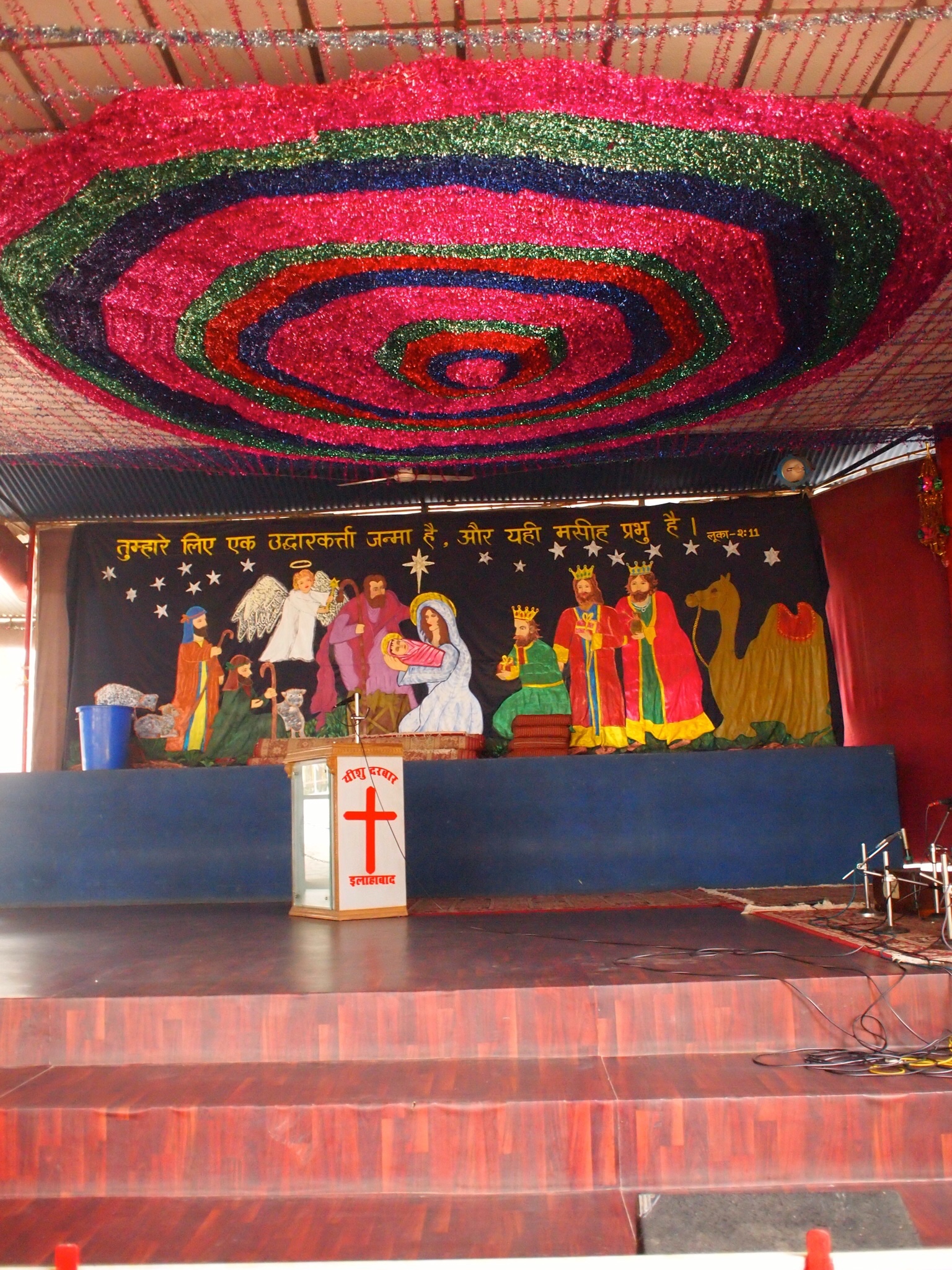 The Agricultural Institute where Christianity and the Presbyterian mission connections were very low key 60 years before is now a center of Christian Fundamentalism which is also causing tensions with the surrounding community and India’s growing Hindu Nationalism. While we were there a 12 foot wall was being built around our garden with an armed guard at the gate protecting the current principal, Dr. Lal. And on the flat roof of the house is a Christian broadcasting studio beaming the evangelical message out to the surrounding area. Across the street in the old soccer field is a small stadium where sermons are directed at a large audience, with seating for a large number of people under murals of Biblical scenes.