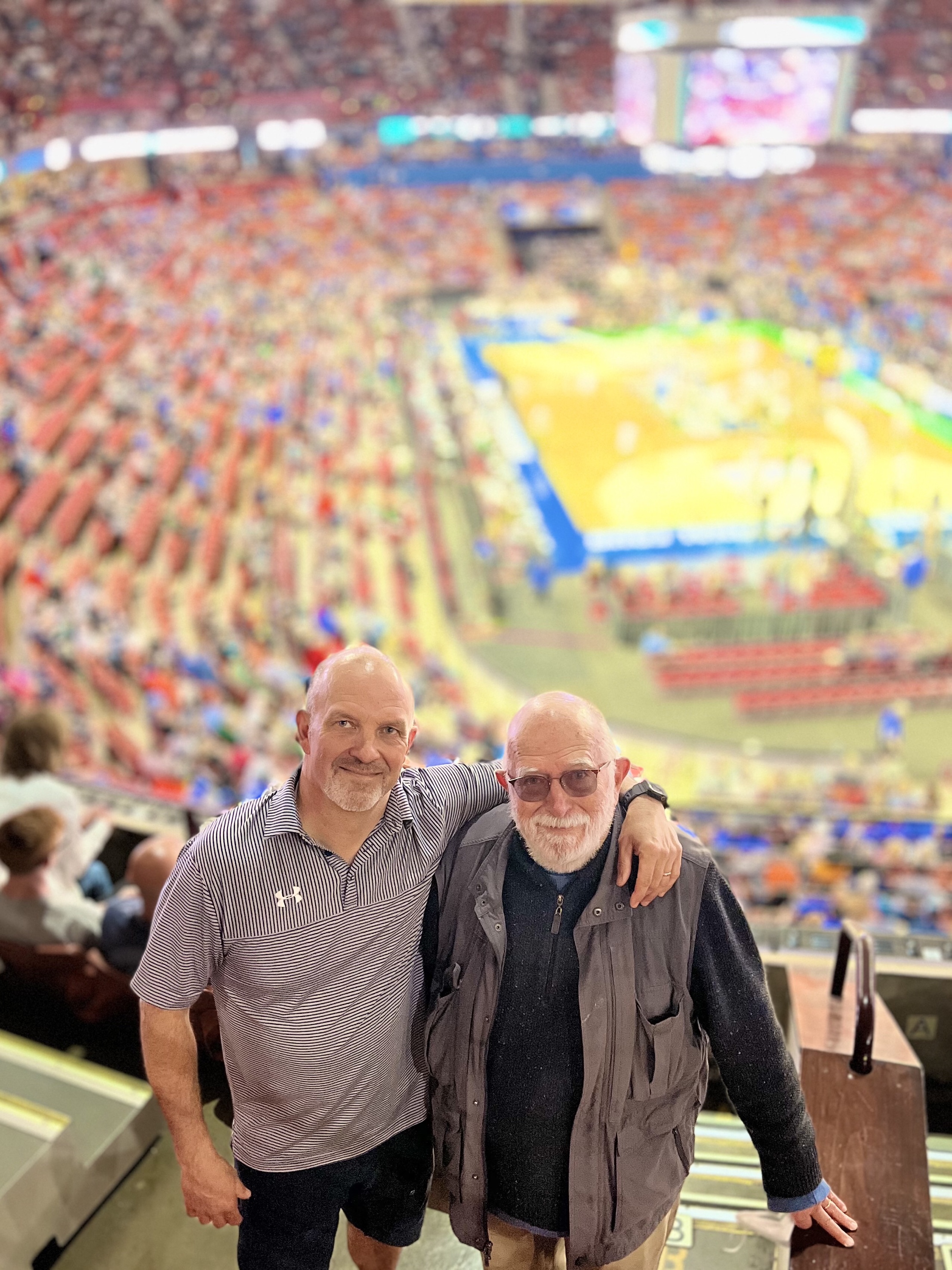 We were all sorts of people at Sunday night’s game, which in South Carolina, a conservative state, were probably evenly divided between MAGA Republicans and Liberal Democrats. But it didn‘t matter. We were all religions and races and gender and levels of education. We were the ethnic mix that makes up the United States and for tonight none of our intensely felt divisions mattered. We were simply fellow Americans directing all our passion and intensity to the bounce of an orange ball within the arbitrary lines of a basketball court and a hoop, that when the game was first invented in 1891, was a peach basket nailed to a gym balcony, a game that was made up by James Naismith, a physical education teacher, to give boys a sport to play during the winter months, a game safer to play than football. Better to take out our passion and aggression out, to scream and cheer, in this harmless game than to direct it at each other as happens so often all around us and in distant places like Ukraine.