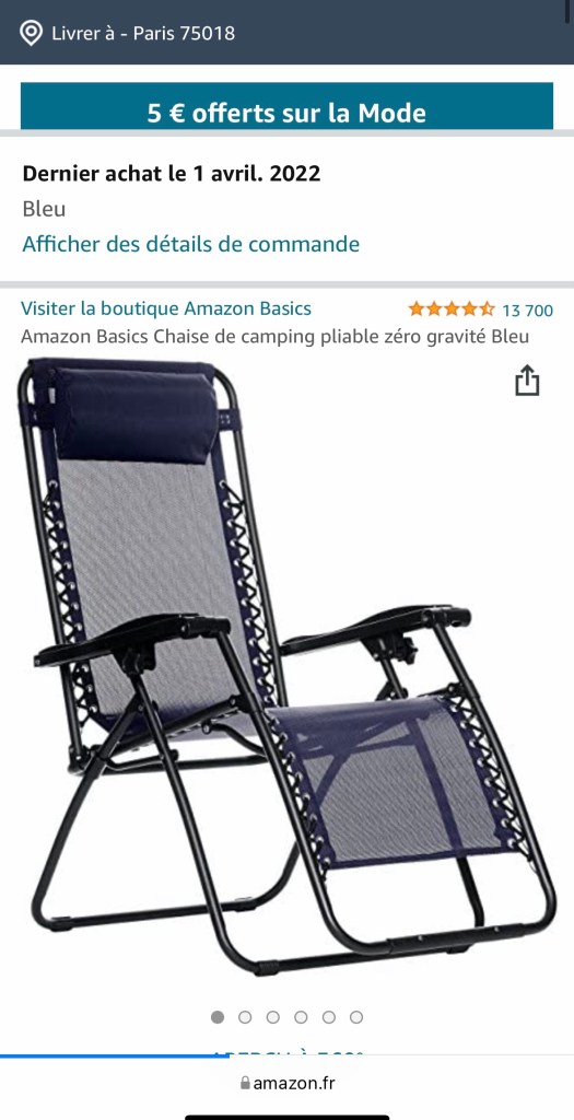 But I was still worried that they wouldn‘t be able to deliver it to my 3rd floor apartment past two locked doors on the ground floor. So I ordered two smaller things, a French Press and a heater for a coffee cup as a trial run to see how Amazon worked before ordering the chair. They came on Saturday. I got a phone call which Apple identified as spam, another car warranty offer I was sure, an offer I get almost daily in Swannanoa. I nixed it. Immediately there was a second call and then I realized that Apple would think all calls from France to Swannonoa, where it thought my phone was, were spam. I looked out the window and there far below me was a man holding an Amazon box. I quickly, or quickly for me, raced down. At this point he had used the code that I had sent to get past the first door and was deciding what to do. Not only did I get the packages but I now knew what to look for on Monday when the chair would come.