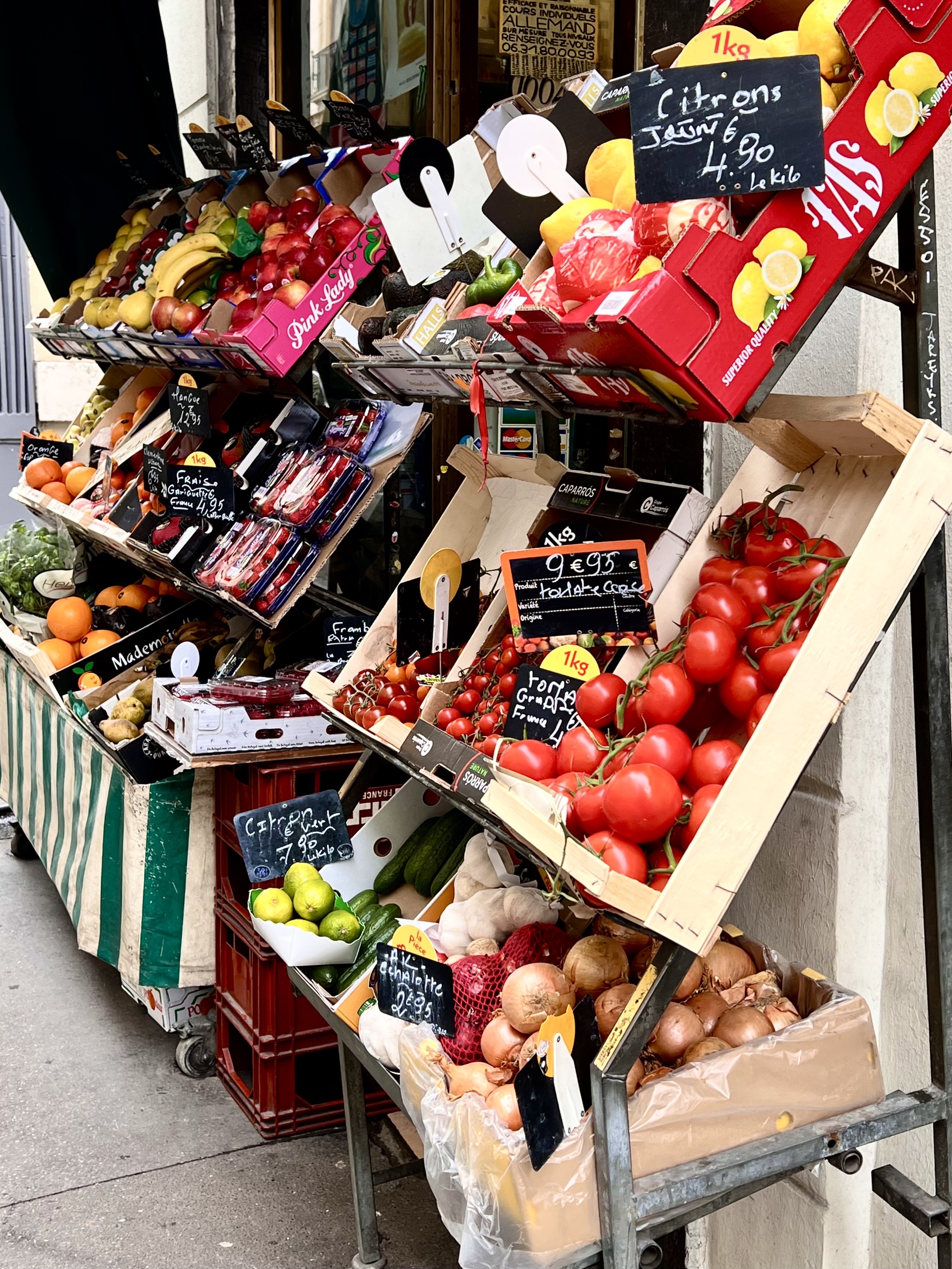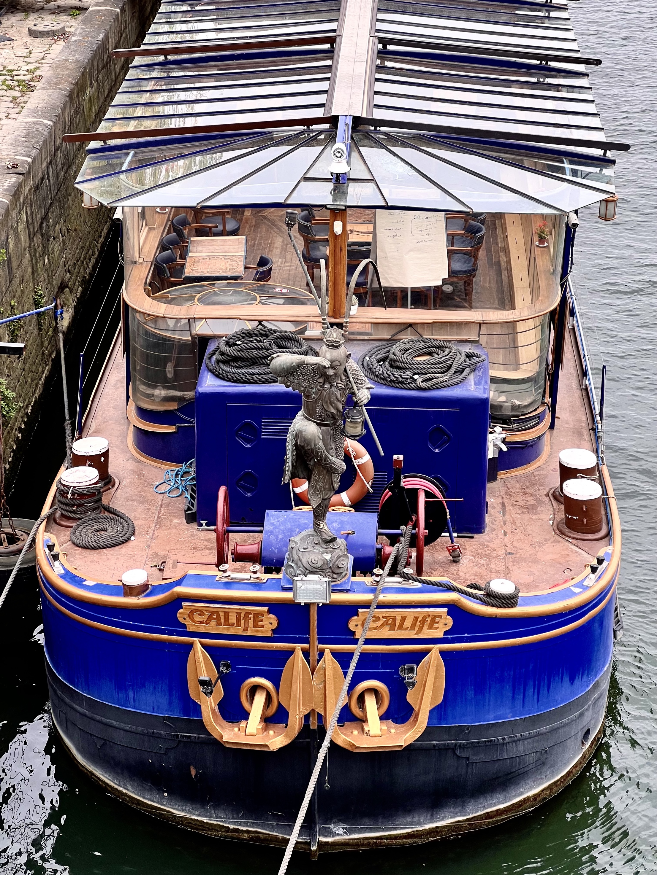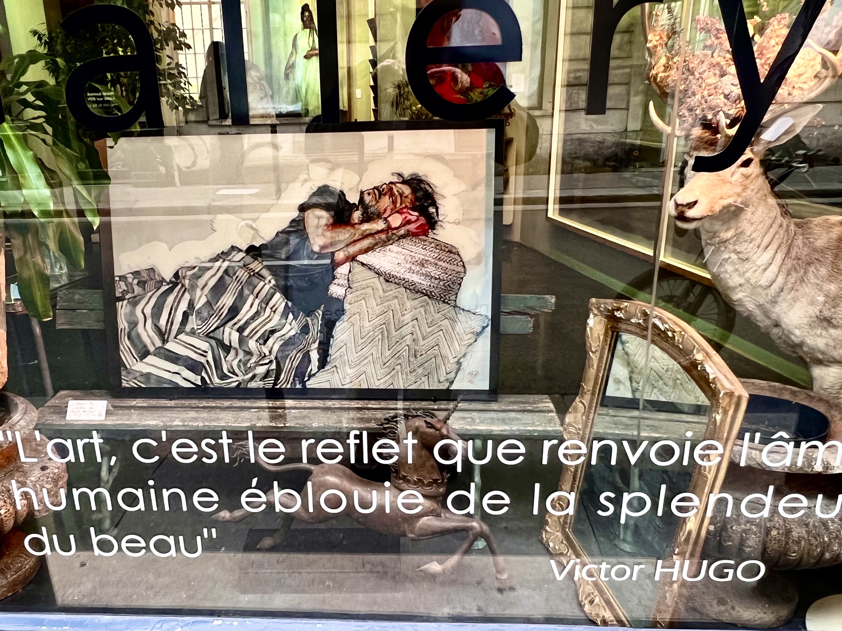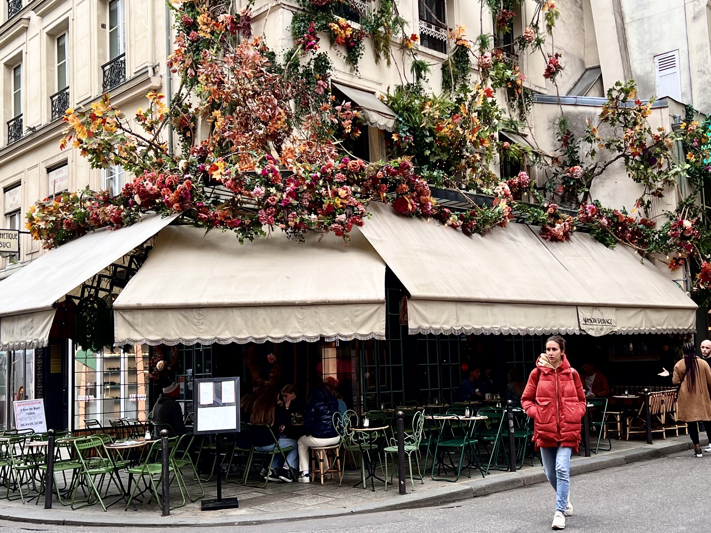 Today I took the Metro to the Pont des Arts and walked along the Seine and then across the pedestrian bridge to the left bank where I walked through the narrow streets between Rue de Seine and Rue Bonaparte. There was art gallery after art gallery and many small boutique stores and sidewalk cafes with elegant people everywhere.