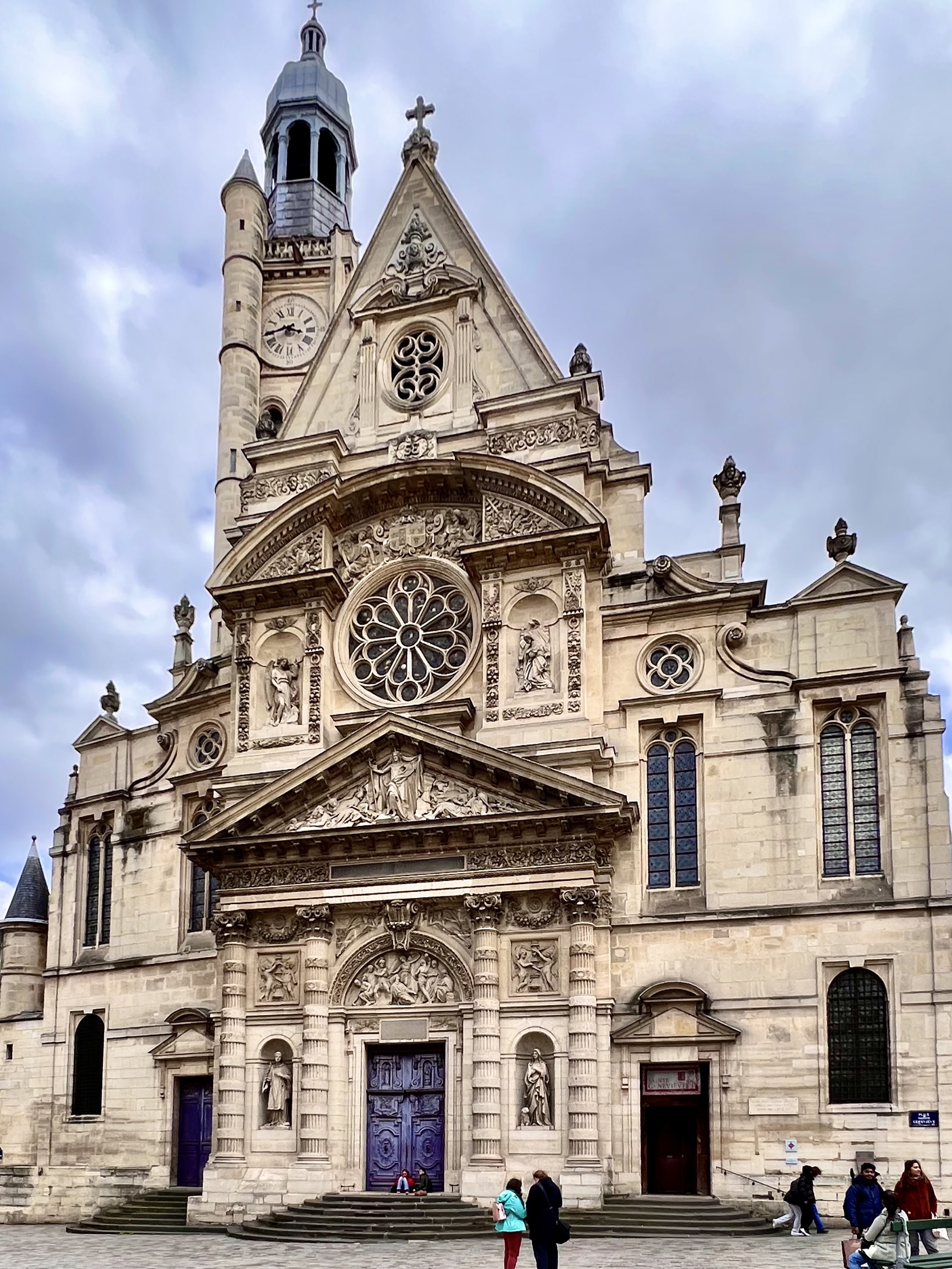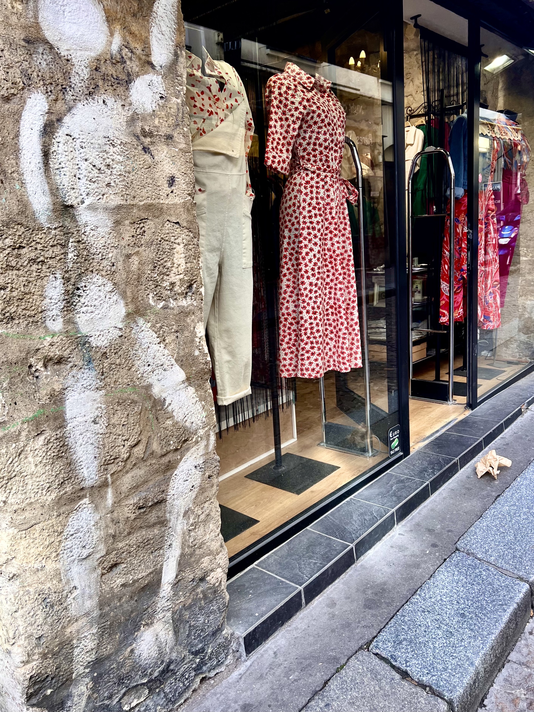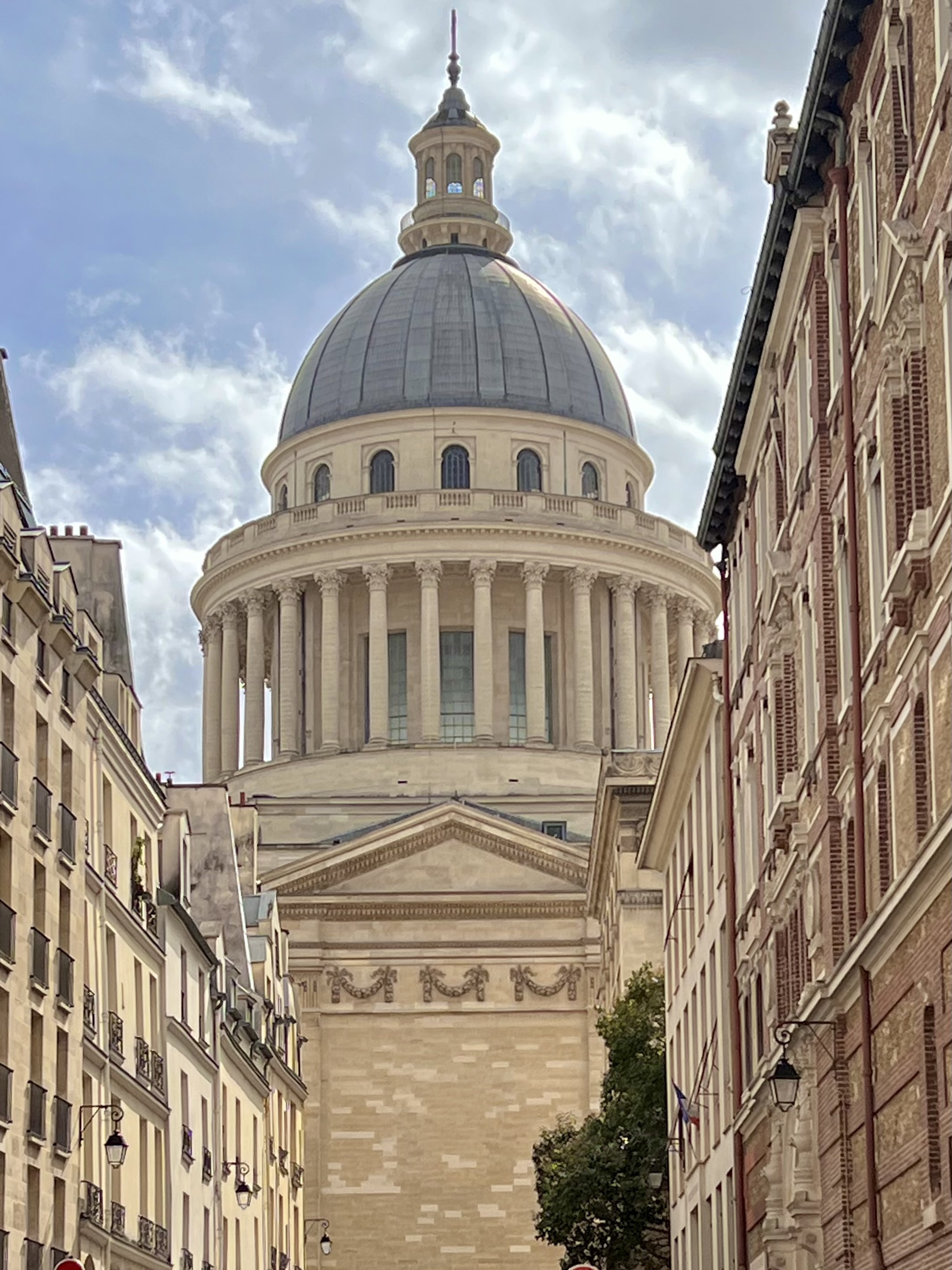 Today I took the metro to the Pantheon a huge building on the left bank, originally intended by Louis the XV to be dedicated to Saint Genevieve the patron saint of Paris but the French Revolution intervened and it ended up being a grand mausoleum where famous people, beginning with Victor Hugo were buried. It is designed in the grand classical style which is found all over Paris. I went there not to see the Pantheon but to wander in the streets behind the Pantheon. This is a little of what I saw. One of these days I‘ll do a post just on the chairs of Paris. Part of the charm of Paris is the striking chairs at every outdoor cafe, all of them beautiful.