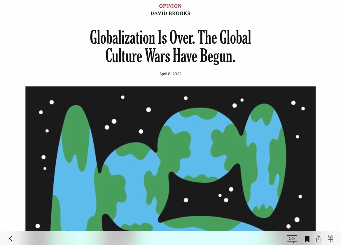 A week or so ago David Brooks wrote an article titled “Globalization Is Over. The Global Culture Wars Have Begun“. This really interests me because what I was writing about yesterday was the way that technology makes living in places around the world so easy for a man in his 85th year. And here was David Brooks telling me that this feeling of globalization was coming to an end and instead of soaking in other cultures I had better get ready for a culture war. But I was already becoming uneasy. This week far right Marine Le Pen, an admirer of Putin, is threatening in the French election. I am still living within the threat of Trumpism in the United States. On a wonderful visit to Istanbul three years ago Erdogan was in the process of being reelected. And Narendra Modi is becoming increasingly dictatorial with his BJP Hindu nationalism in India where I love to visit. Where can I travel that isn‘t threatened by nationalism and populism? I am even threatened at home in Swannanoa.