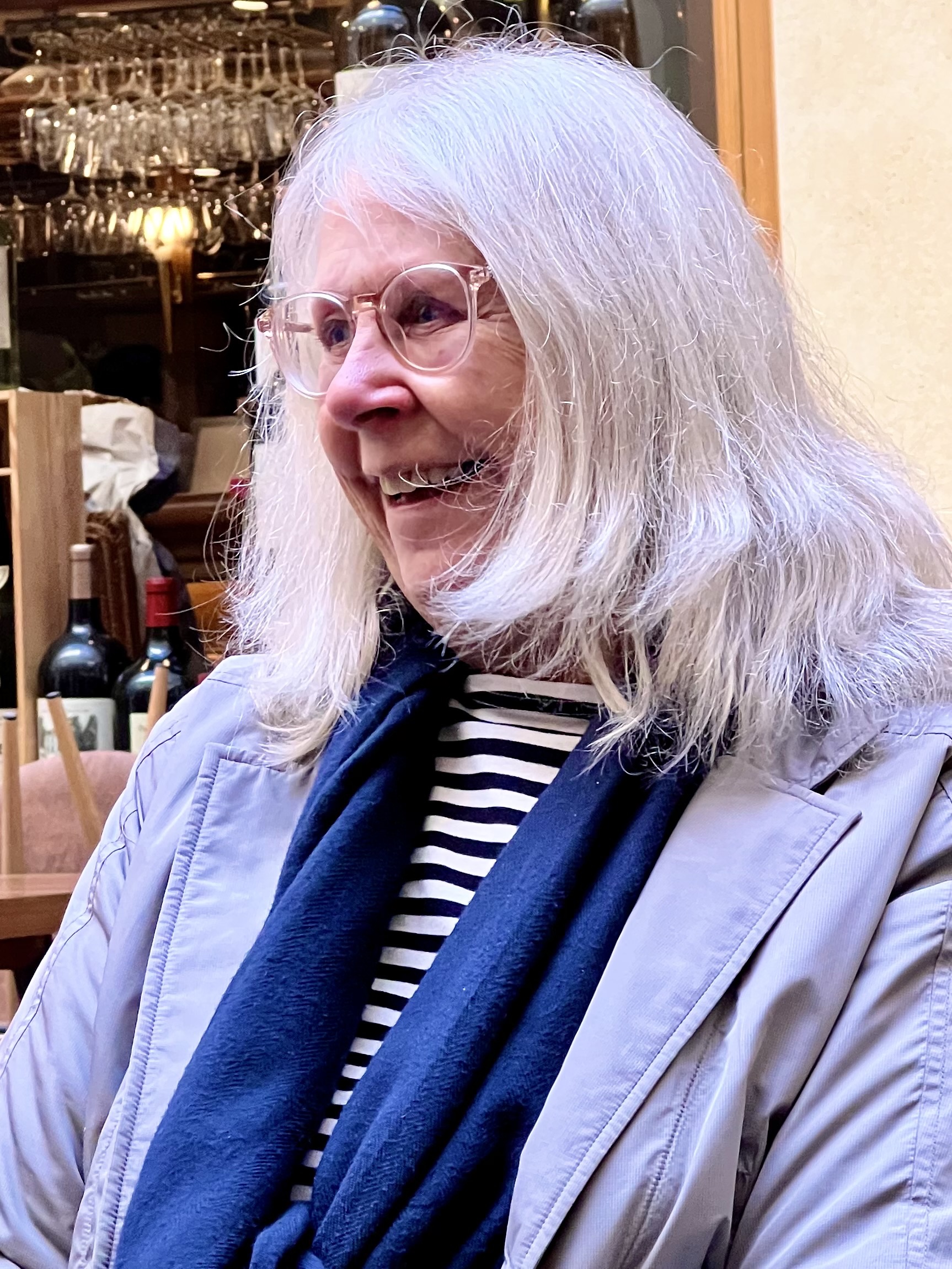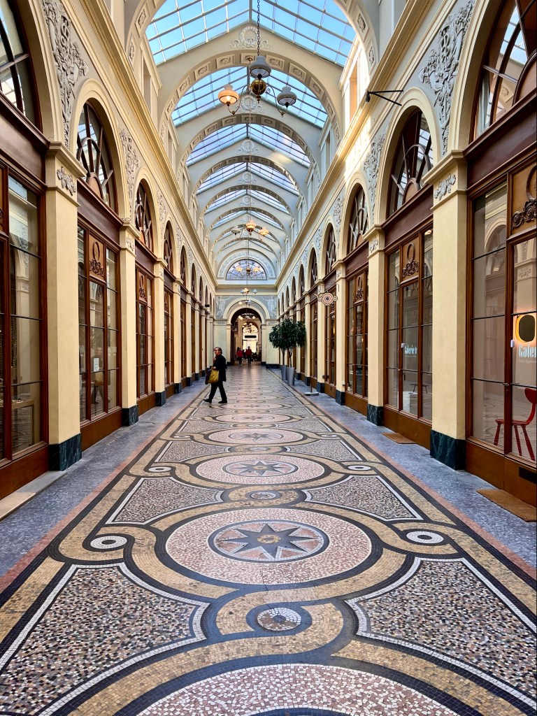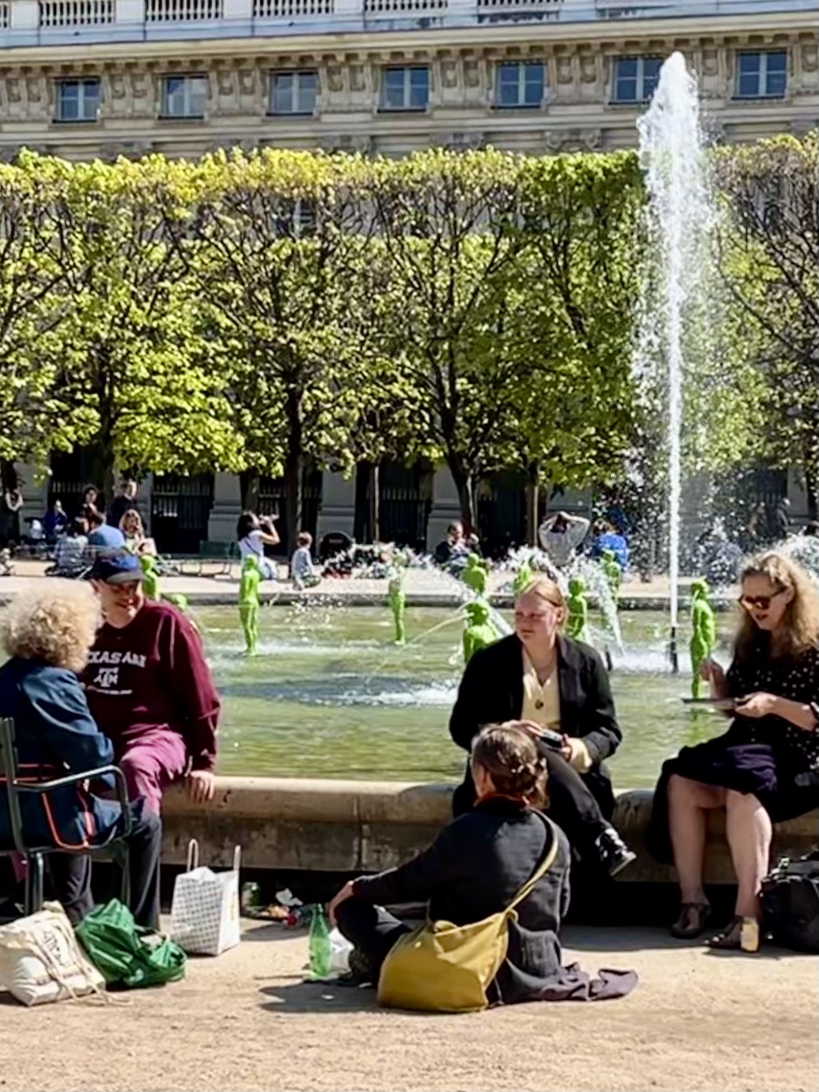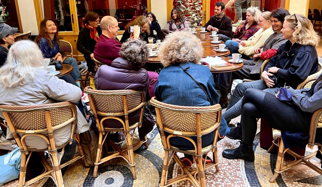 The salon group of English speaking mostly expatriate Americans met at Bistro Vivienne in the very upscale glass roofed shopping arcade near the Palais Royale garden where we later had a picnic lunch. The gathering of about a dozen people was led by very vivacious Becky Dolinsky who lives with her husband and two teenage sons in Paris. It was a very lively group of artists of all kinds. After the picnic we went to Becky’s studio and she showed us her paintings.