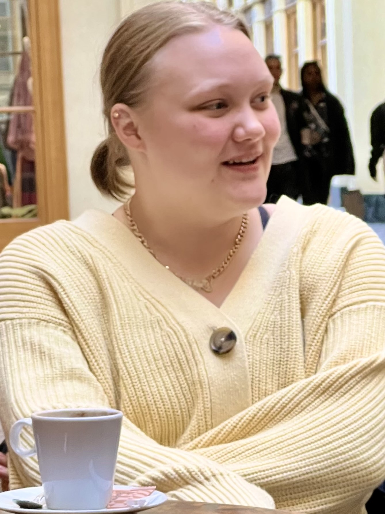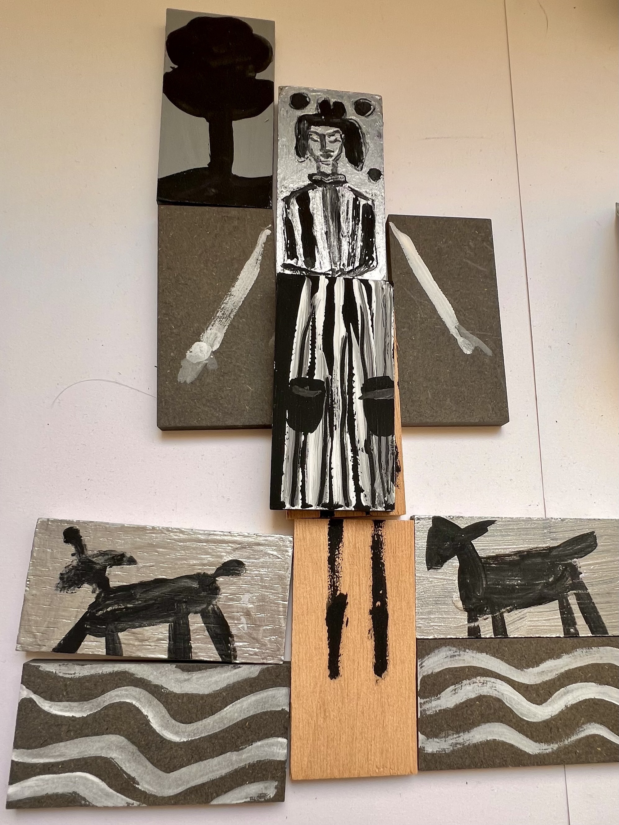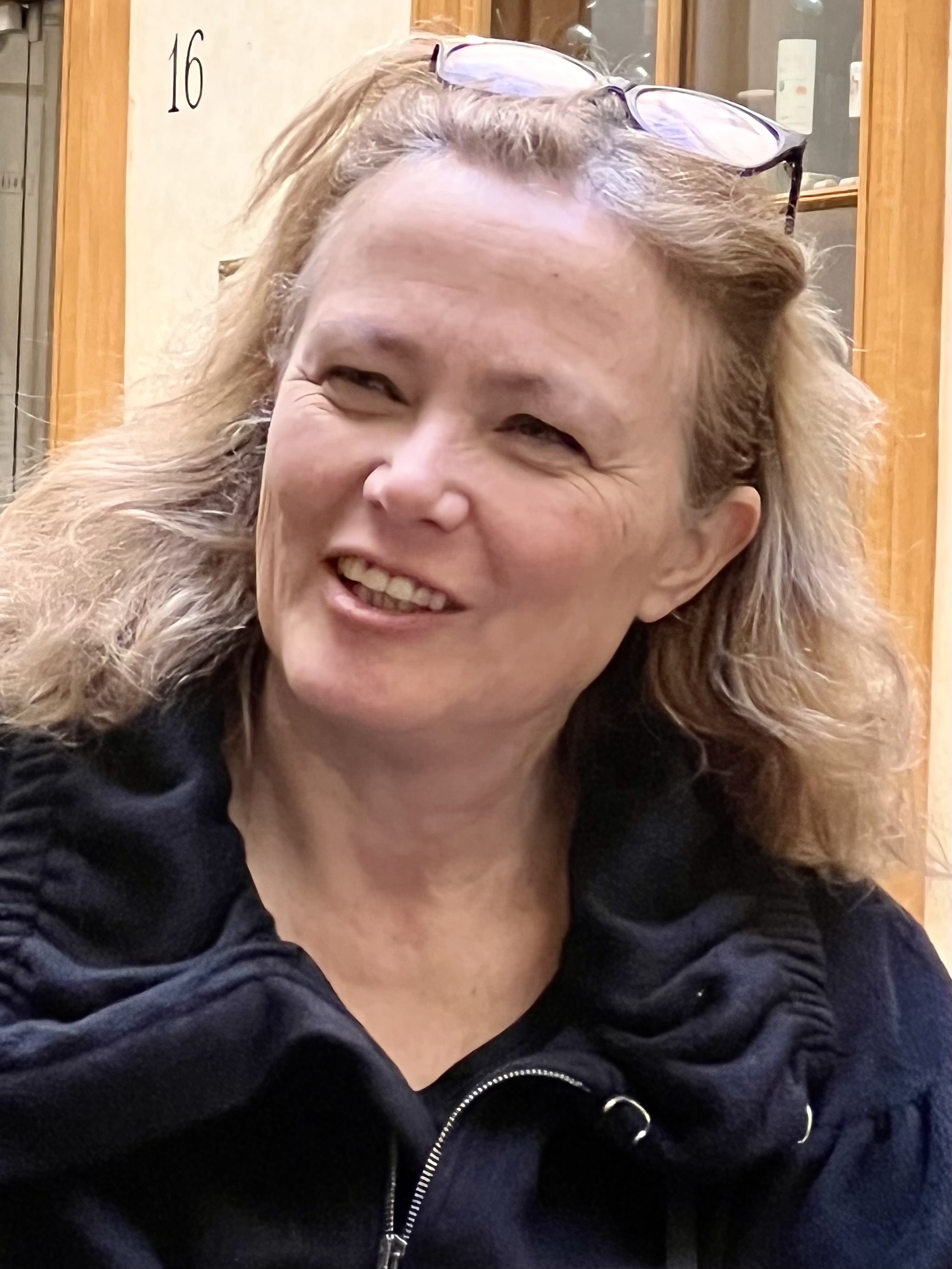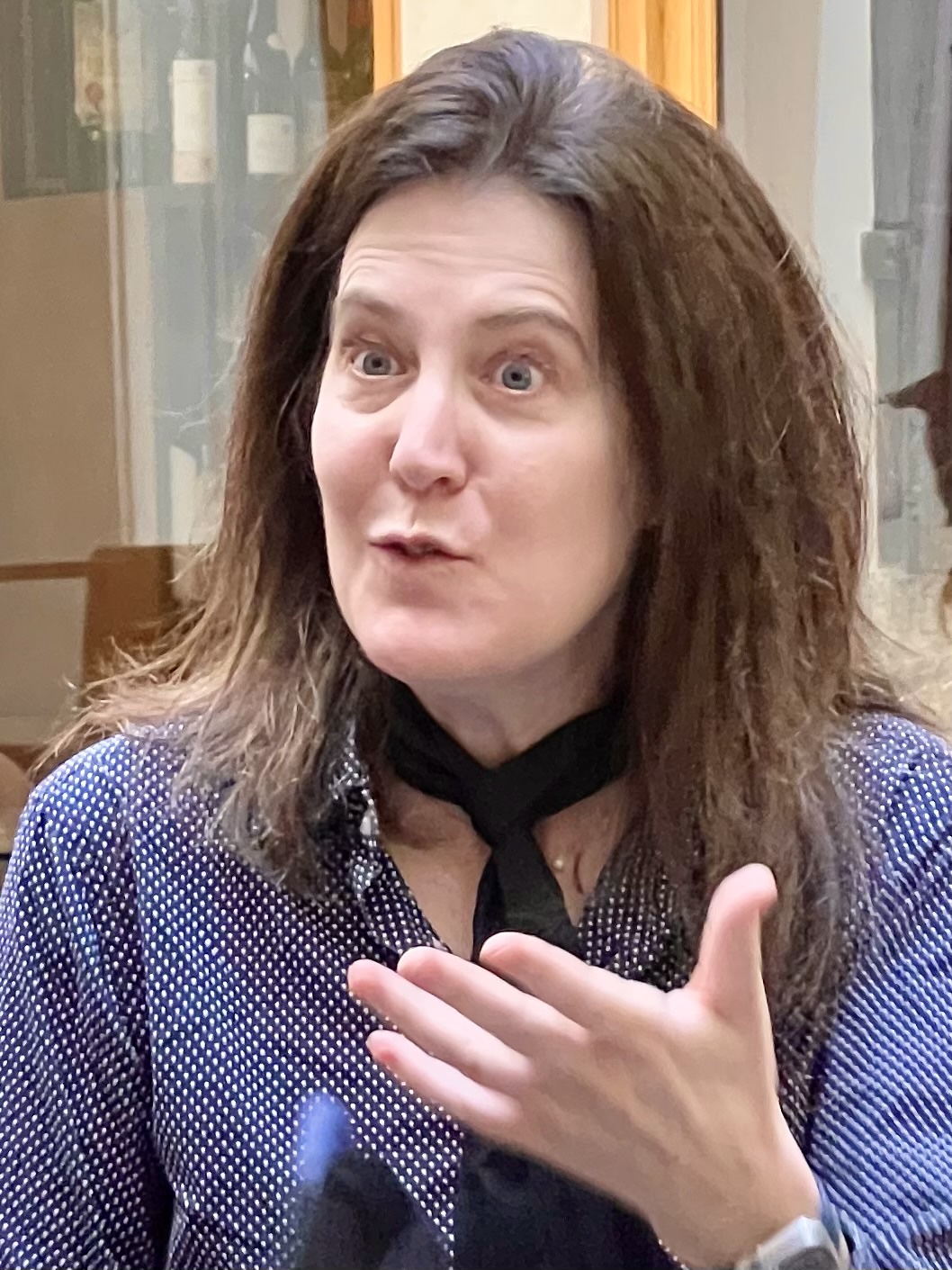 The salon group of English speaking mostly expatriate Americans met at Bistro Vivienne in the very upscale glass roofed shopping arcade near the Palais Royale garden where we later had a picnic lunch. The gathering of about a dozen people was led by very vivacious Becky Dolinsky who lives with her husband and two teenage sons in Paris. It was a very lively group of artists of all kinds. After the picnic we went to Becky’s studio and she showed us her paintings.
