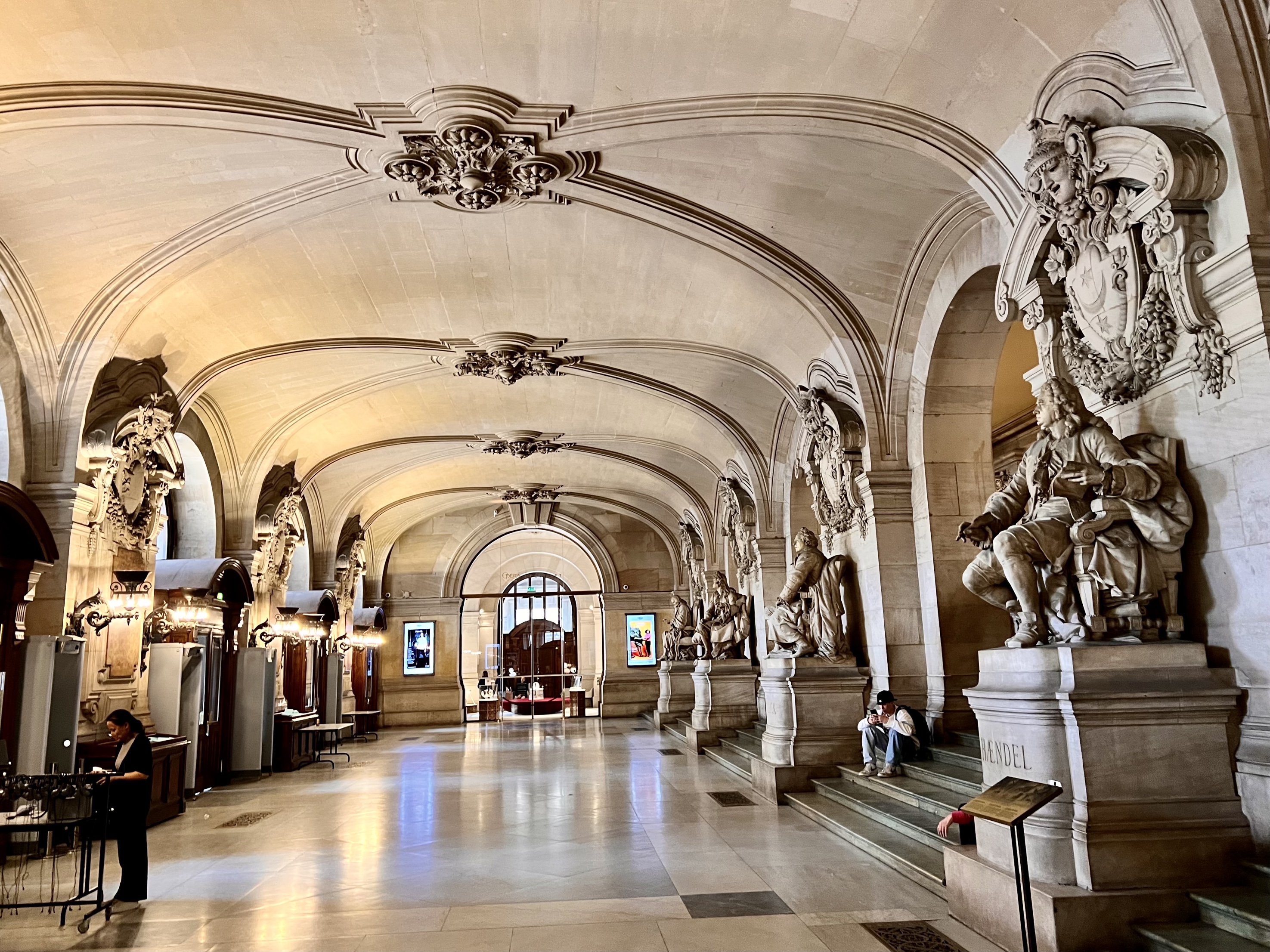So we walked out and explored the Paris Opera area which turned out to be another enormous, ornate church, this time dedicated to music, ballet, opera and poetry with a ring of nude women holding ornate lighting.