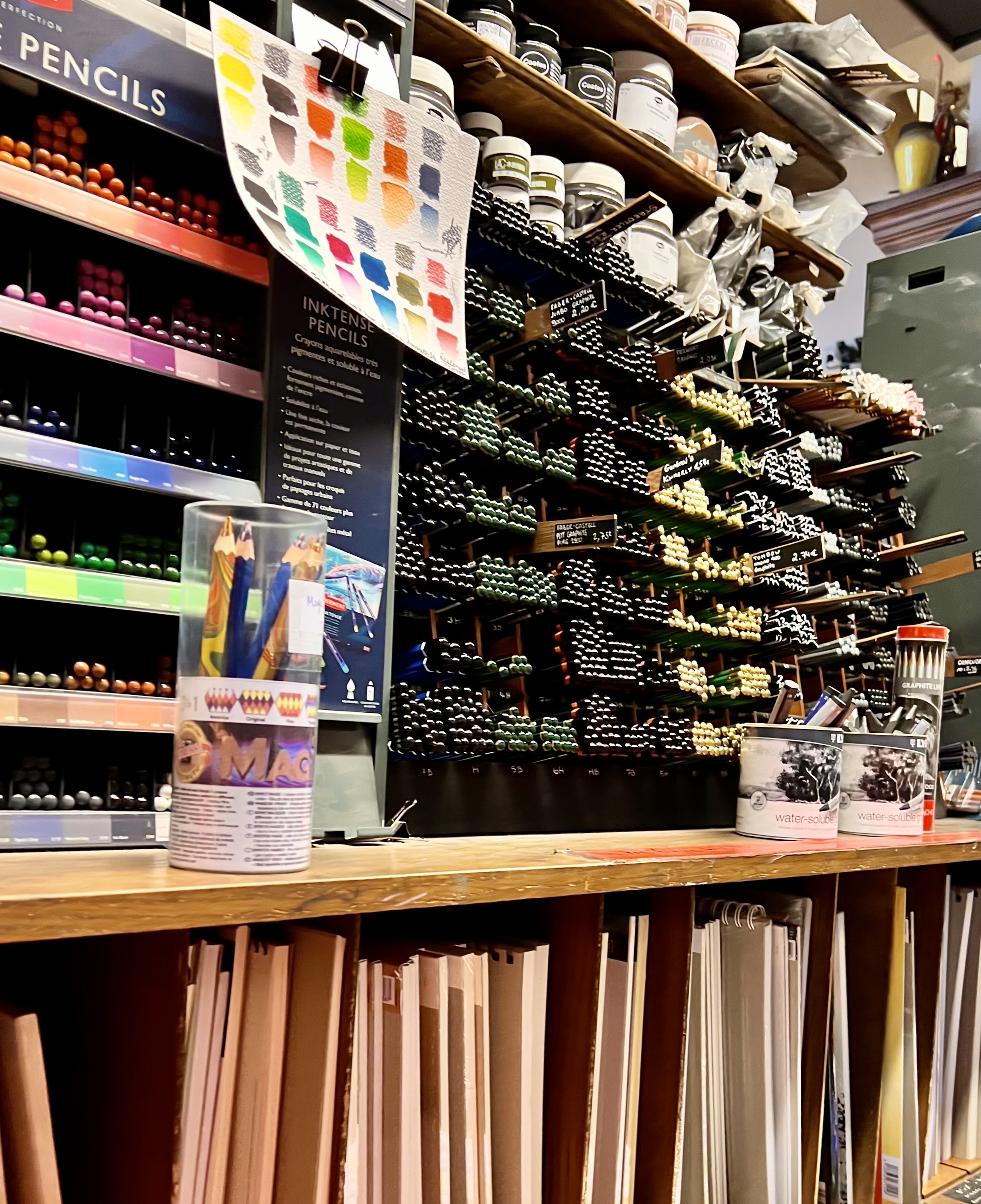 We walked and then took the bus across Paris to the huge park and botanical garden, Jardin des Plantes, in the center of Paris where we walked and walked again. The park was full of people with children. There was a playground and a zoo and acres of wooded walks and four large greenhouses where we saw plants from around the world. In the afternoon we visited the famous Sennelier art store near the Seine and then called it a day. I had walked five miles and was tuckered out.