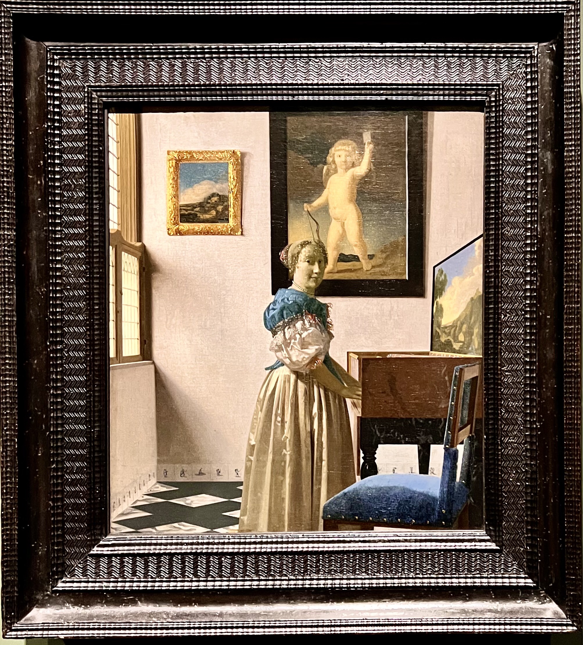 My question is whether there is a radical difference between seeing the actual painting of the young woman standing at a virginal and seeing a copy. It can be argued that the digital copy is of lower quality than the original, and when done with my iPhone it is. But I know that it is possible to make digital printed copies that look exactly like the original. I know that many artists are selling printed copies of their paintings, at a lower price, and that these copies look exactly like the original. So I don’t think it is the quality of the reproduction that sets the two apart. It must be something else.