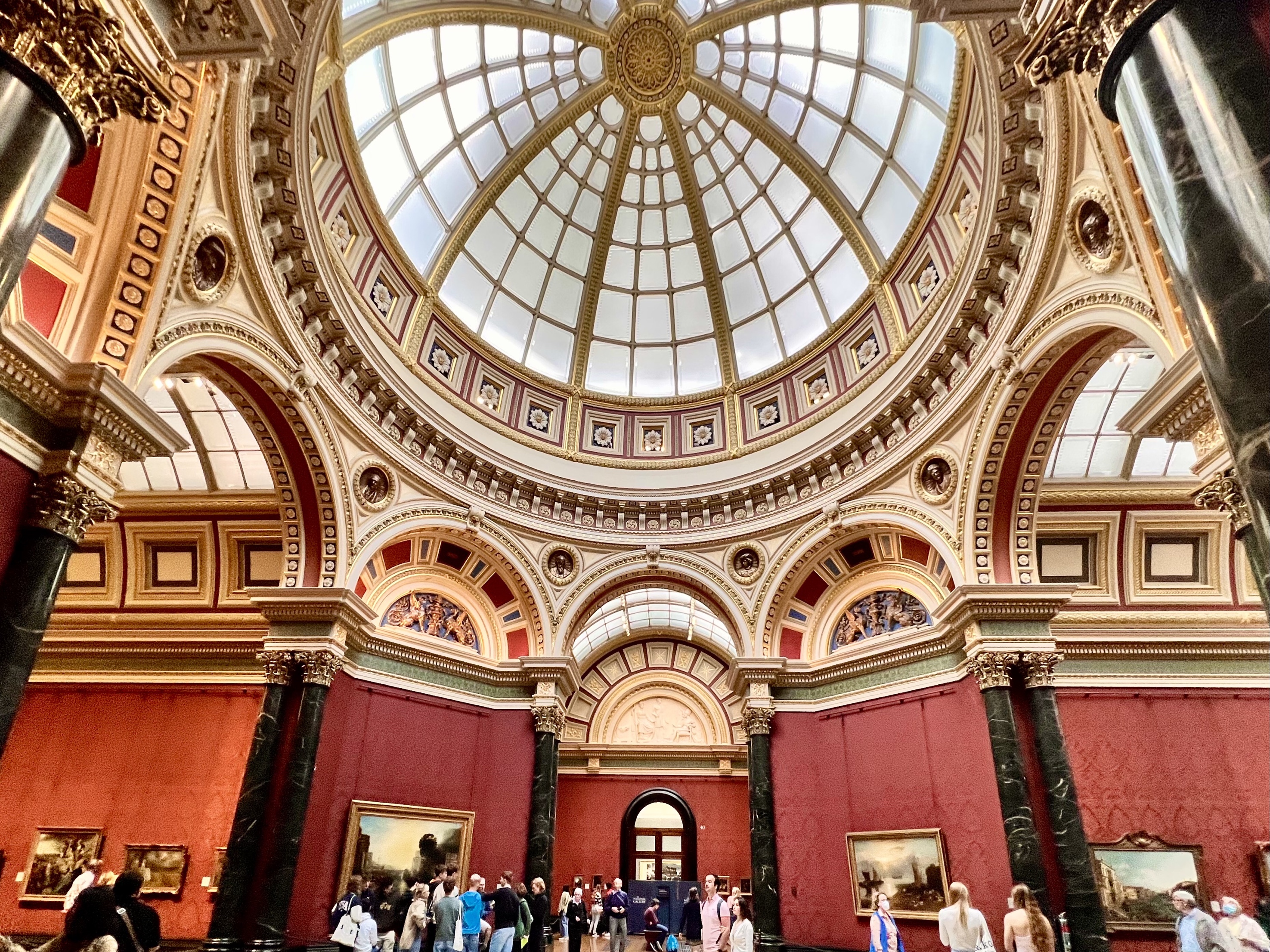 I took some photographs of the fountains of Trafalgar Square and then went into the huge ornate National Gallery. I skipped the Raphael exhibit that costs 24 pounds and, instead, got lost in the Renaissance section and did find some Vermeer and Rembrandt paintings, which I wanted to see and many others. I walked until my back was tired and I needed to rest, not nearly long enough to see very much of the museum, and that is why I want to go back.