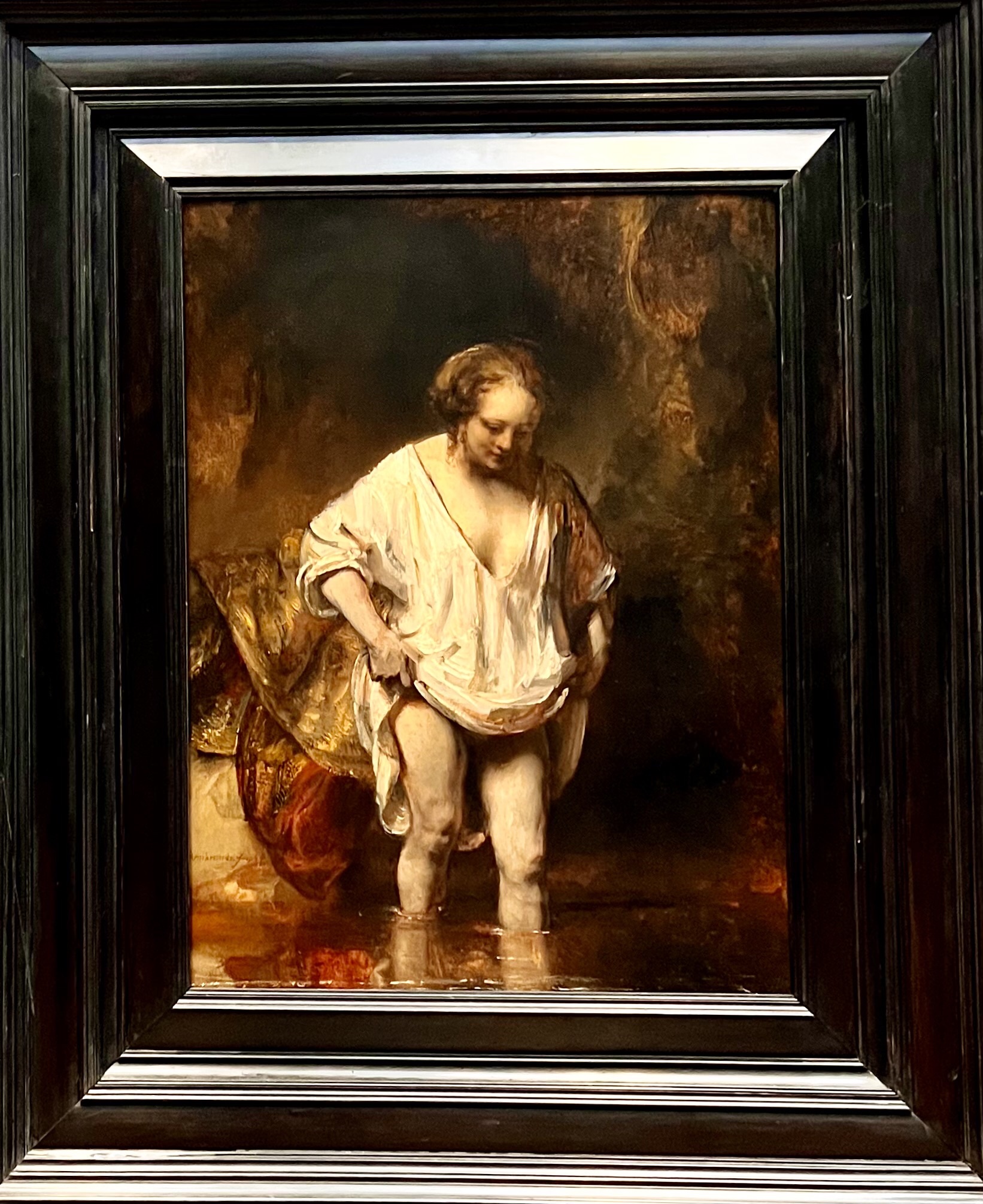 But I had a very odd sensation after seeing the first Vermeer, “A Young Woman standing at a Virginal, about 1670-2”. The odd sensation was that I had seen quality copies of this painting by Vermeer and many others again and again and been touched by them. But it was very odd, almost shocking, to see that there was an original, actual painting on the wall in the National Gallery.