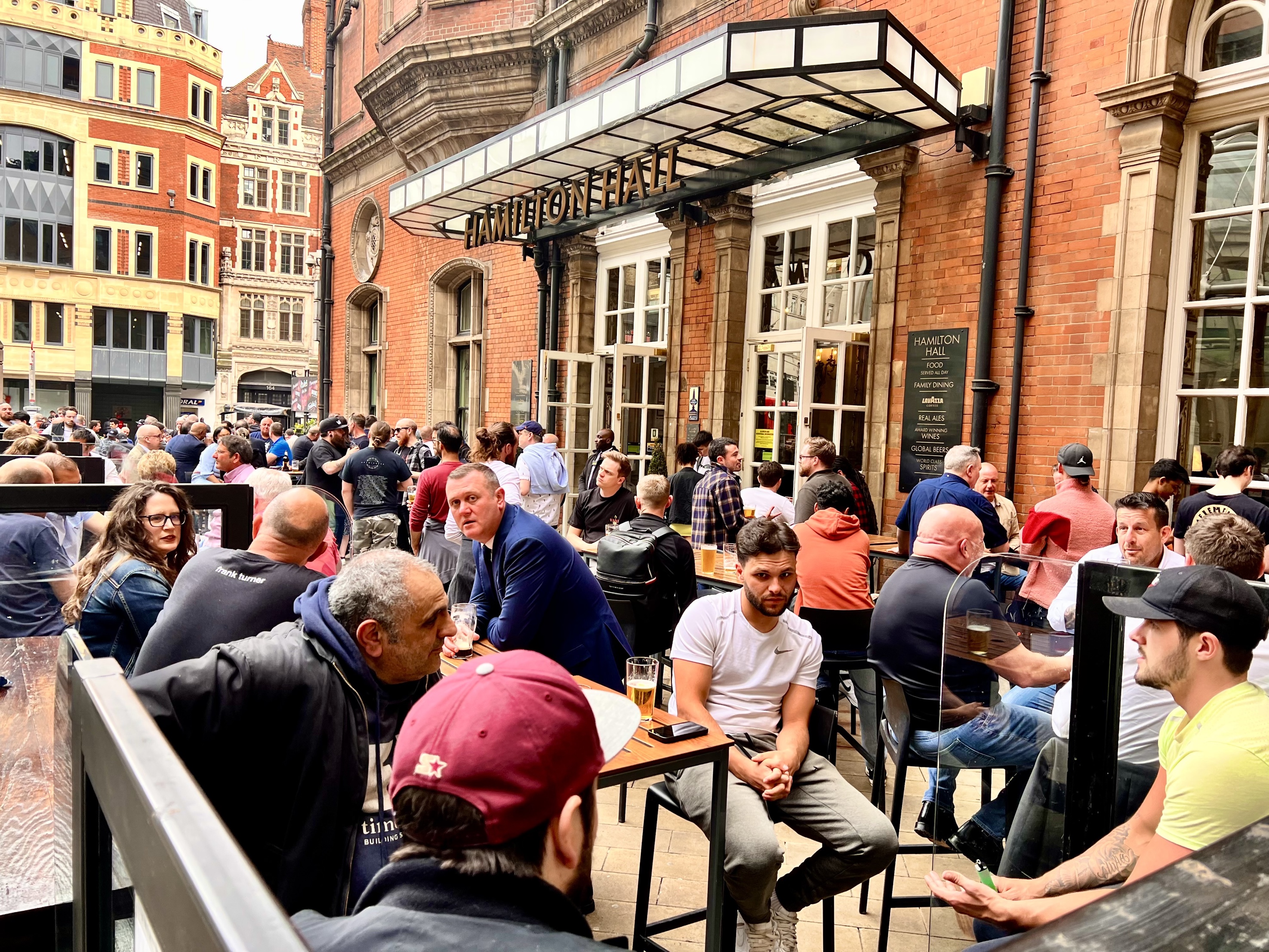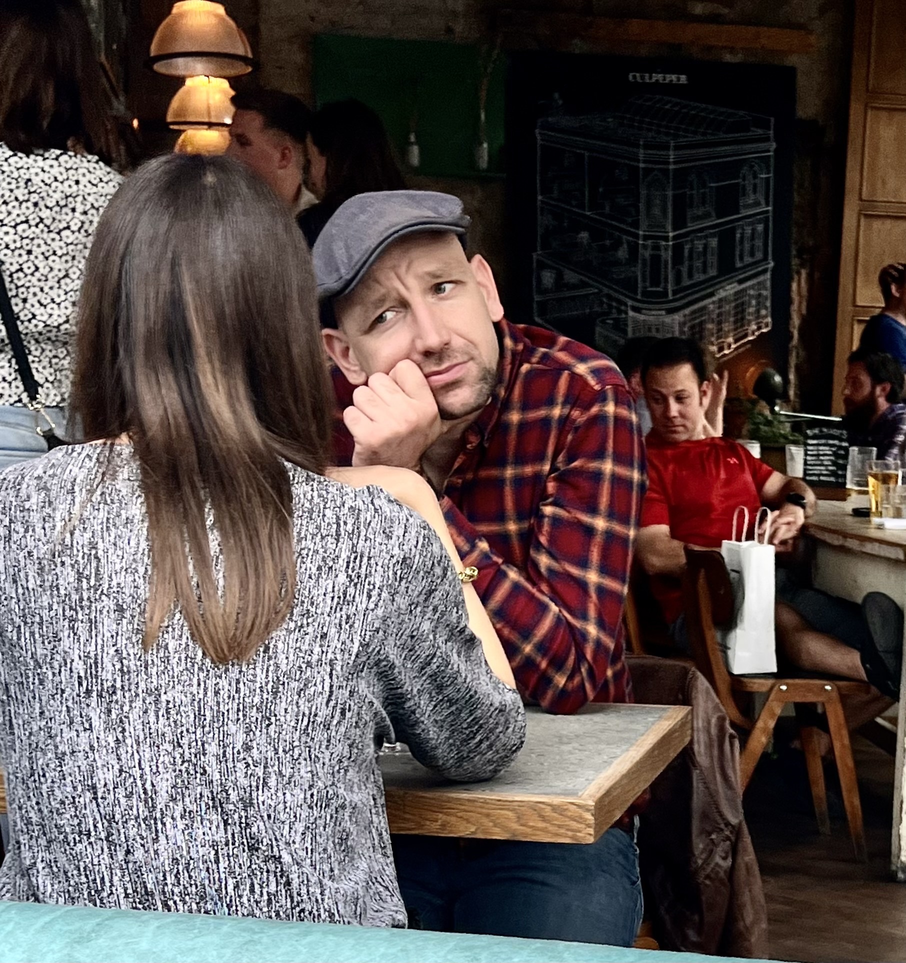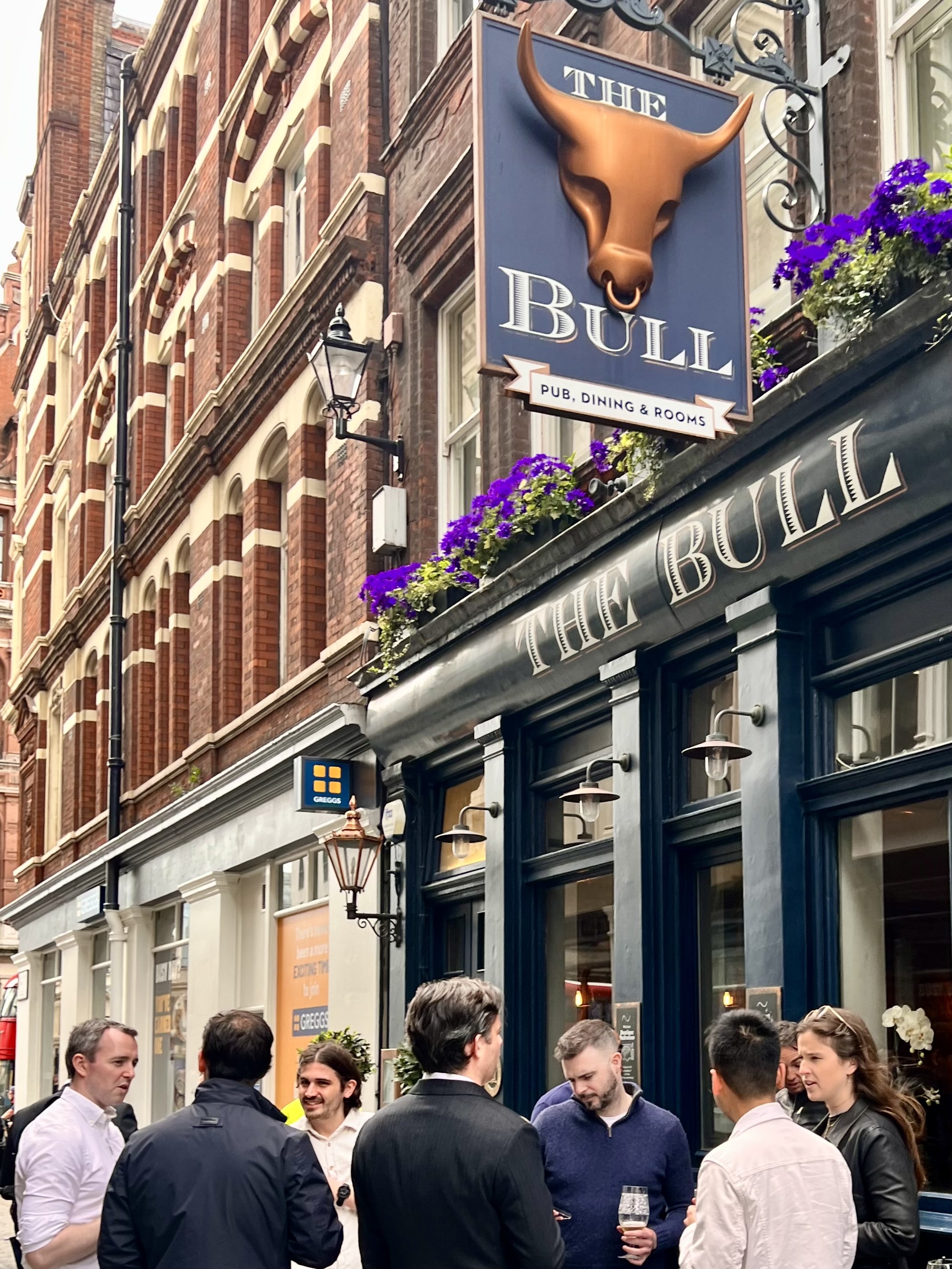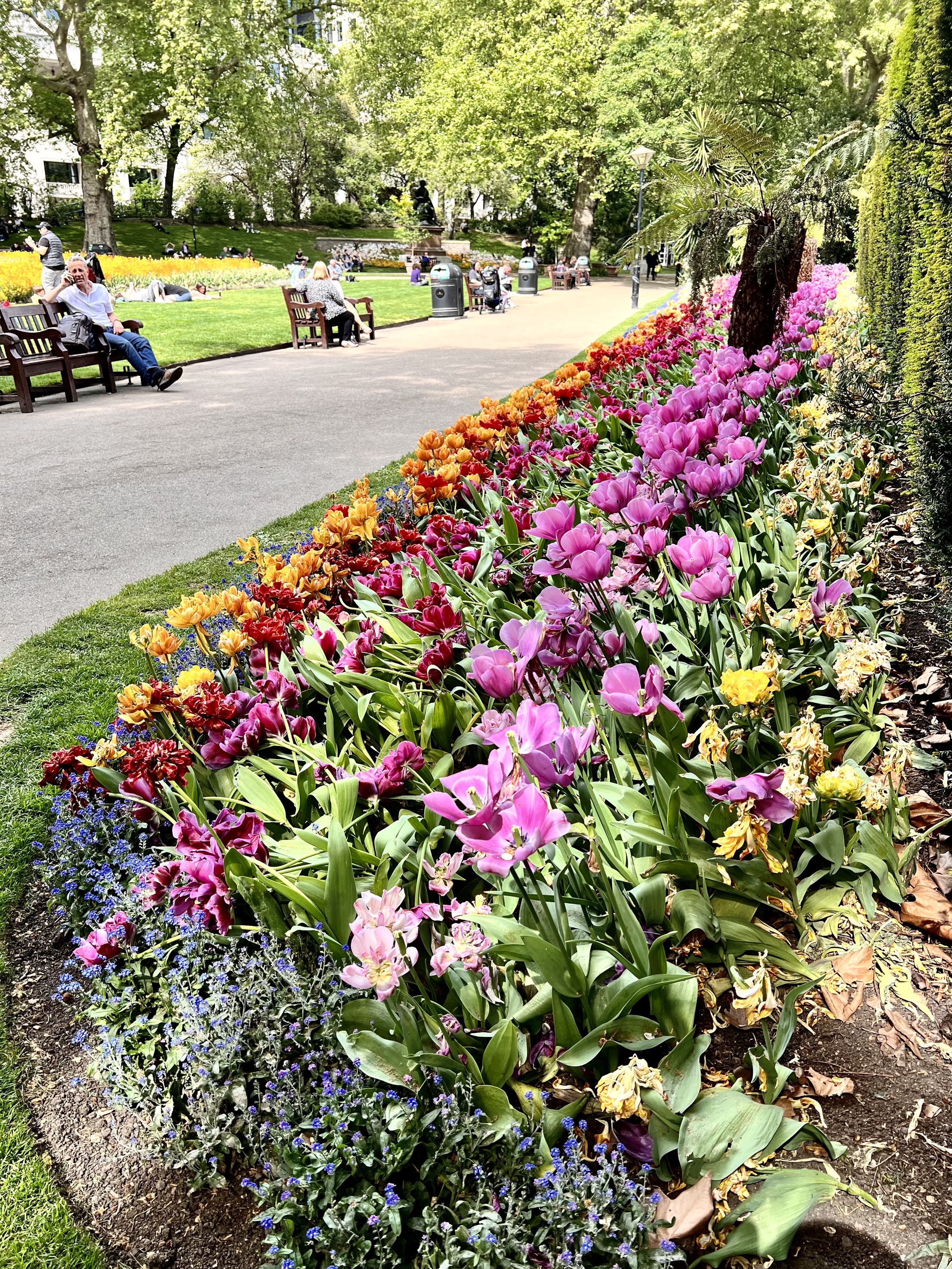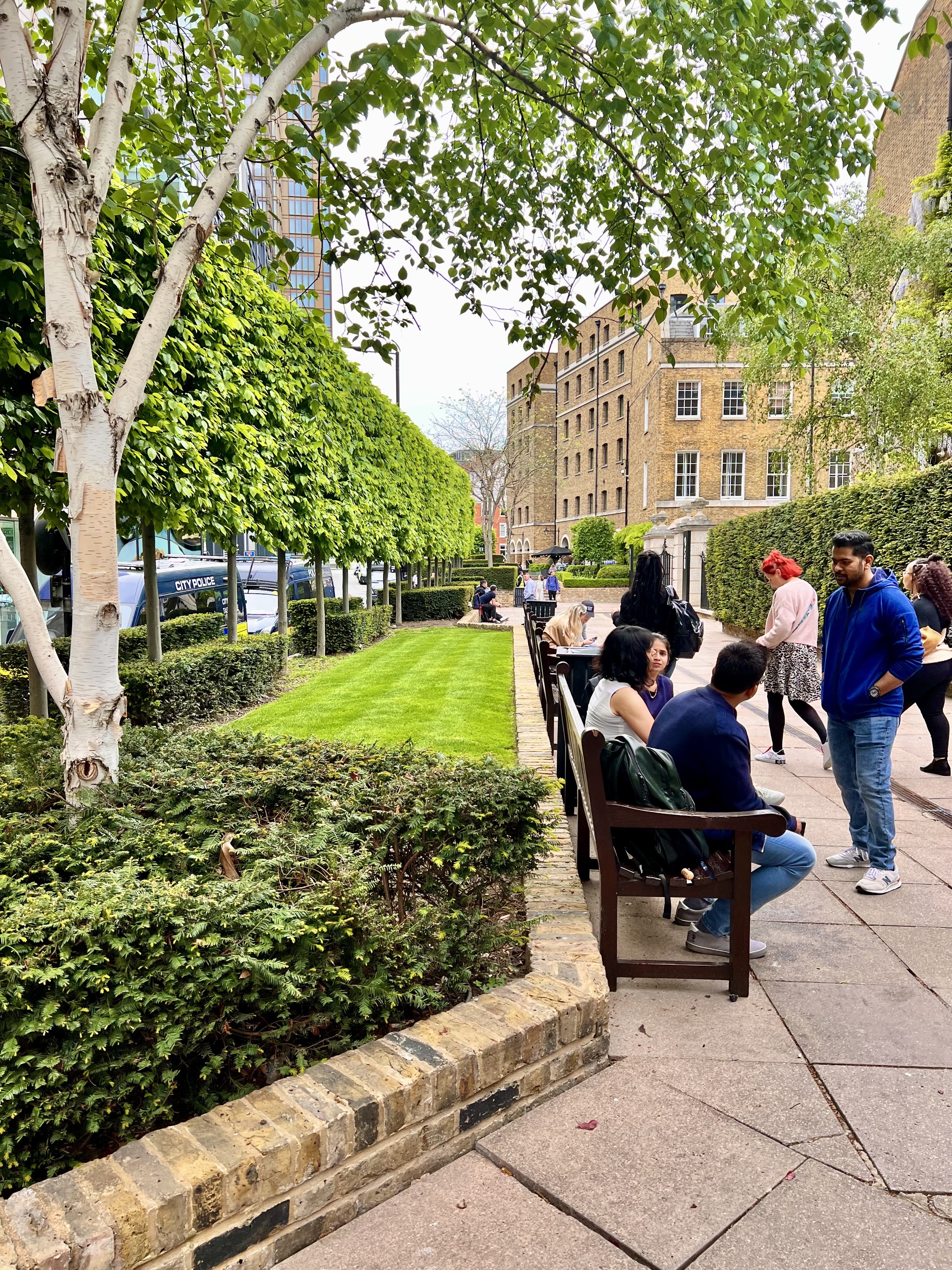 And then, hungry, I went in search both of Poppies Fish and Chips and Paris. I found Paris first when trying to find the Charing Cross Underground I happened on a beautiful park near the Thames and also discovered that there are walkways along the Thames which are comparable to the walk ways along the Seine. The Seine walkways are more open and closer to the river and more extensive, maybe because the Thames has tidal fluctuation and the Seine doesn’t. But the feeling of glorious old England being dwarfed by canyons of shiny glass skyscrapers continued. But amid the canyons, in the evening after work, the pubs were full of people having a drink and celebrating the end of the work week just as people spilled out into the streets of Montmartre in the evening with drinks in their hands.