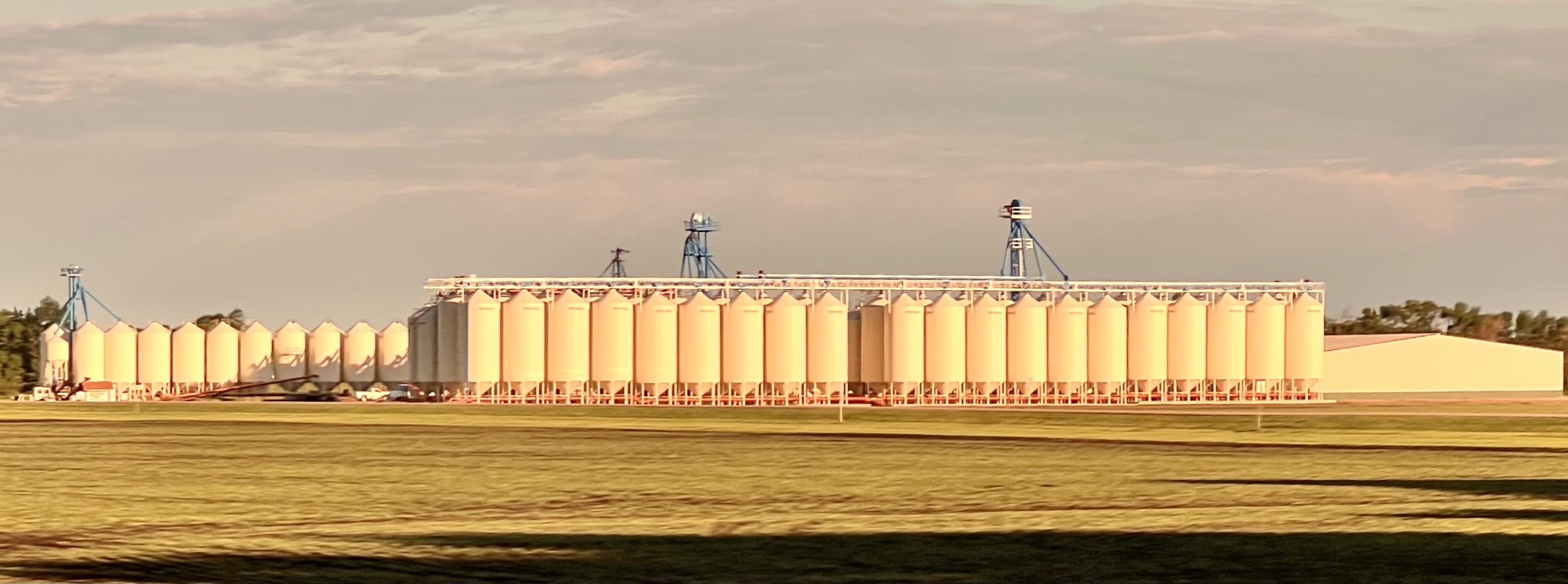 The farm houses, enclosed by a stand of shading trees to get them through the hot summer, are far apart and when there is a village it is just a few houses with a huge grain elevator. People must live in tight knit communities with the rest of the world seeming very far away. We just stopped at Grand Forks with nothing grand about it, only a few houses and a farm equipment sales shed.