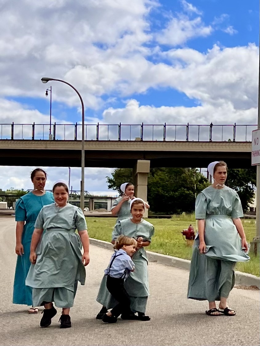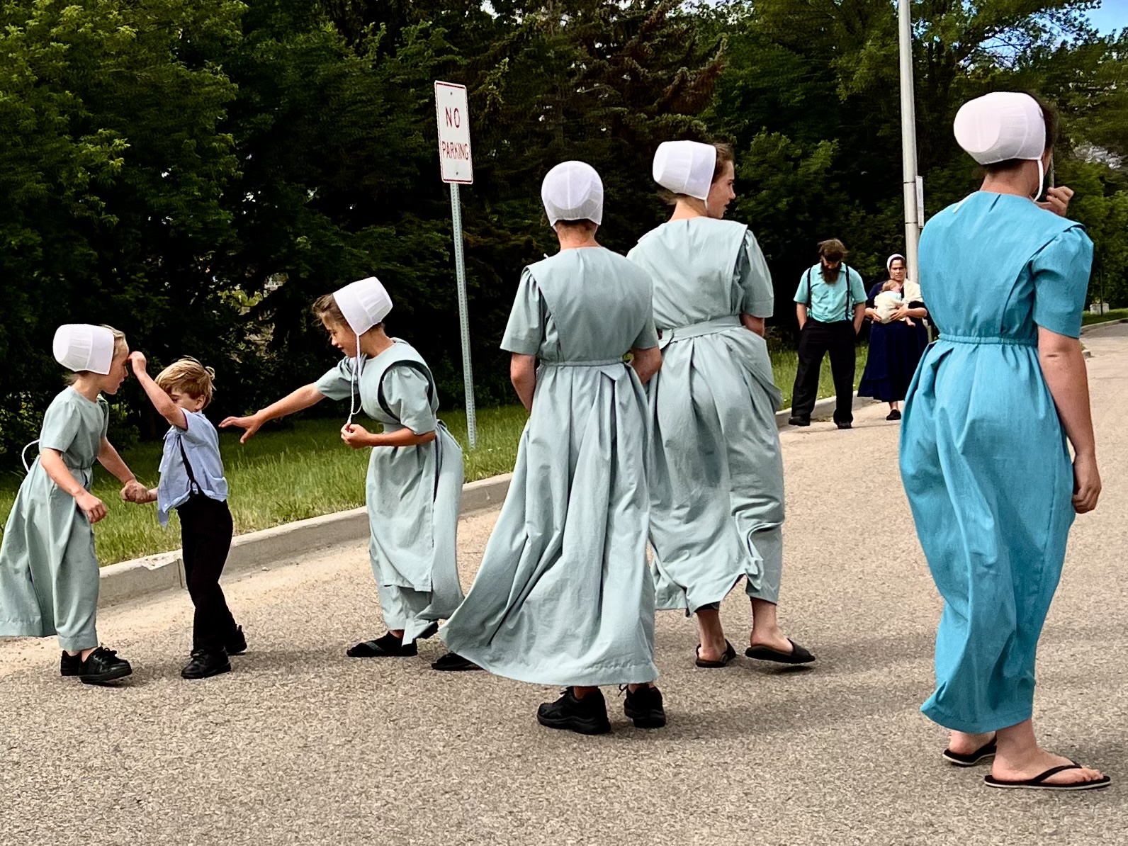 The Amish stand out with their distinctive costumes, the men with their beards, dark trousers with suspenders and blue shirts. The women have a distinctive cap and a pleated dress in pastel colors with a long skirt and long sleeves. They spoke among themselves in a dialect that I guess is called Amish. It sounds a little like German but isn’t German. They of course all speak colloquial American English.