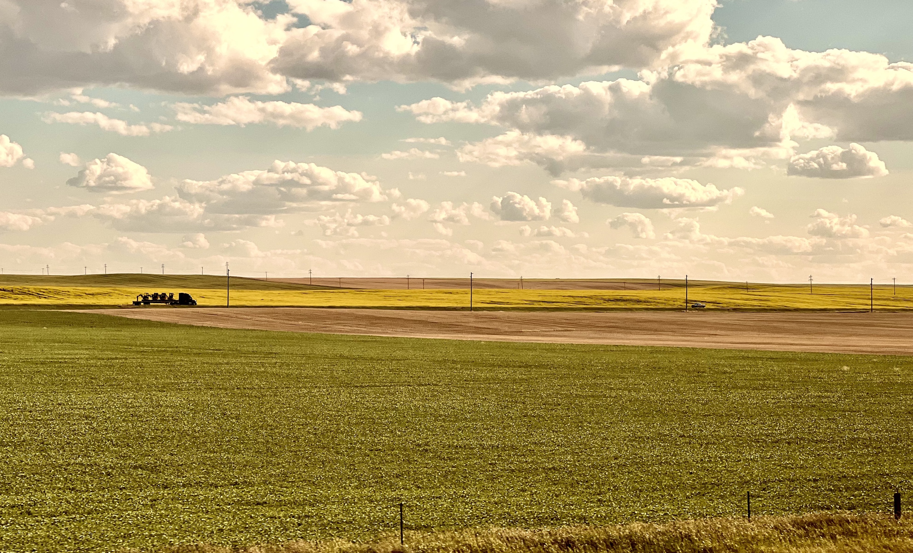 And then came Montana, almost the same but a little less flat, an undulating flatness without hills but with gulches and the same enormous fields but on gently rolling land.