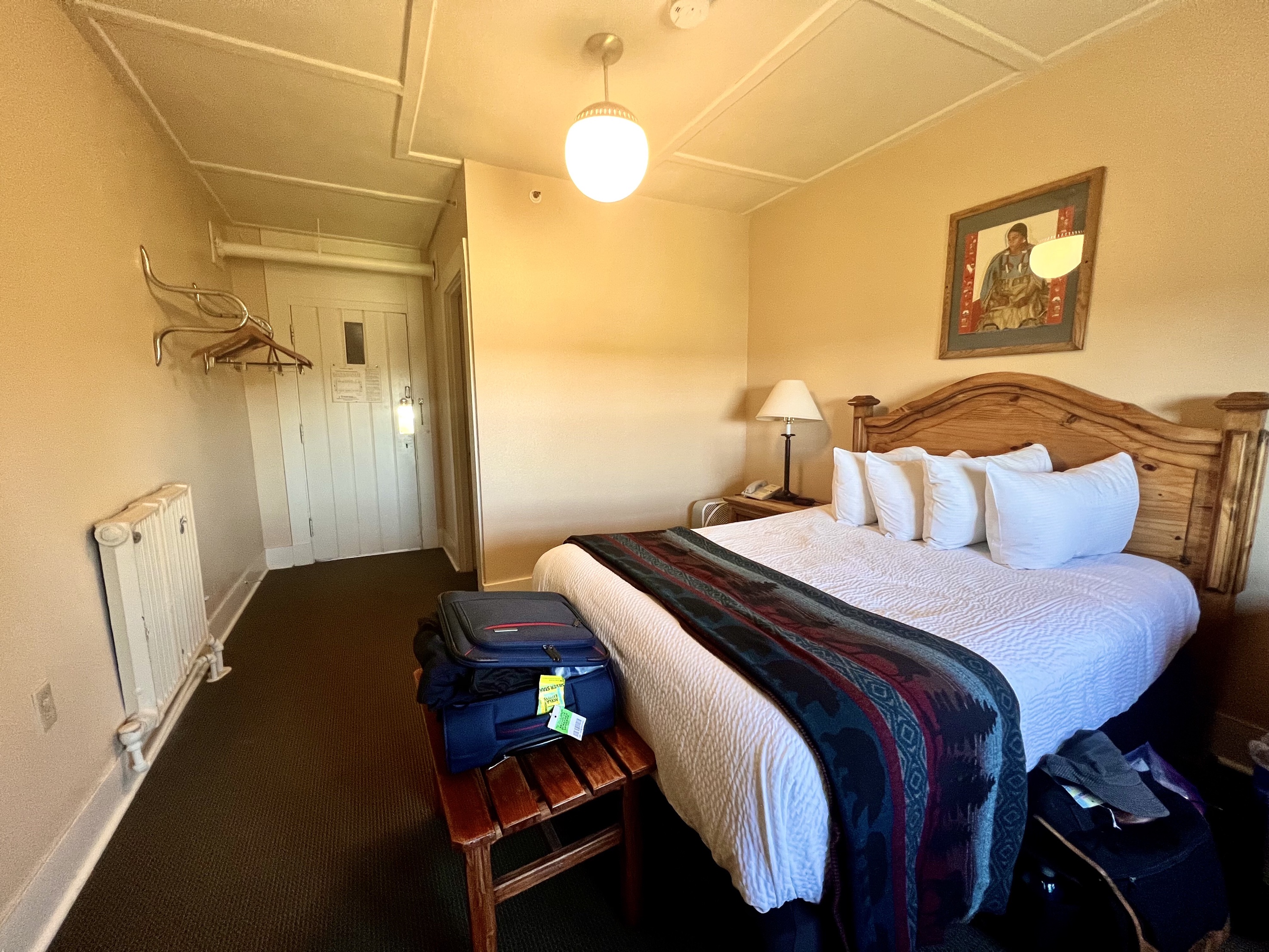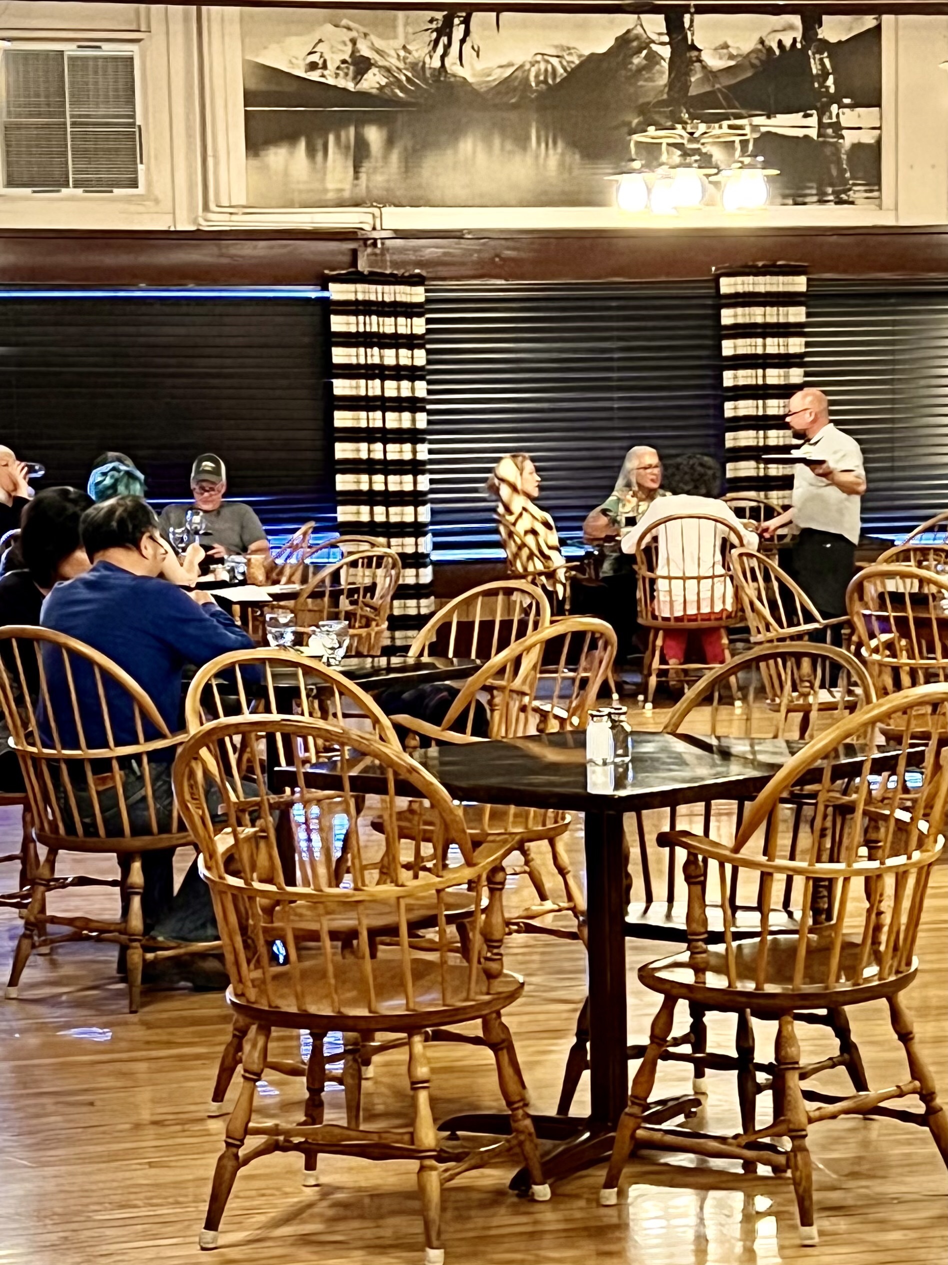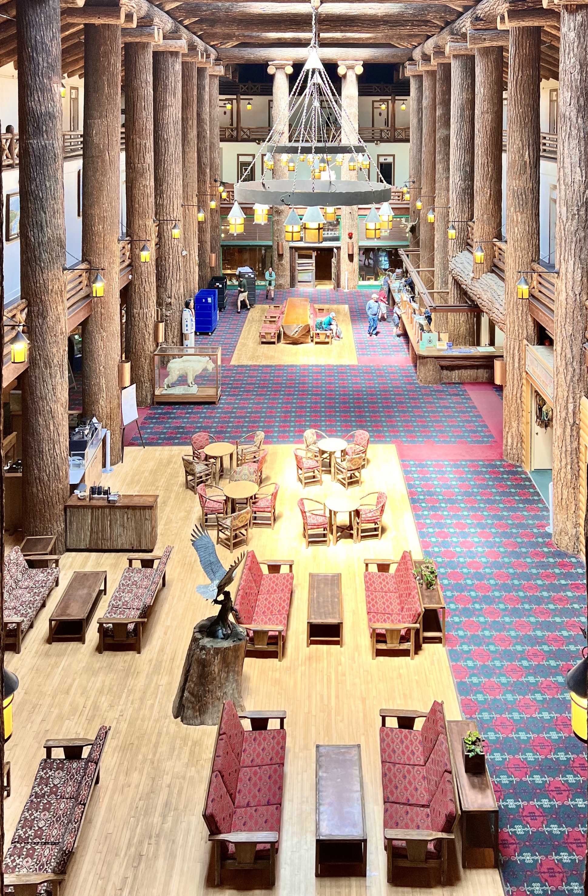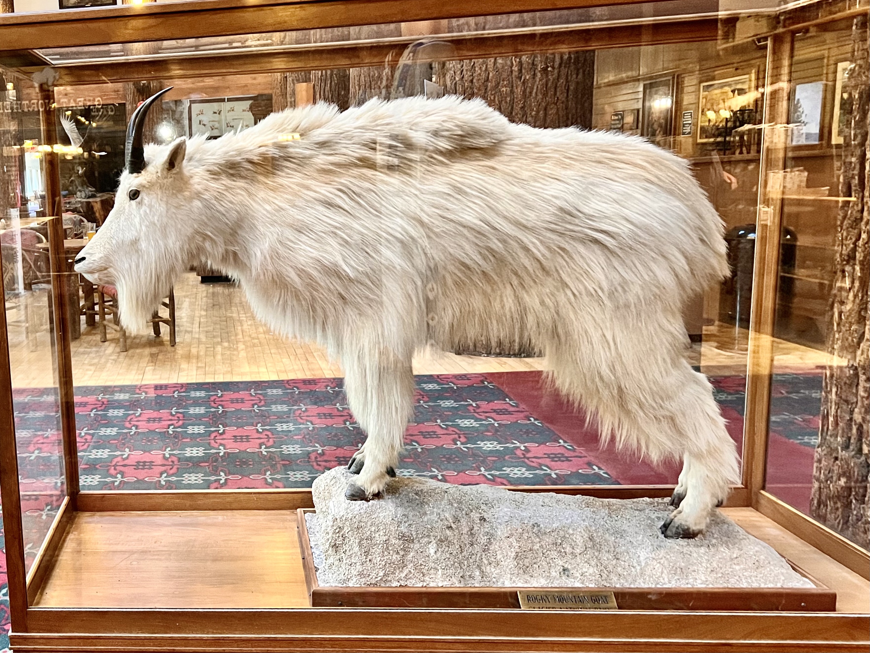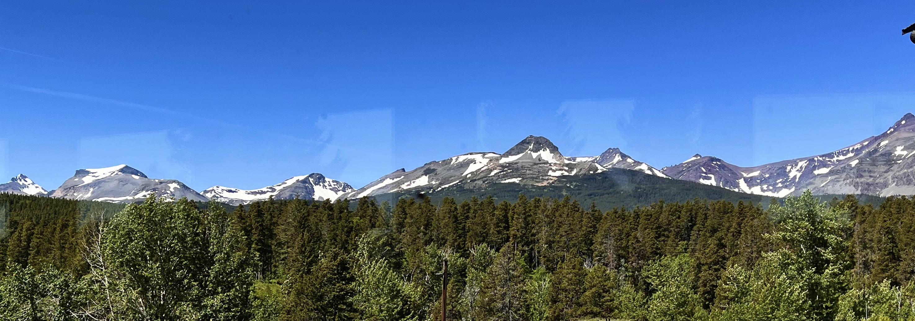 Talking about loops of time, this all happened over millions and millions of years until the great explosion 65 million years ago that wiped out all of these dinosaurs and opened the way for bigger mammals like me. All of this happened over eons and eons of time, of the gradual mutation after mutation of evolution with many more dead ends than successful survivals. This is a loop so large that it makes my 85 years on earth just the blink of an eye. But as I’ve sat here today looking out at this range of mountains in a lodge that was built over a hundred years ago to give a destination for railway visitors to visit Glacier National Park I am transported in space and time. The train station is just in front of the Lodge which now has the charm of being a very old heritage hotel which takes us into the past. The water pipes are creaky and the Wifi doesn’t work and my cavernous room was chilly last night.