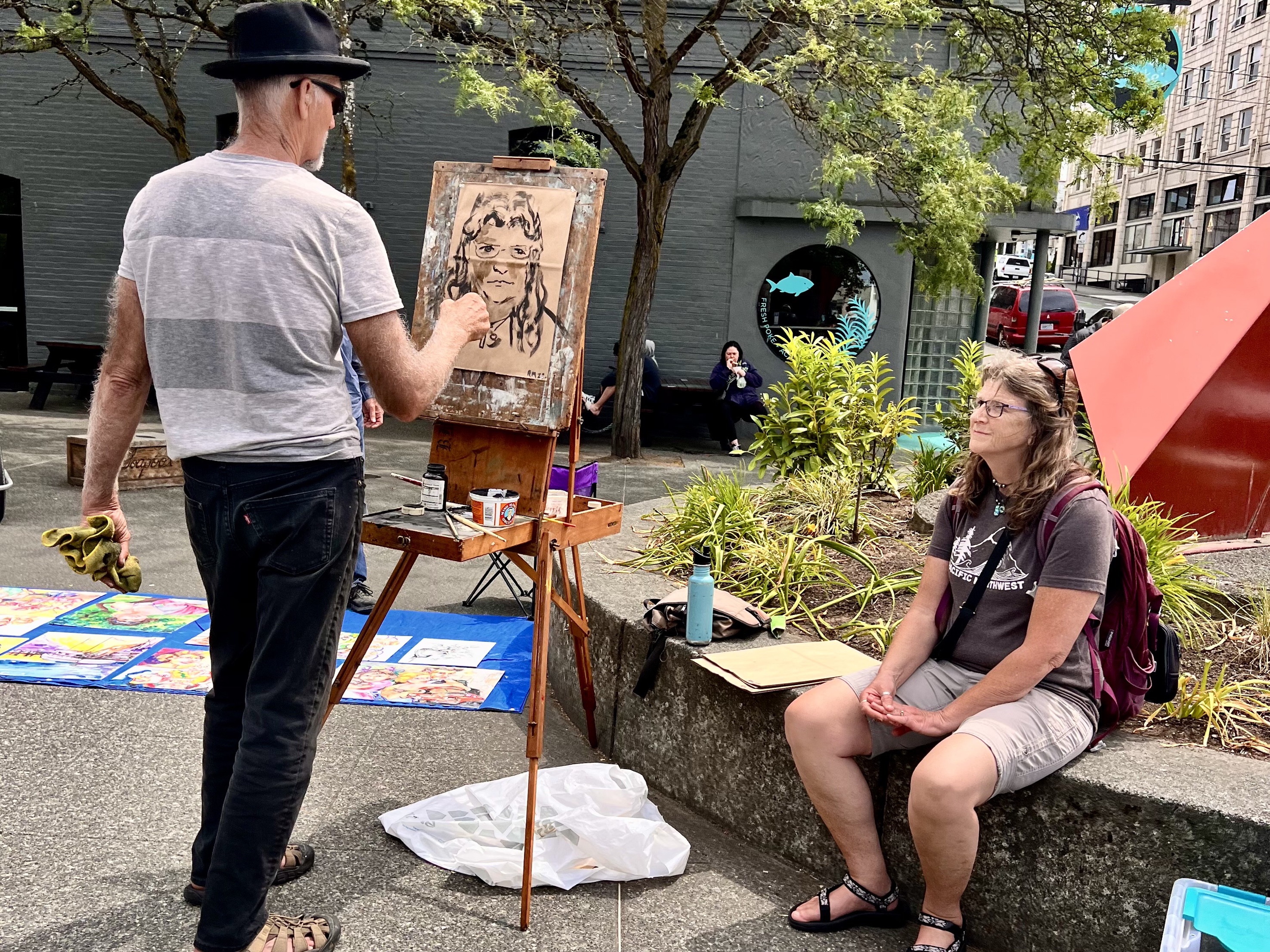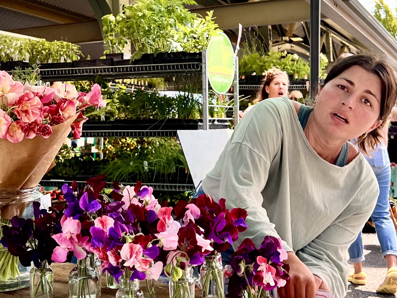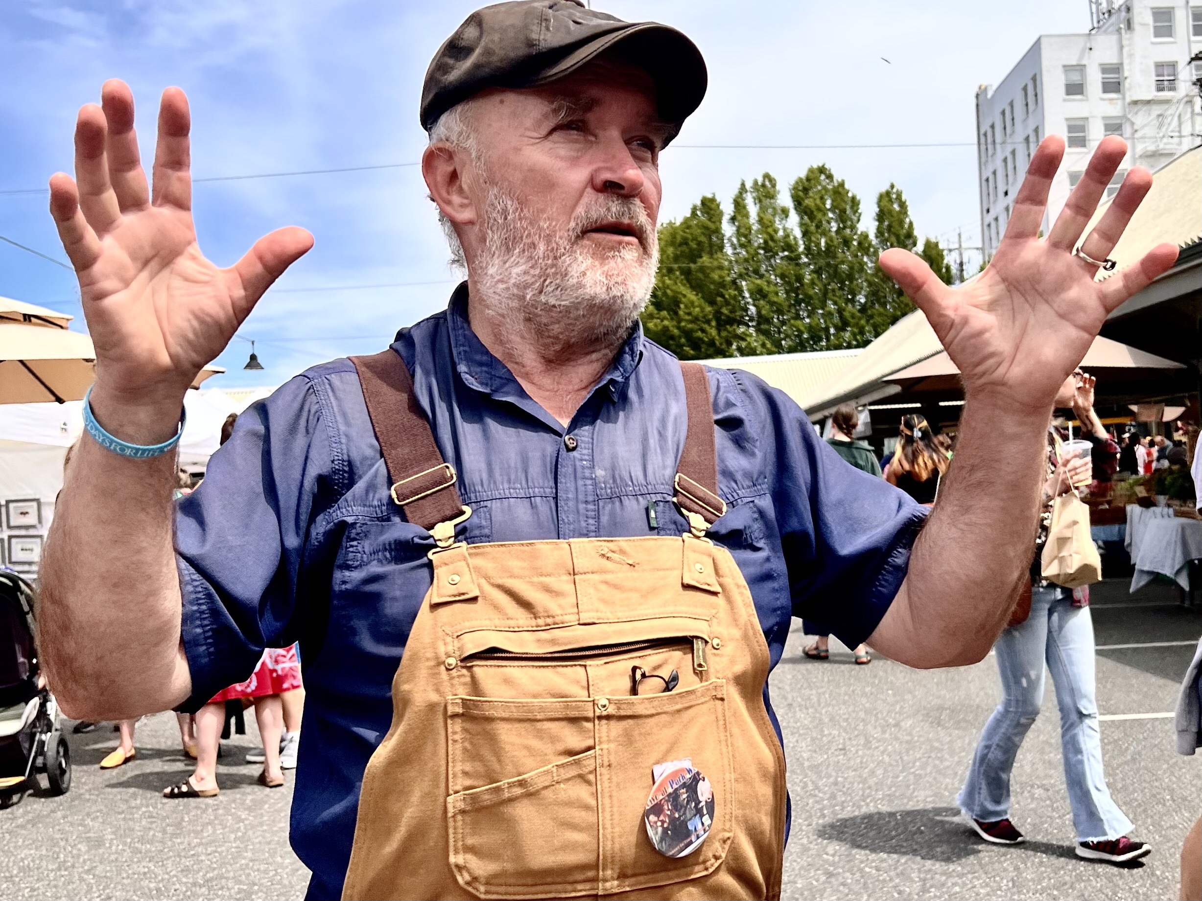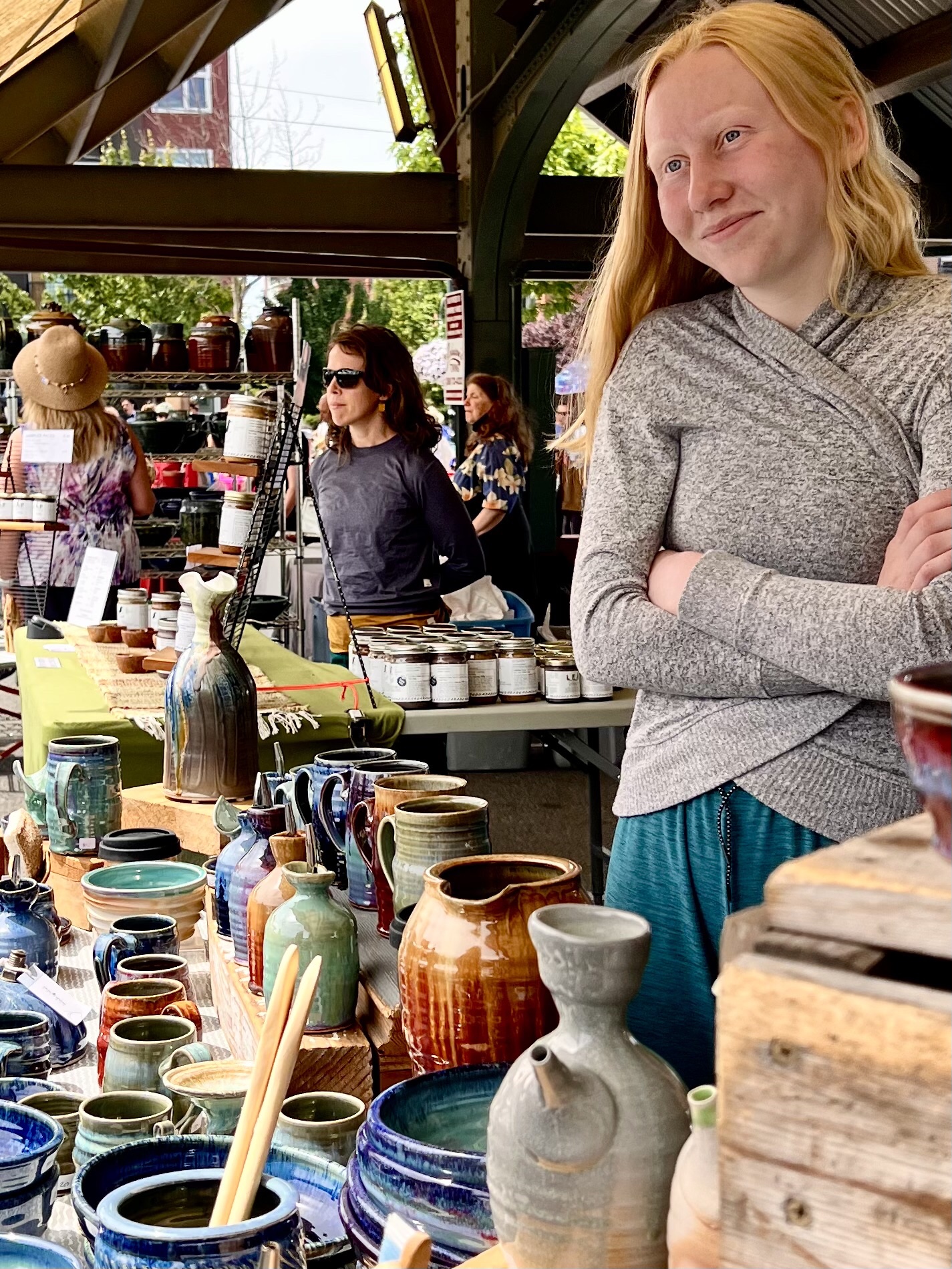 Yesterday we went to the Bellingham Farmer’s market and could have been at the Asheville Farmer’s Market or the Uncommon Market in the River Arts District. It was crowded and so much fun with such a variety of crafts and health products and food and even $8 rocks with Effing exhortations on every one being sold by a sweet looking hypnotherapist (the polite positive rocks she had tried hadn’t sold, these did). And then on a sunny afternoon we drank local beer at Goods, a brightly painted converted gas station with rows of picnic tables in front with A Que Tacos food truck on one side and Dumplings food truck on the other. I was home again.