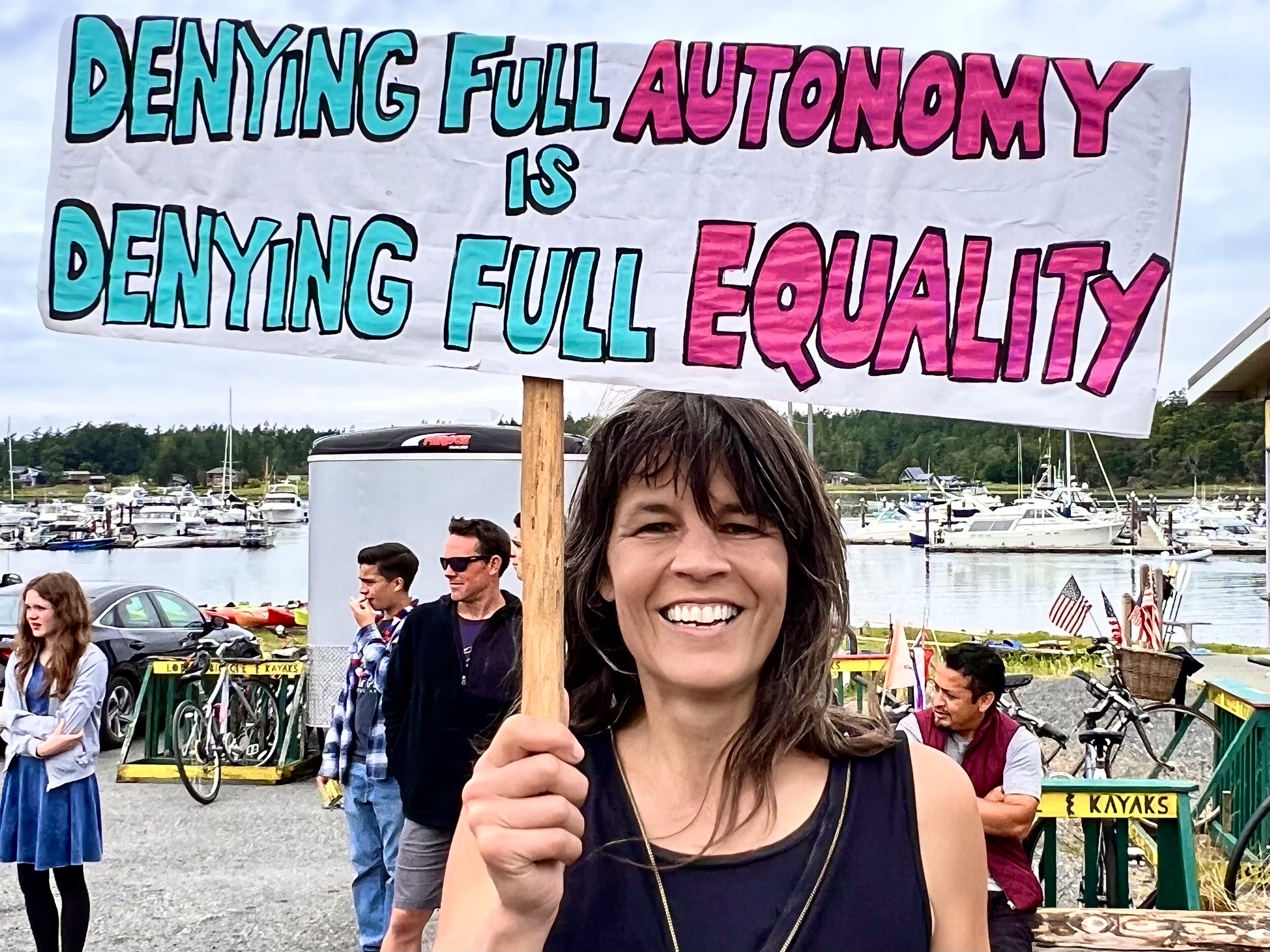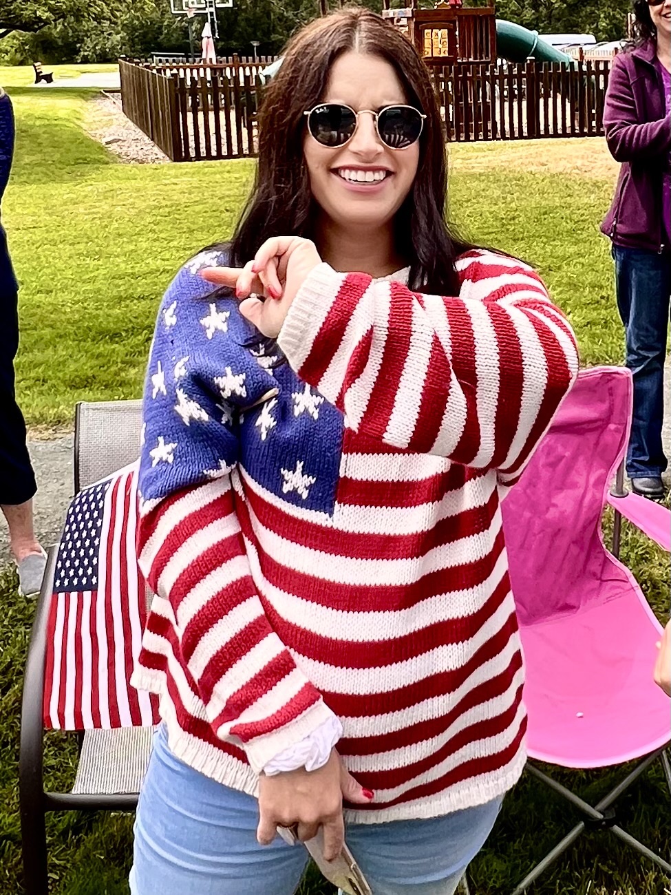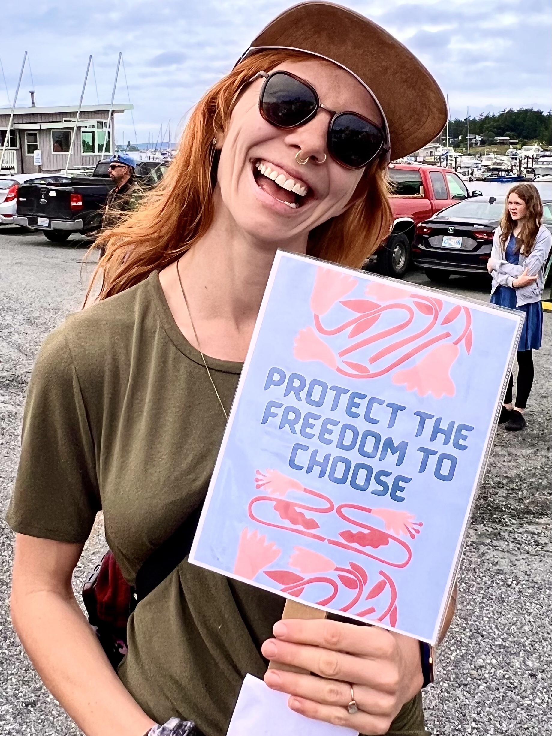 The parade started at 11 or so. We had a good breakfast and got in the car but were unable to get to Lopez village because the parade was blocking the road. So I and Lisa walked, passing the parade until we got to the middle or a little beyond. So we missed the tractors pulling floats, if there were any. But this year, unlike others, the main feature of the parade was about hundred or more people with home made signs who were demonstrating against the Supreme Court vote against Roe Vs Wade and women’s choice to have abortions. A few people along the route with sour faces gave the demonstrators thumbs down, but everyone else enthusiastically cheered them on. So the photographs that I took were one third of apolitical people riding horses or driving antique cars, one third are of enthusiastic demonstrators with smiles on their faces as they shouted “we won’t go back,” and one third are of spectators dressed in red, white and blue waving flags and cheering the parade on.