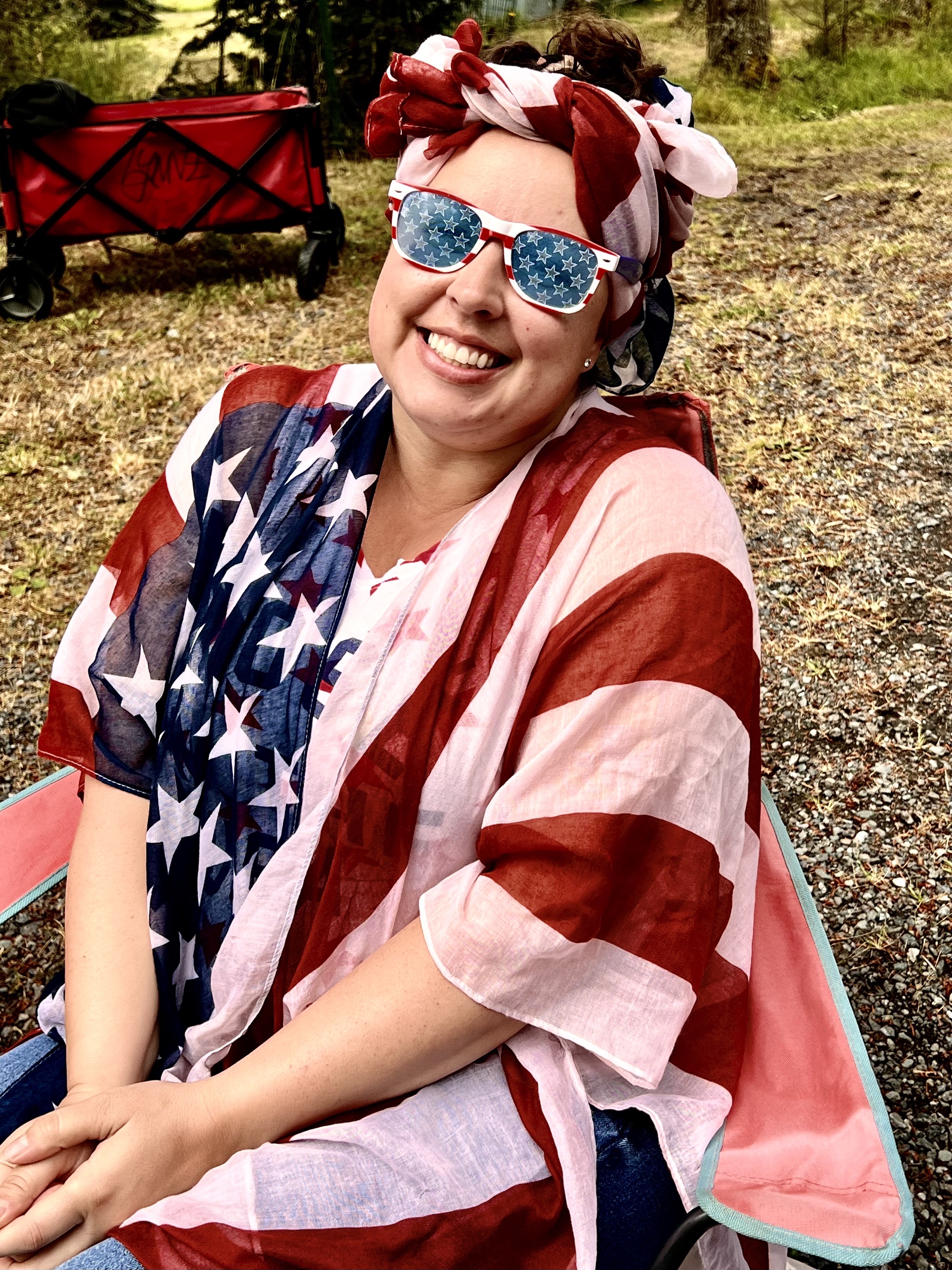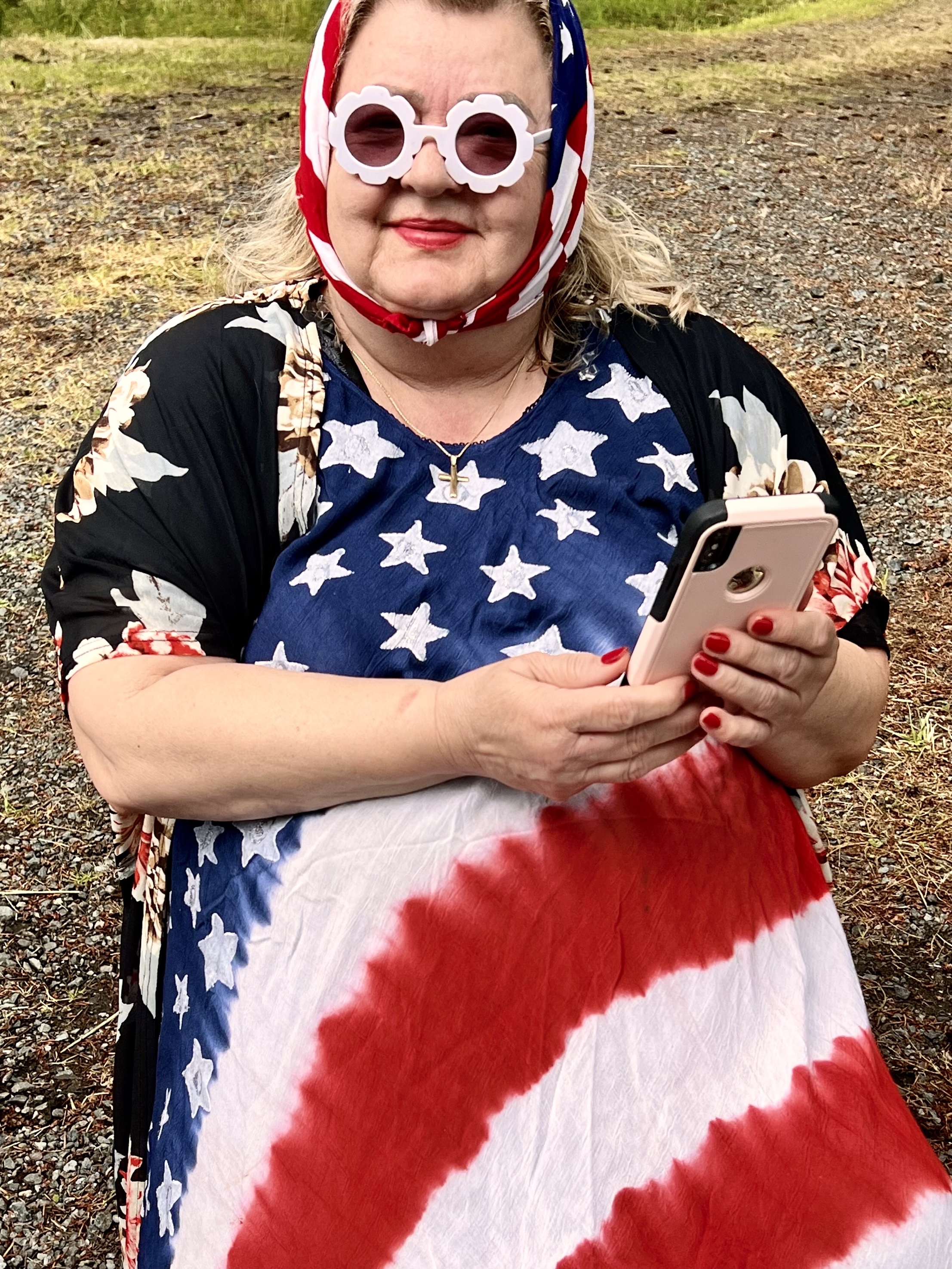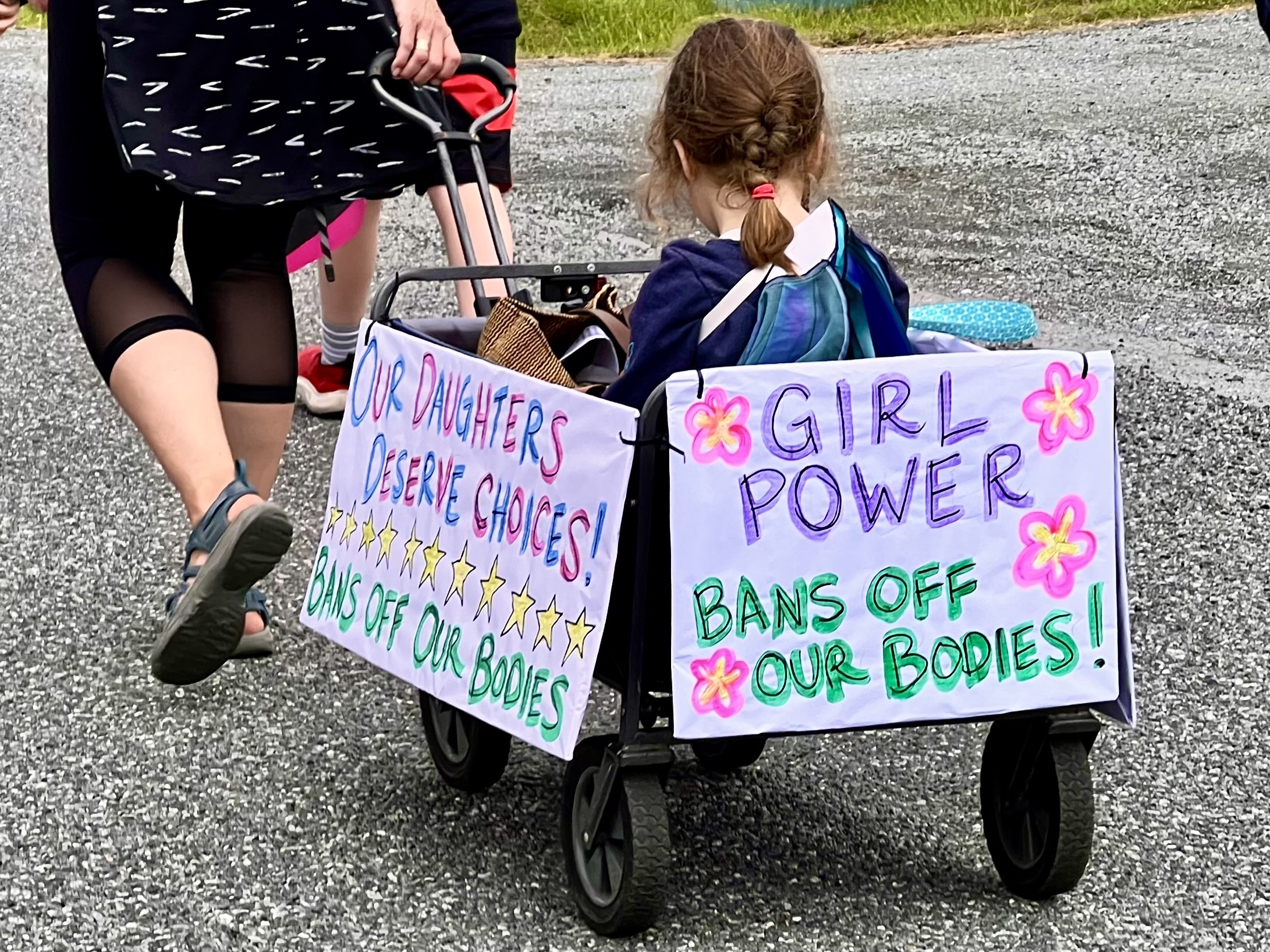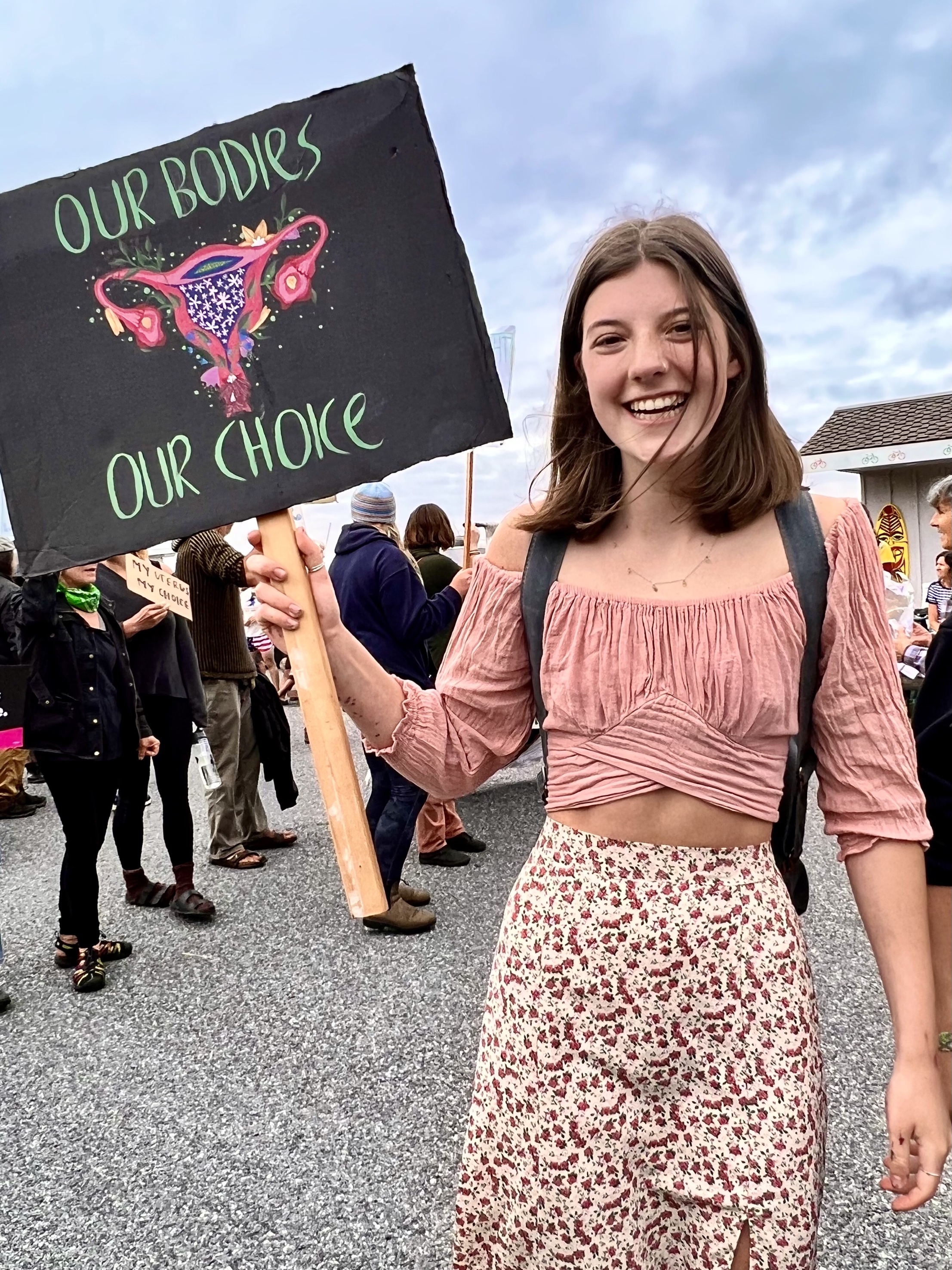 The parade started at 11 or so. We had a good breakfast and got in the car but were unable to get to Lopez village because the parade was blocking the road. So I and Lisa walked, passing the parade until we got to the middle or a little beyond. So we missed the tractors pulling floats, if there were any. But this year, unlike others, the main feature of the parade was about hundred or more people with home made signs who were demonstrating against the Supreme Court vote against Roe Vs Wade and women’s choice to have abortions. A few people along the route with sour faces gave the demonstrators thumbs down, but everyone else enthusiastically cheered them on. So the photographs that I took were one third of apolitical people riding horses or driving antique cars, one third are of enthusiastic demonstrators with smiles on their faces as they shouted “we won’t go back,” and one third are of spectators dressed in red, white and blue waving flags and cheering the parade on.