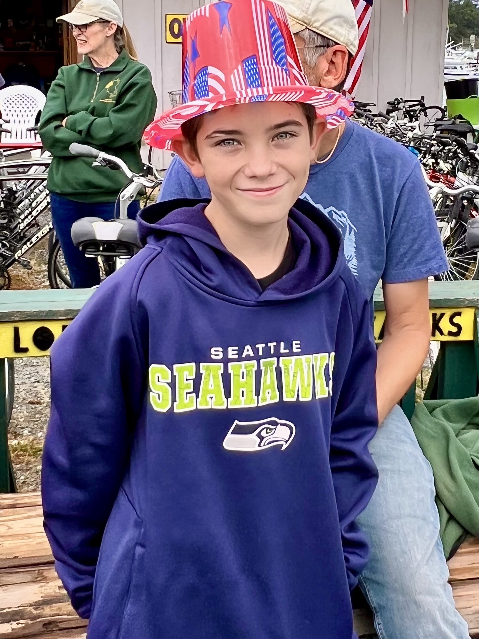 Following the three miles of trying to keep up with parade we visited the Lopez Farmer’s Market and then went back to the home of George and Mary Lou Hested and ate a good lunch and collapsed before riding through the red barn farms at the center of Lopez Island and taking the huge ferry that threaded the green islands back to the mainland and to Bellingham and the end of a marvelous visit.
