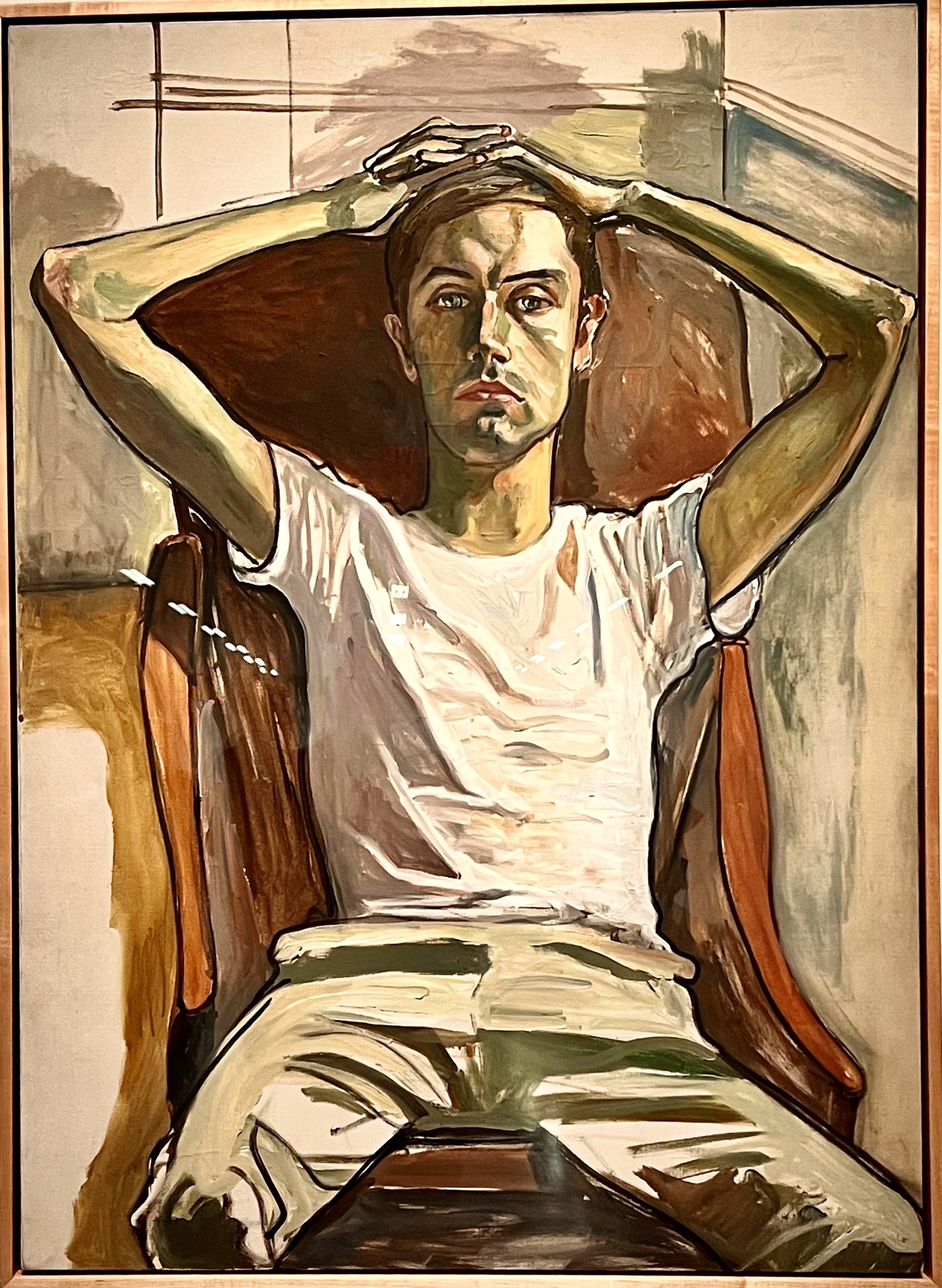 But I don‘t need to do those again if I come for a month. On my third trip on the Big Bus, once sitting on the left in front to take photographs, once on the right, the third time just to get there, I stopped at the De Young Art Museum. Here I got to see, and photograph, the Alice Neel painting exhibit of the ordinary people who lived in her neighborhood of Spanish Harlem. I will now play the paintings on my iPad at home in Swannanoa where I can drink coffee as I look at them and my back won‘t hurt from so much slow shuffling around. Then I whirled through the rest of the museum, which was interesting, and then had a tasty and expensive sandwich in the very nice outdoor cafe. This is a part of San Francisco that will draw me back, a city rich with culture and ethnic variety.