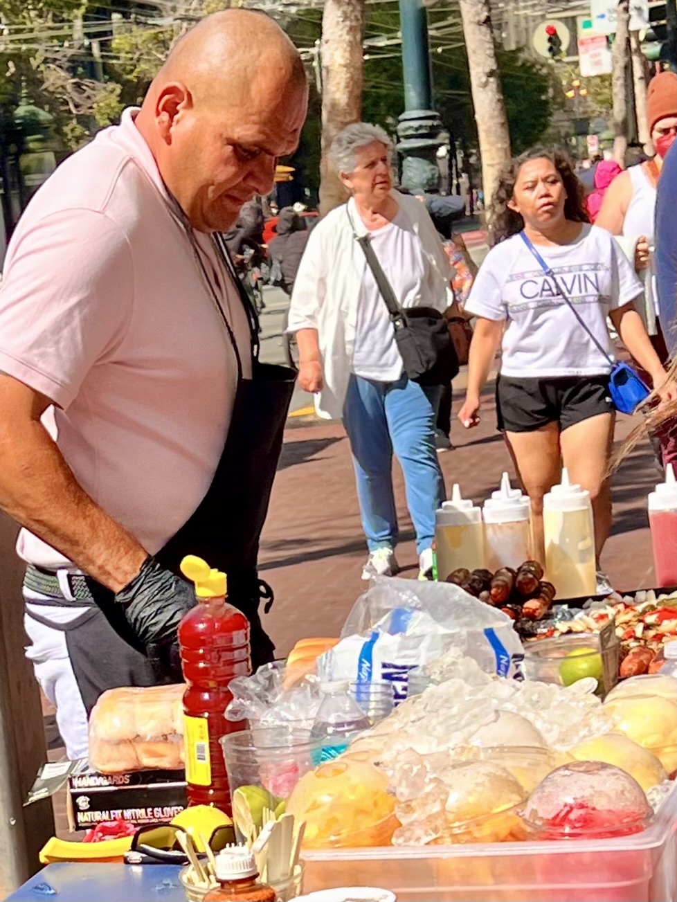 A city bus, 1/2 price for seniors, dropped me at Union Square where I had, for $6, the best Hot Dog I‘ve eaten in my life, wrapped in bacon and drizzled with fried onions and peppers and loaded with catsup, mustard and mayonnaise, a messy delight. Union Square was being prepared for an outdoor free movie later in the evening. The museum, the Hot Dog, the musicians and Union Square bustle is why I‘ll be back for a month if I can.