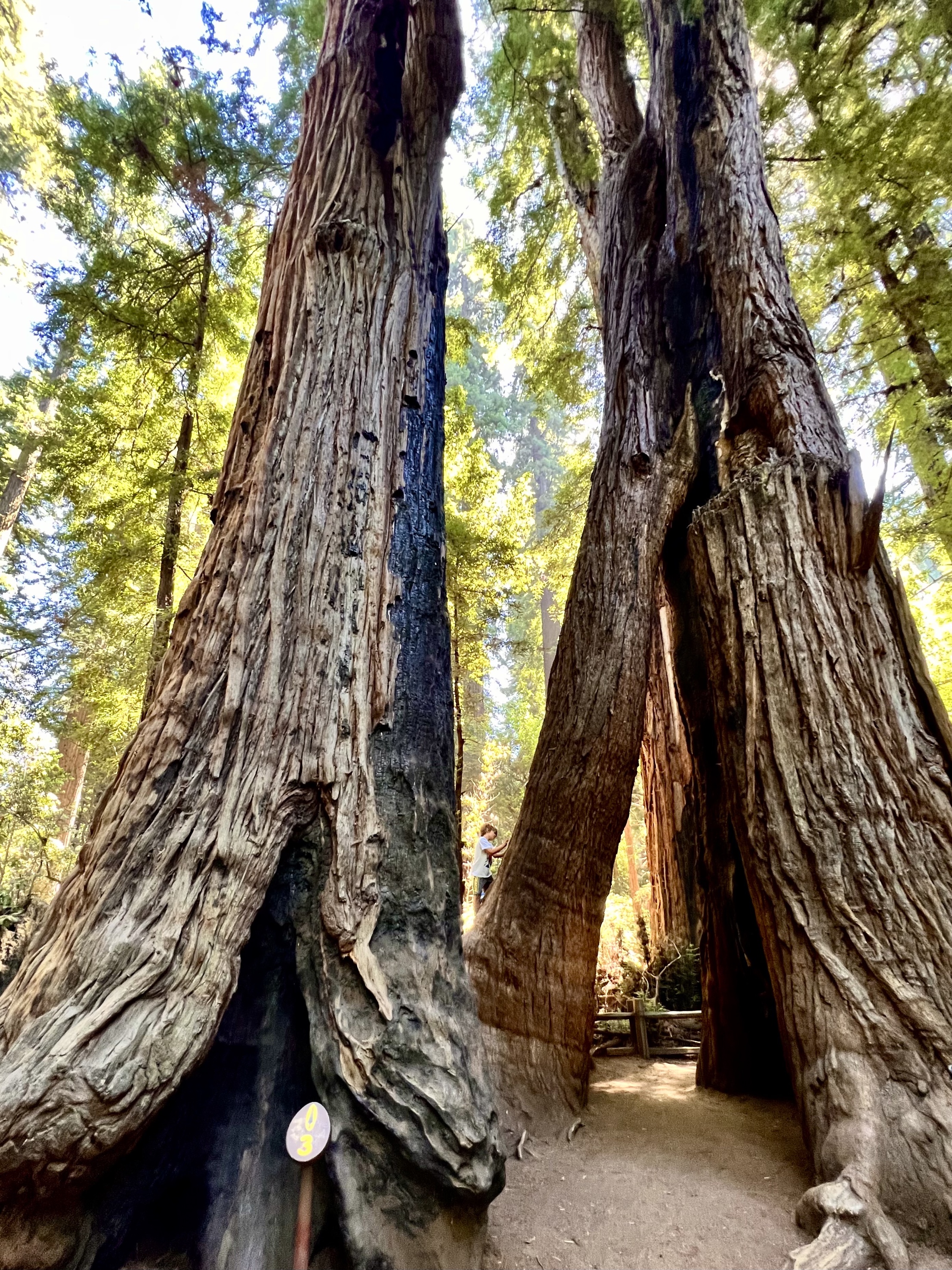 And here was a grove of protected ancient redwoods right outside of Santa Cruz in Henry Cowell Redwoods State Park. Ruth and Nick Royal, whom I am staying with in Santa Cruz (Ruth and I both attended Woodstock School in India at the same time), drove me the half hour to to the park and we walked a mile loop through the redwoods while learning about them.