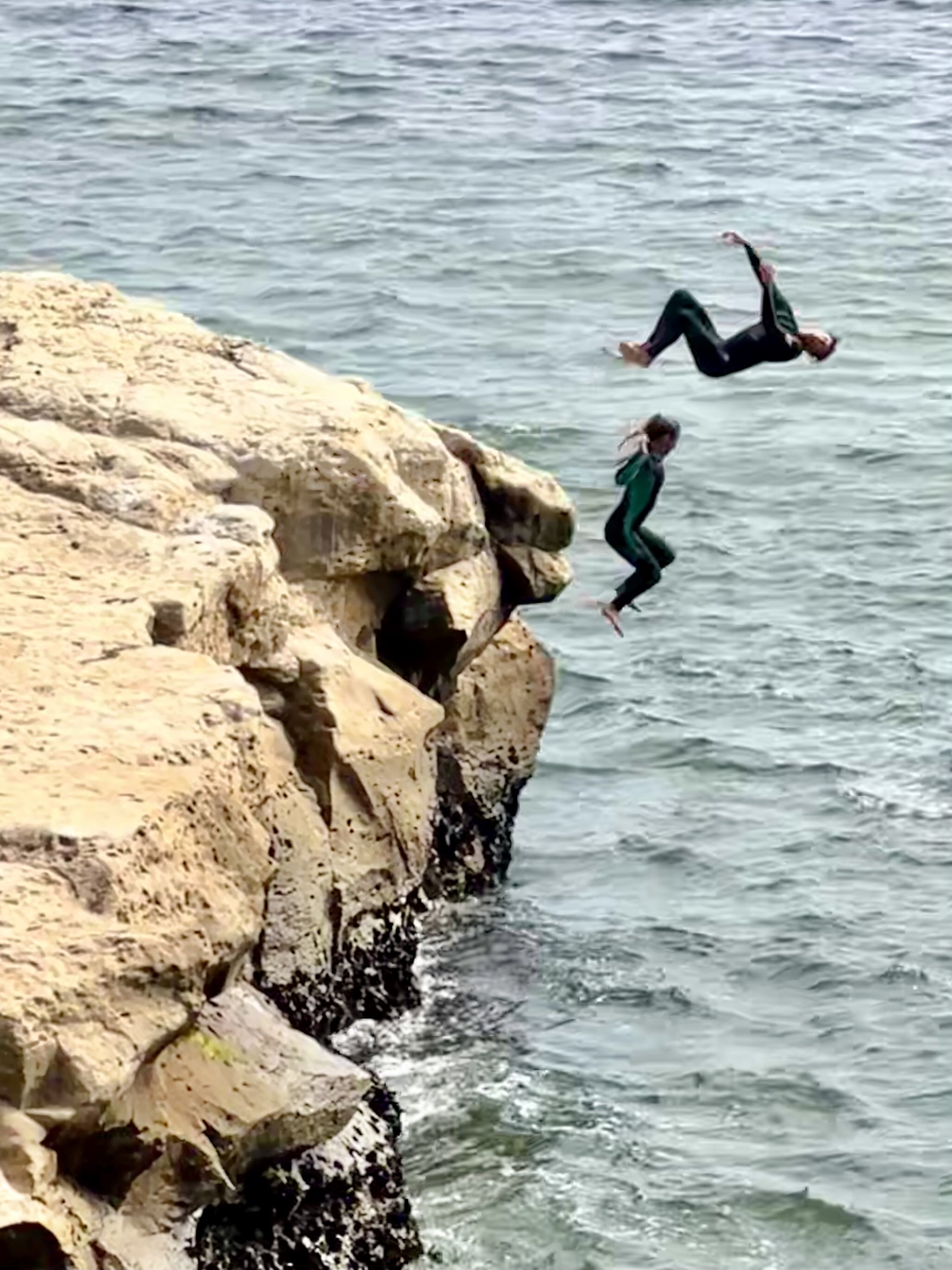 While here we visited the bluffs along the ocean to look down on the surfers three times. But only on the last day were the swells so high that men and women in wet suits were able to ride the waves in.