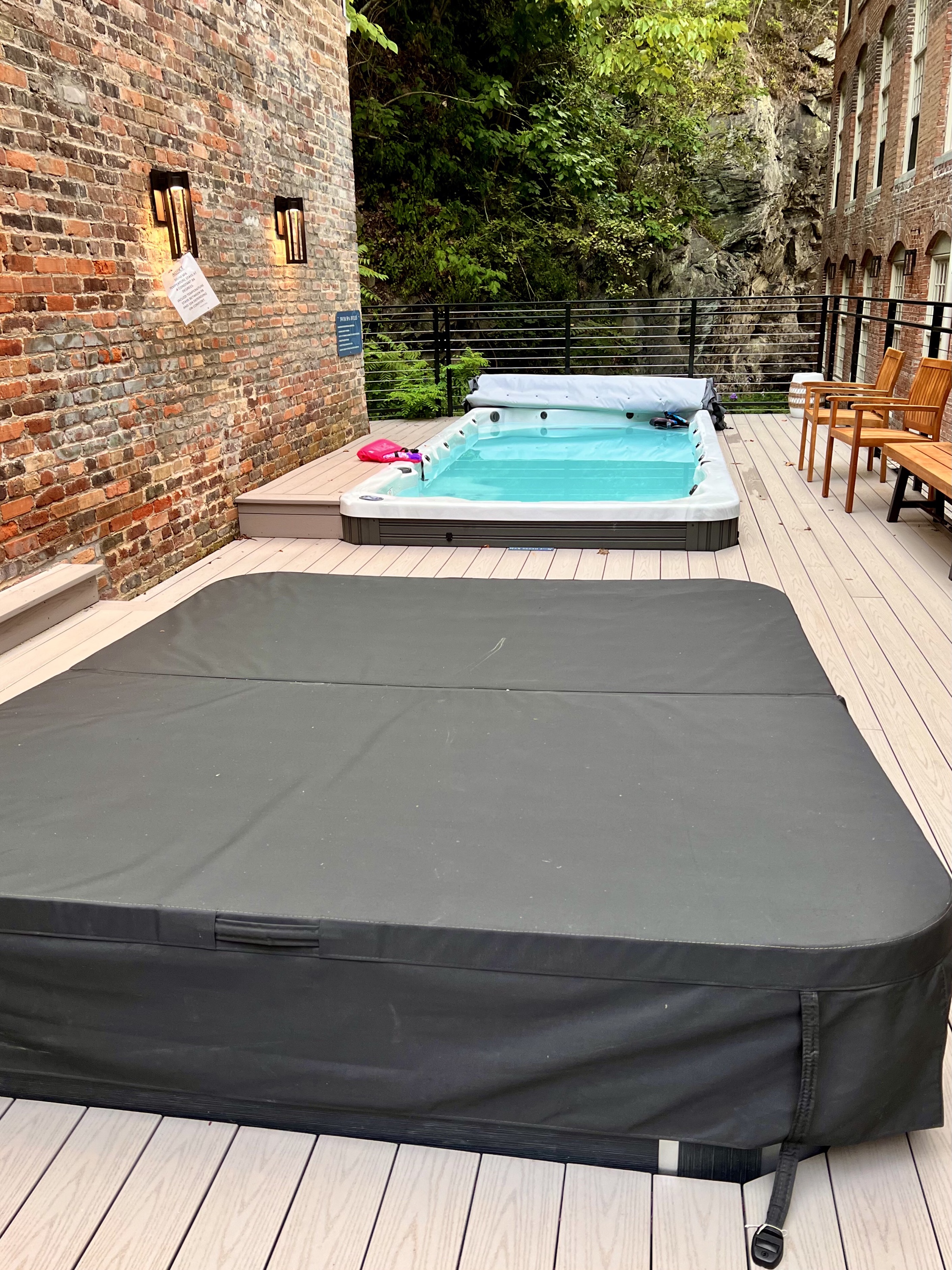 Now, just as the jail has become an upscale hotel and restaurant, the glove factory has become home to upscale condominiums with offices of business and artists studios on the first floor. There is also a small pool with a strong current where you can swim, a Swedish sauna, a fitness room and a lounge with a large tv and a kitchen where the residents can host parties. It is beautifully landscaped and even the bathrooms sparkle with black and white tiles and sinks that look like works of art and not like sinks at all. In both the jail and the glove factory there are photographs by well know photographer Rob Amberg taken in the old glove factory and the old jail when in use.