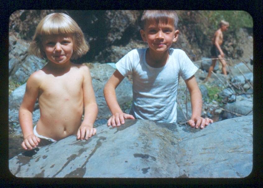 Redwood Cottage year around, except when the school would move to the warmer plains of India during the cold Mussoorie winter when it often snowed. But the fathers of the other mission families would work year around on the plains of India, even in the oppressive heat of the summer, and would come up to Mussoorie for the ten day summer vacation. The mothers would come up for the hottest four months bringing their children out of boarding to be day students. It was during these four months that I would stop by Ray’s house or we would play basketball at the outdoor Woodstock School court just below his house. But it was during these ten days when we could be with my father whom we only saw otherwise during the three month winter vacation that we would go to the Smith‘s swimming hole. The Smith swimming hole which was out the Tehri road and then down a steep path to a stream, maybe a five mile hike, where we would camp out with servants bringing the food in a huge basket, all fresh food, potatoes and onions and tomatoes, and enormous load, that a cook would cook up. Camping was a complicated process. We dammed the stream with large rocks and made a shallow pool maybe three feet deep and six feet wide and ten feel long that we children could swim in. It seems to me that we stayed there, sitting around a campfire at night, swimming during the day, for five days at a time, but maybe it was only two or three days. However long it was it is one of my fondest memories of my growing up in India.