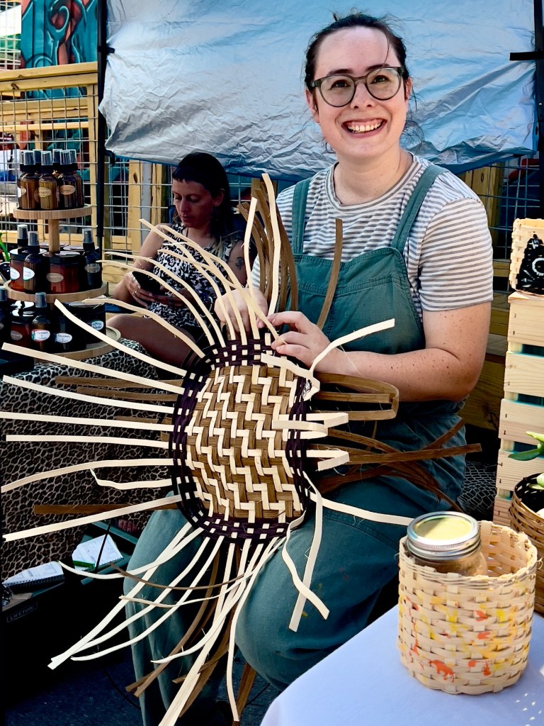 Once a month the Uncommon Market is held at the River Arts District near 12 Bones and other Asheville eateries. Sunday was a warm sunny day and the walkways and bicycle paths along the French Broad River were filled with people jogging and strolling. The paths along the river are a wonderful place to jog or walk a dog or get away from downtown and relax.