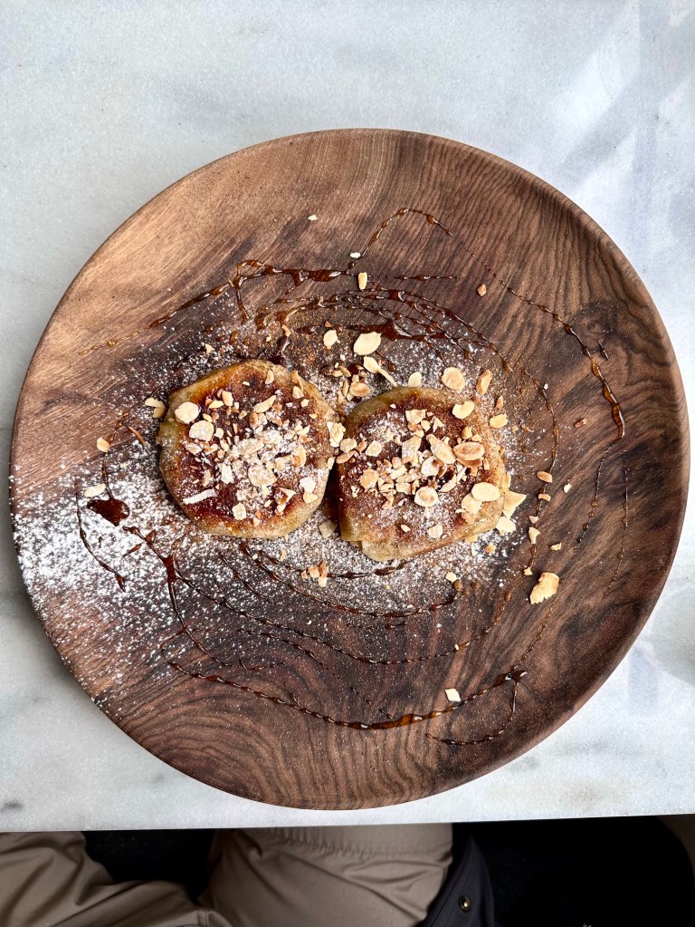 Two rabbit pastillas, each a third of the size of the $4.00 pigeon pastilla at Superbe Pastilla cost $9.00 at the very beautiful Nomade Restaurant, served on a wooden plate splashed with artful designs, still not exorbitant, but half as filling and twice the cost. Naoussa had marvelous outdoor restaurants by the harbor that also didn‘t seem exorbitant to an American.