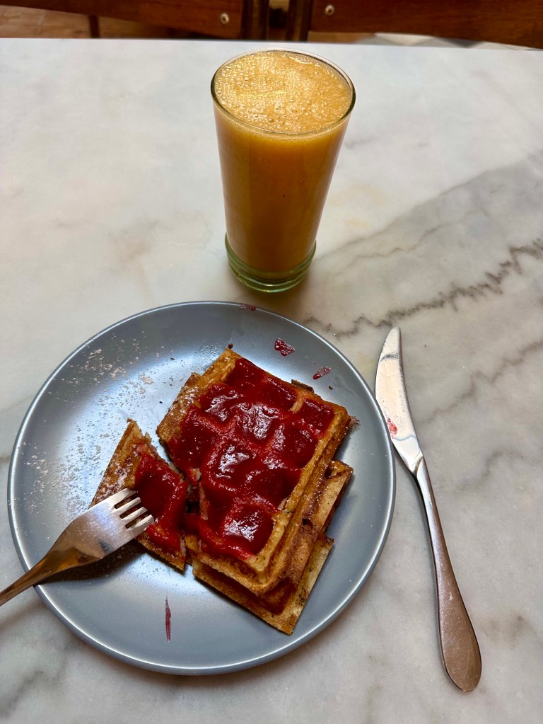 L’Atelier restaurant where I am now has a cooking school, a boutique shop and this cafe where they serve waffles with fruit on top ($1) and mixed fresh fruit drinks ($2). It is also has fast wifi, which my Airbnb doesn’t have and is a wonderful place to sit and type.