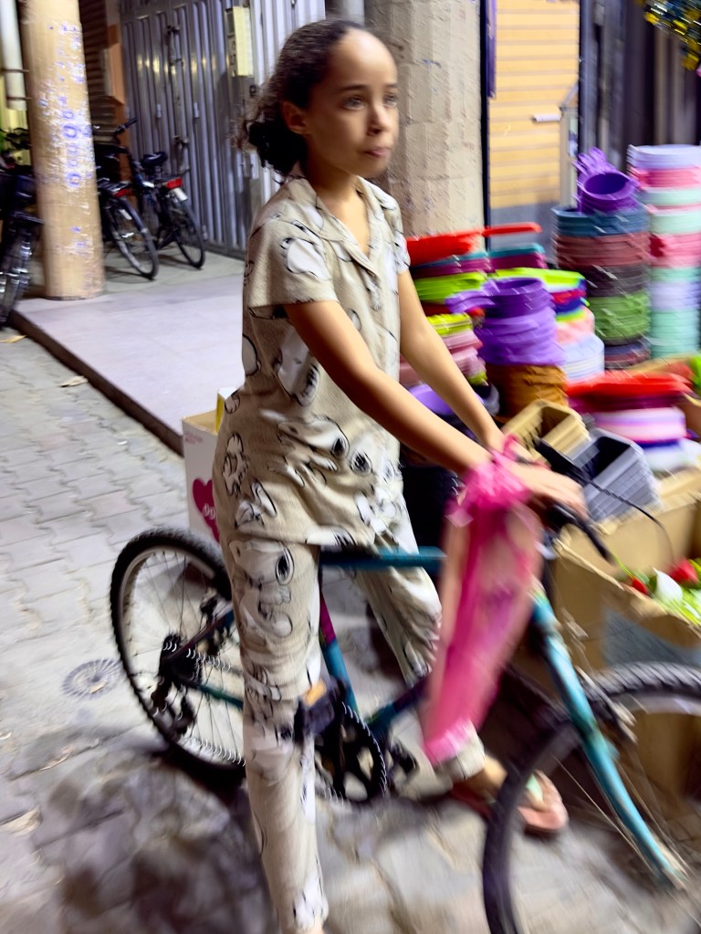 Not long after the husband led us out to the main square with the same kids wheeling around on bicycles and scooters and people out walking in tghe evening,where we ate supper and watched people walking until about 8:30, when with the call to prayer most of the people vanished, maybe going home for dinner.