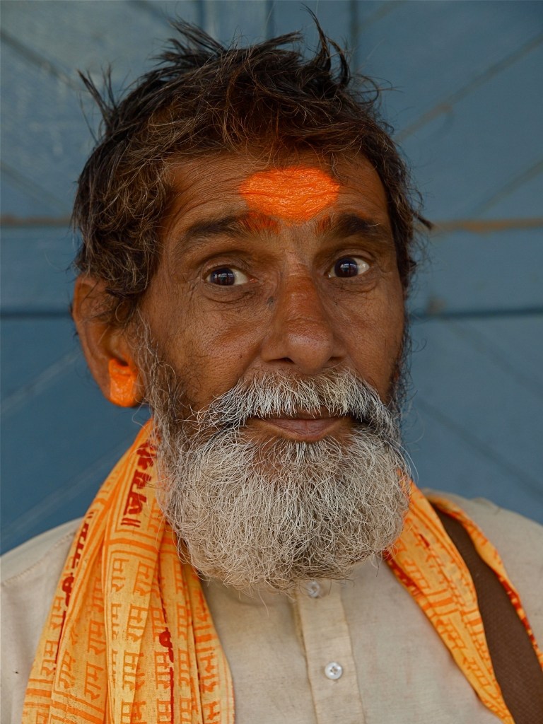 A number of years ago I collected a number of photographs I had taken of people in India into a book called Eye to Eye. You are looking at an Indian person and he or she is looking at you. You are two people looking at each other. I generally followed the six suggestions for enhancing a portrait mentioned yesterday. In almost all these photographs the person is wearing colorful clothing and often has beauty makes on their face which enhances their presence. I am up close to them and they are responding to my presence, usually with a smile as most people do with people they don’t know. The background is generally plain or out of focus. The light is generally good and I probably took several photographs of that person and chose one and on that day I took photographs of several hundred people and chose this one.